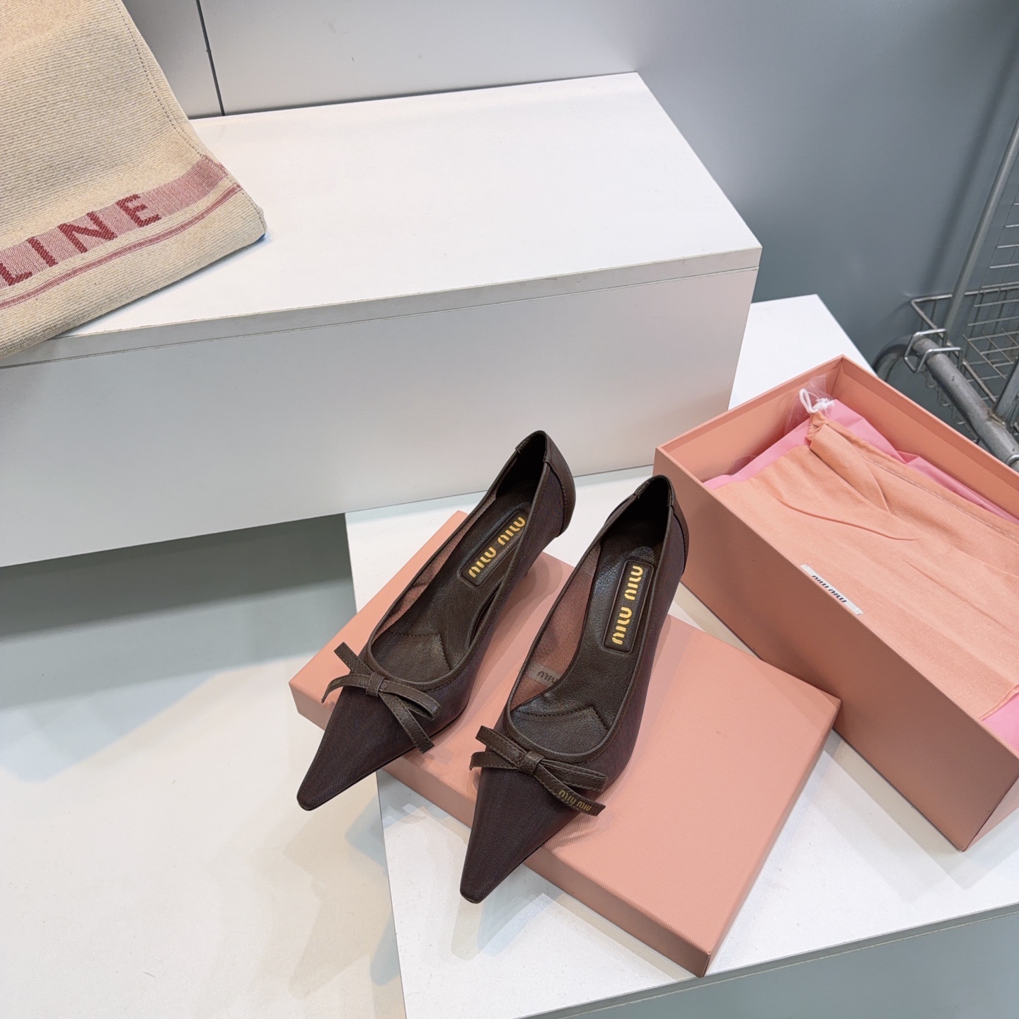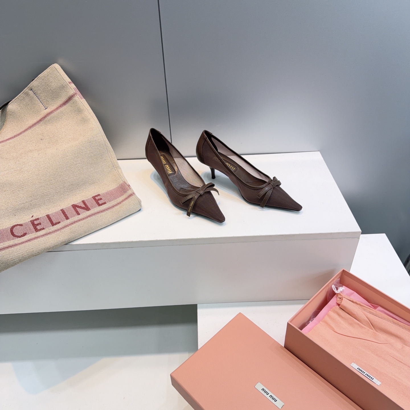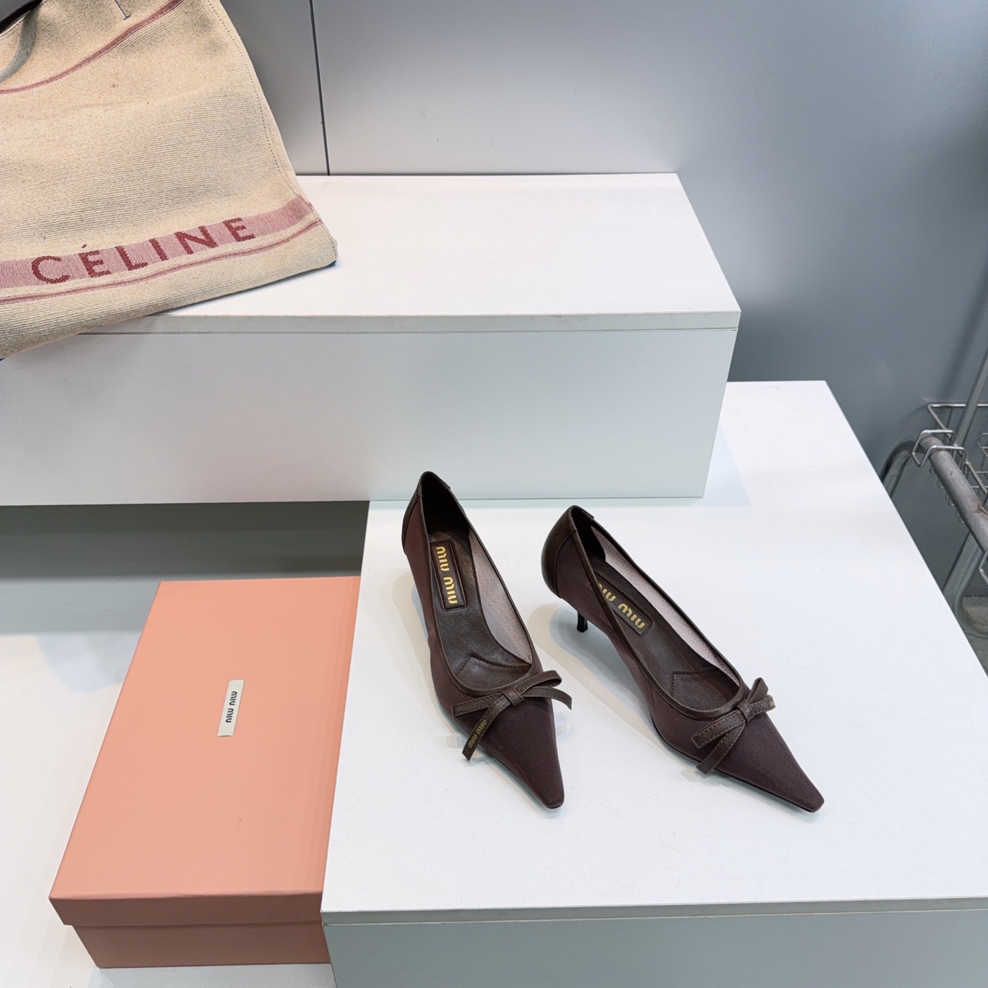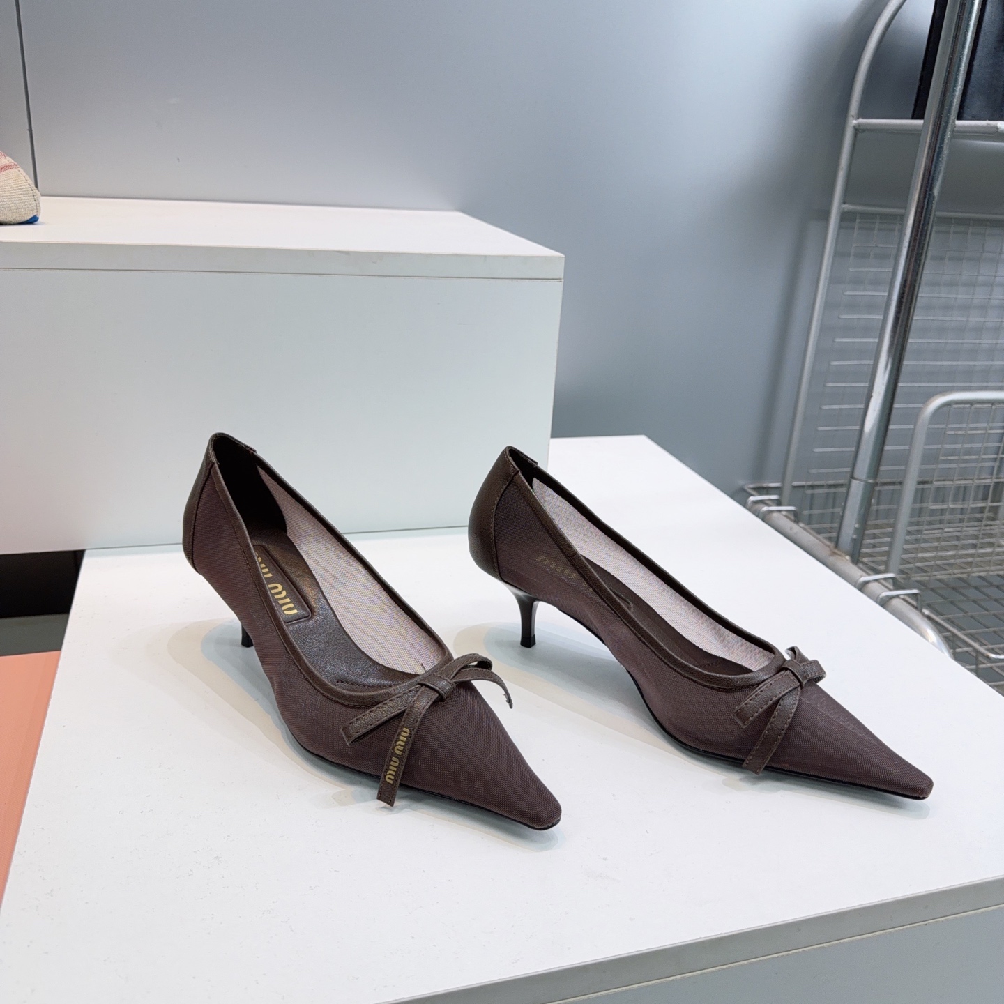這款鞋子是AAAAA 1:1 質量(非常棒). 使用了和原版一模一樣的材料. 商標部分也保持了和繆繆/Miu Miu一樣. 圖片拍攝是實物鞋子拍攝, 您所收到的實物保證和我們圖片一模一樣.