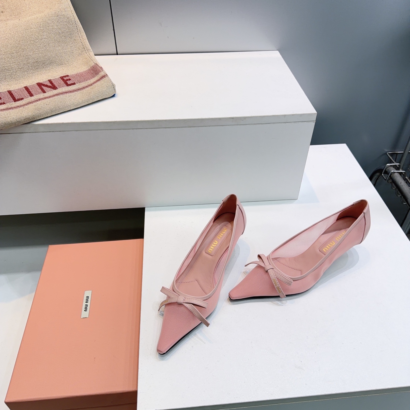 這款鞋子是AAAAA 1:1 質量(非常棒). 使用了和原版一模一樣的材料. 商標部分也保持了和繆繆/Miu Miu一樣. 圖片拍攝是實物鞋子拍攝, 您所收到的實物保證和我們圖片一模一樣.