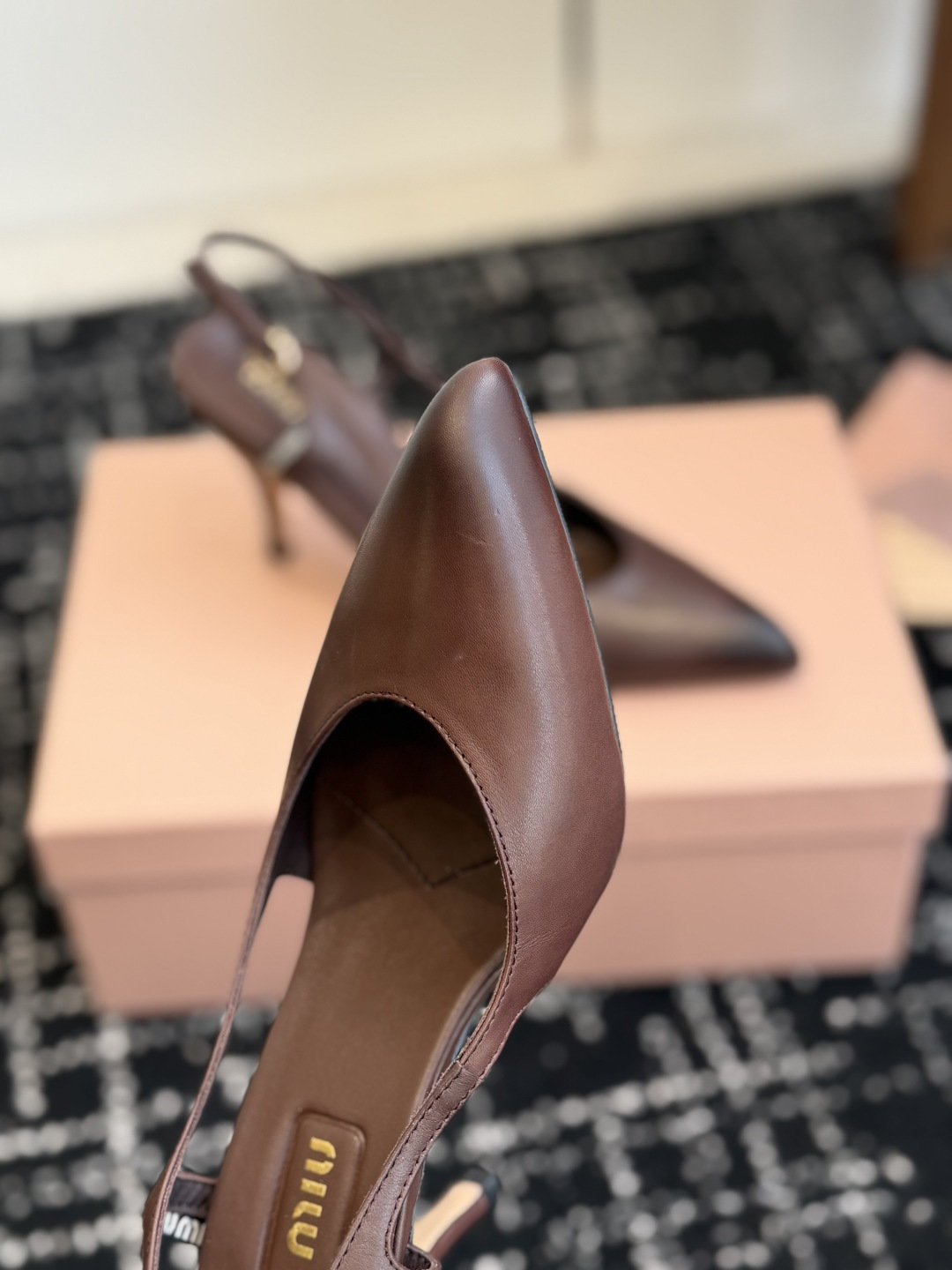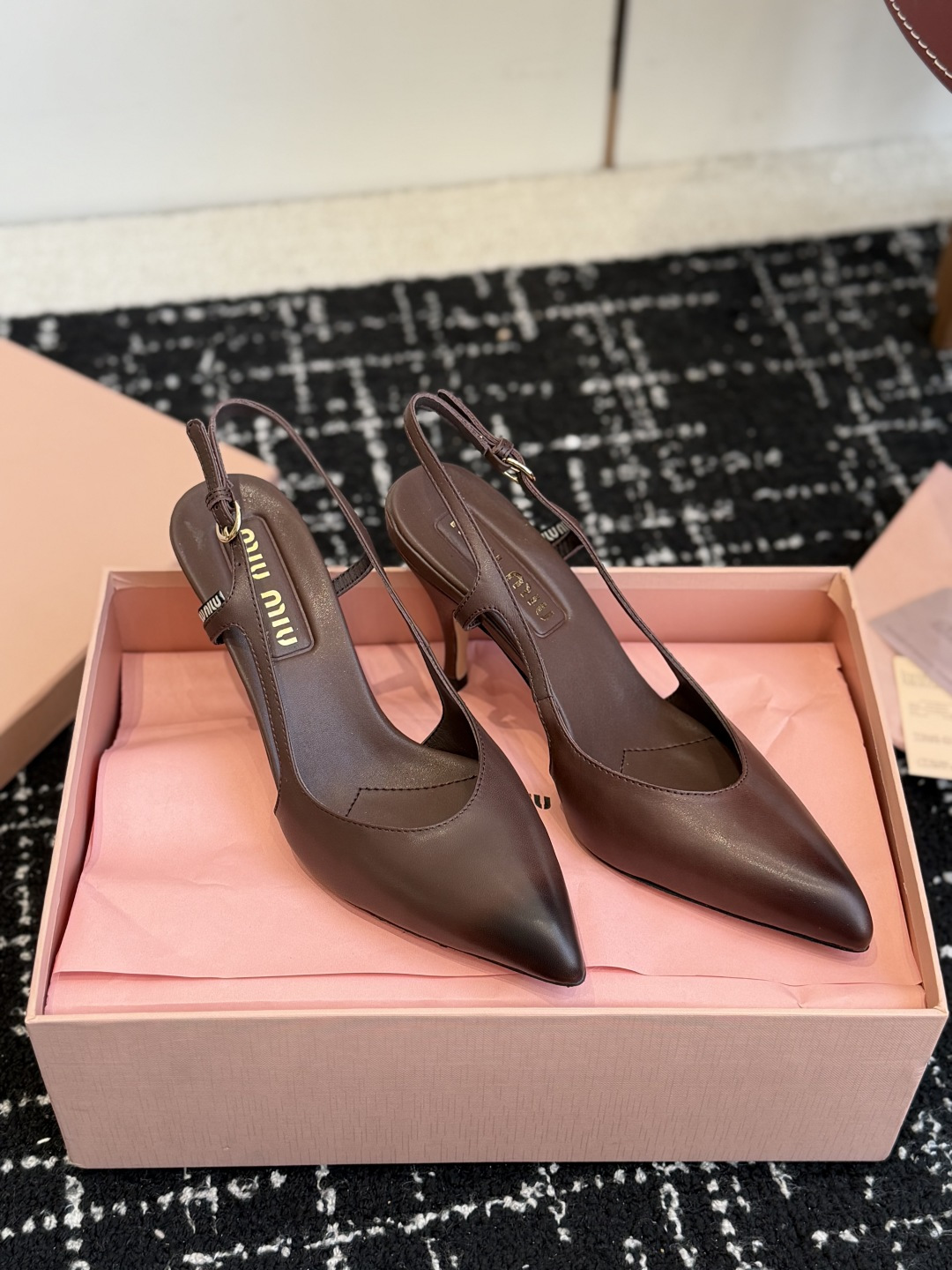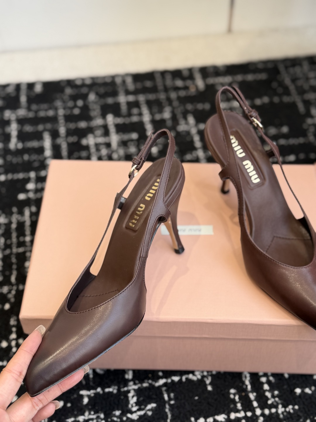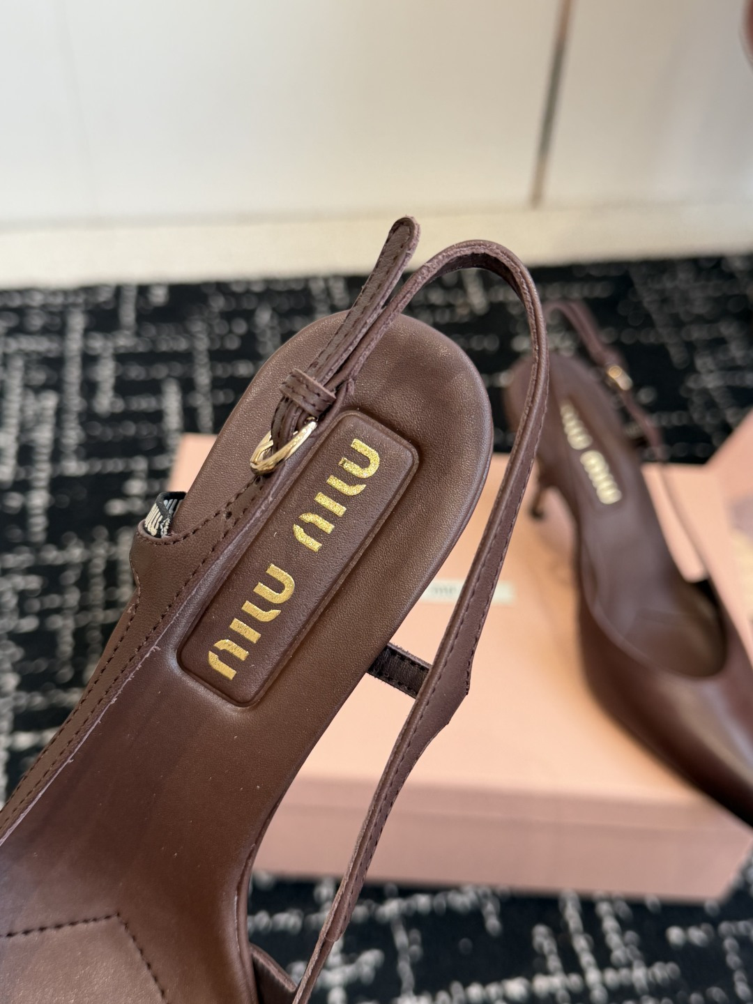 這款鞋子是AAAAA 1:1 質量(非常棒). 使用了和原版一模一樣的材料. 商標部分也保持了和繆繆/Miu Miu一樣. 圖片拍攝是實物鞋子拍攝, 您所收到的實物保證和我們圖片一模一樣.