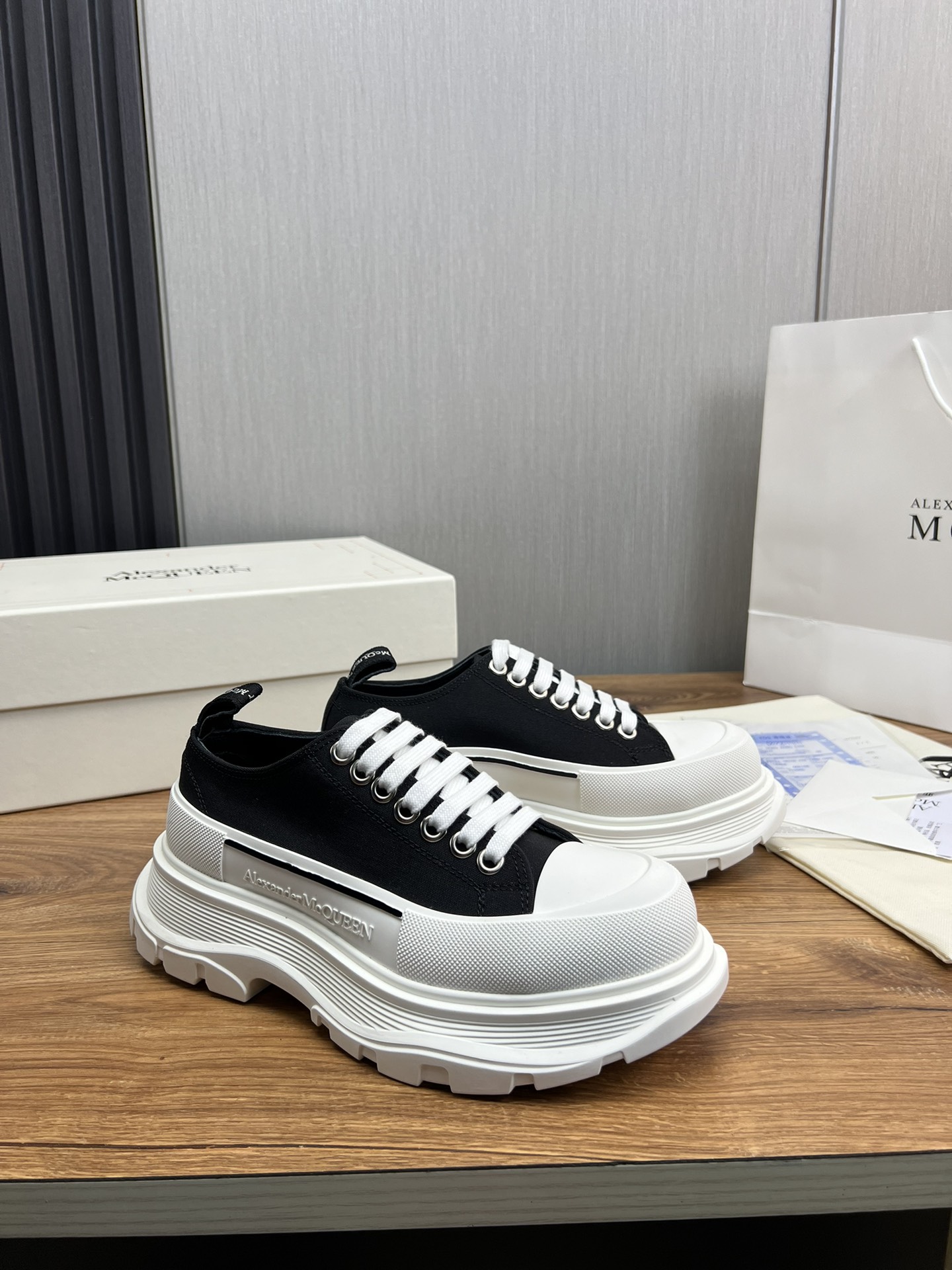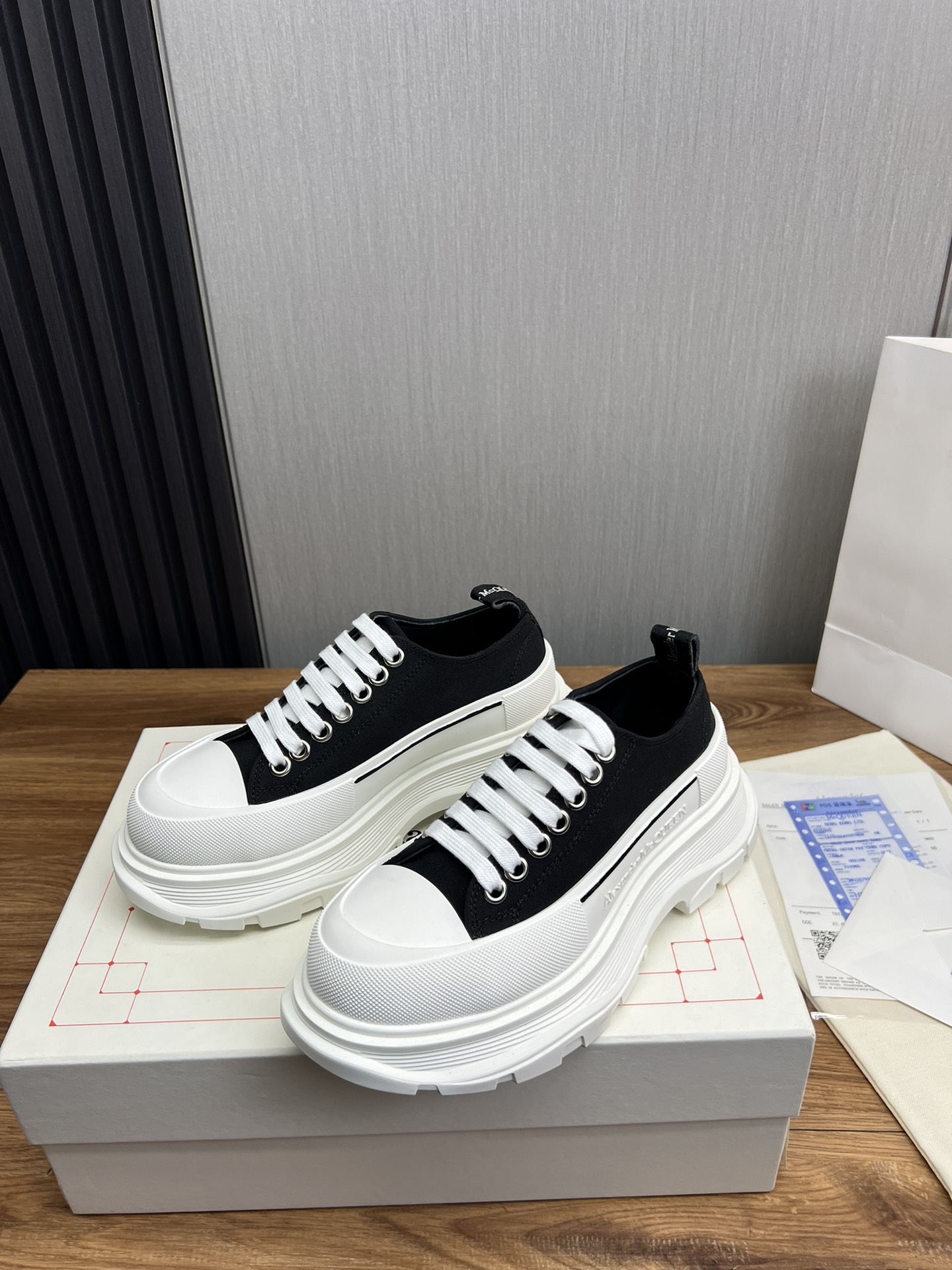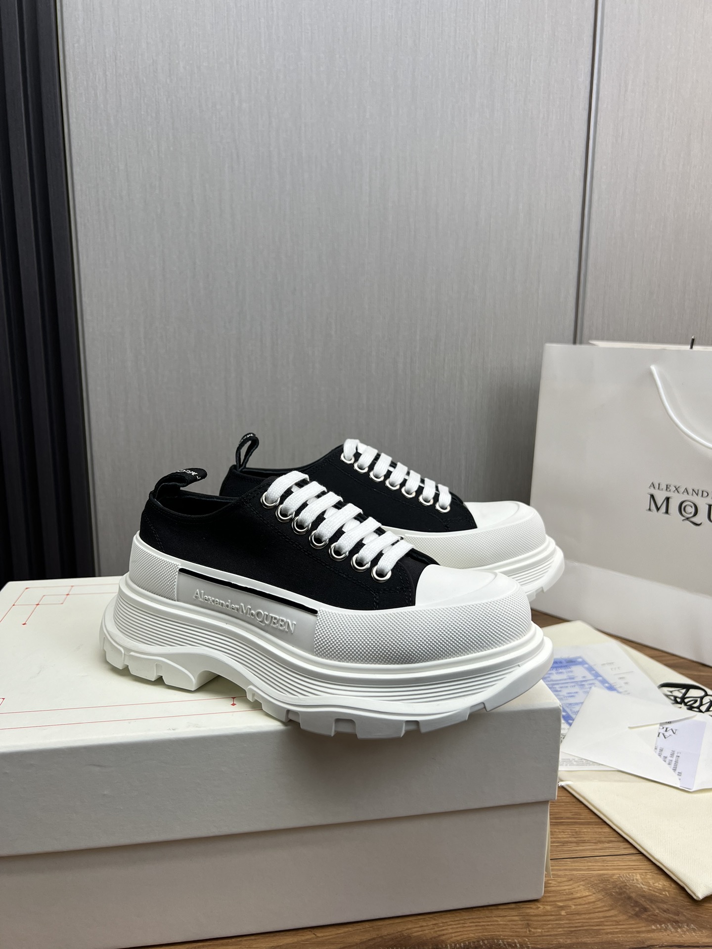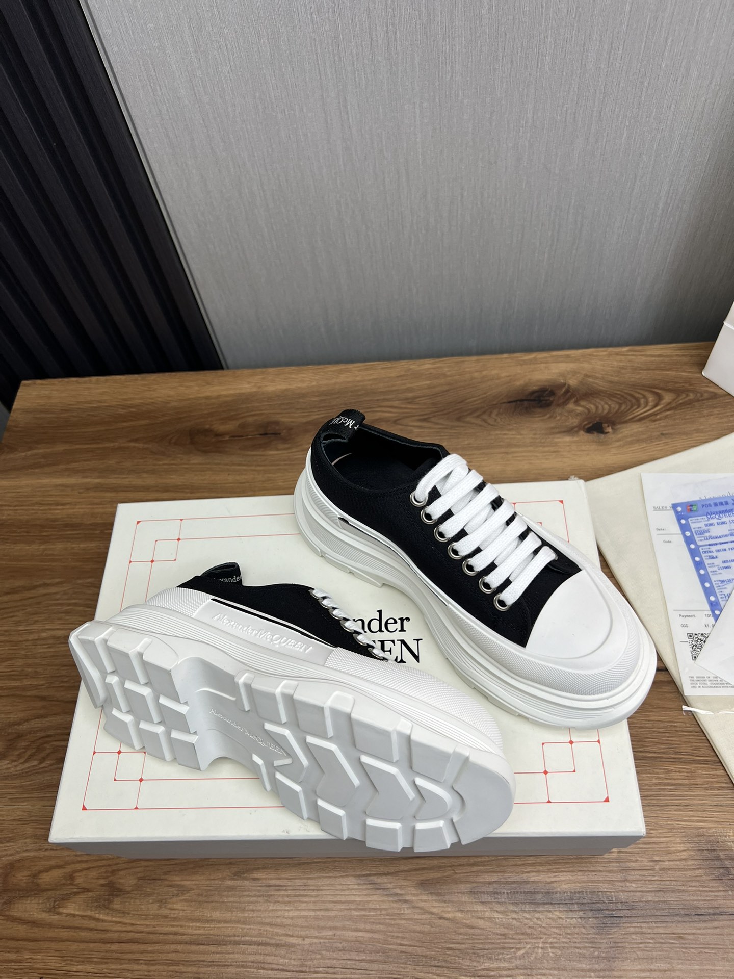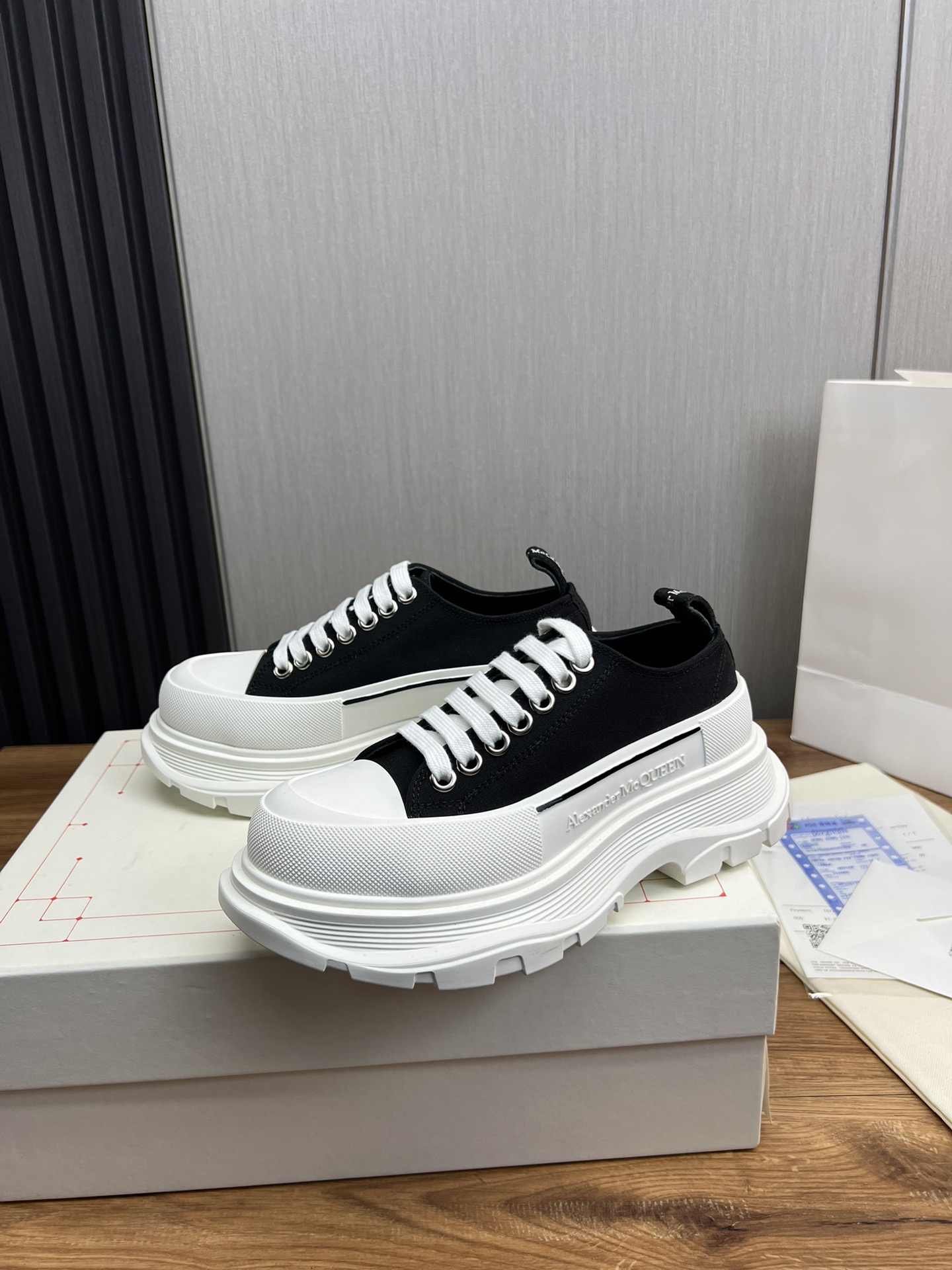 這款鞋子是AAAAA 1:1 質量(非常棒). 使用了和原版一模一樣的材料. 商標部分也保持了和麥奎恩/McQueen一樣. 圖片拍攝是實物鞋子拍攝, 您所收到的實物保證和我們圖片一模一樣.