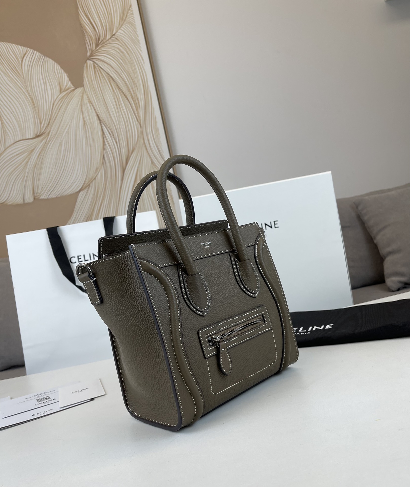這款包包是AAAAA 1:1 質量(非常棒). 使用了和原版一模一樣的材料. 商標部分也保持了和思琳/赛琳/Celine一樣. 圖片拍攝是實物包包拍攝, 您所收到的實物保證和我們圖片一模一樣.