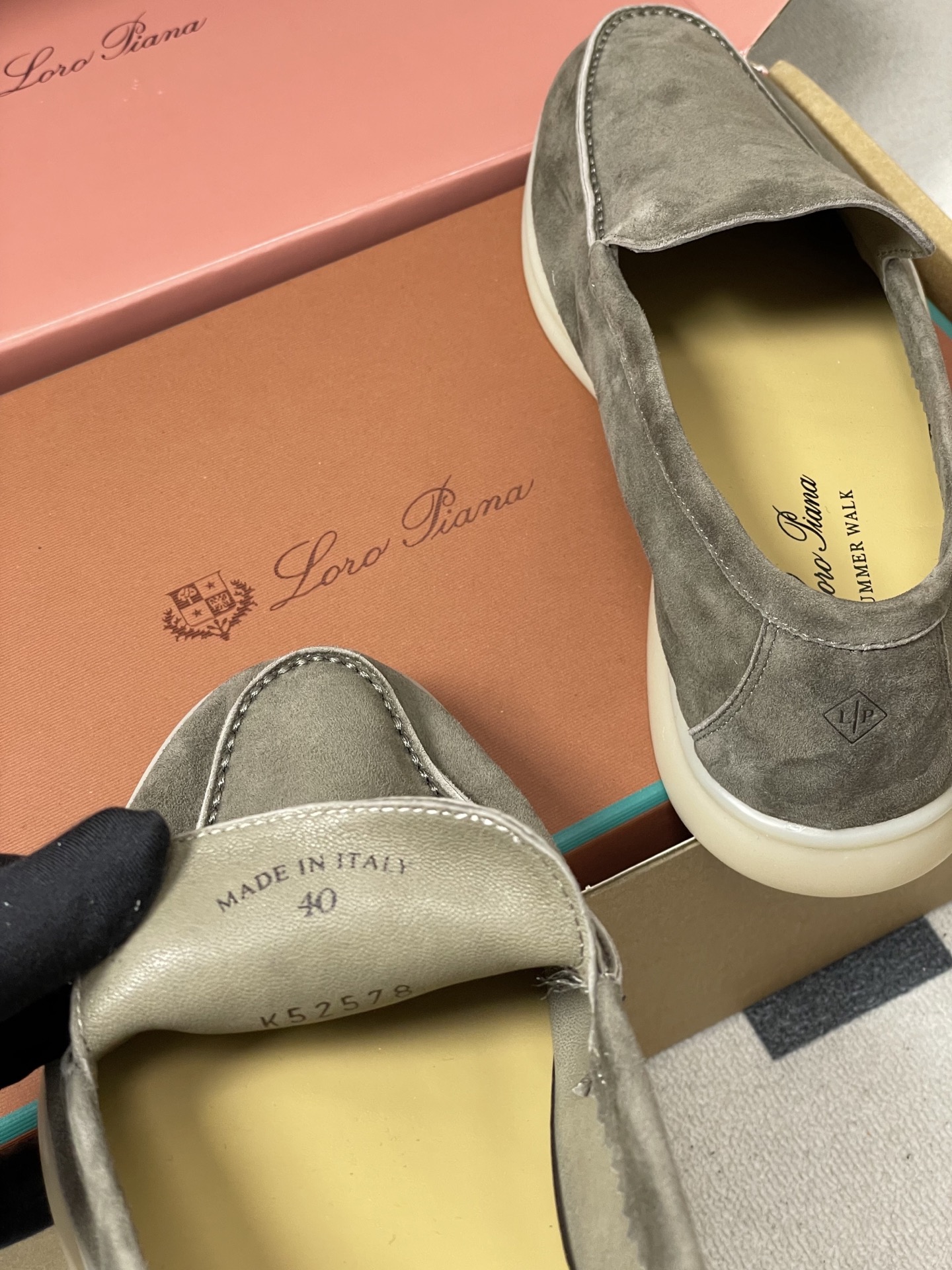 這款鞋子是AAAAA 1:1 質量(非常棒). 使用了和原版一模一樣的材料. 商標部分也保持了和Loro Piana一樣. 圖片拍攝是實物鞋子拍攝, 您所收到的實物保證和我們圖片一模一樣.