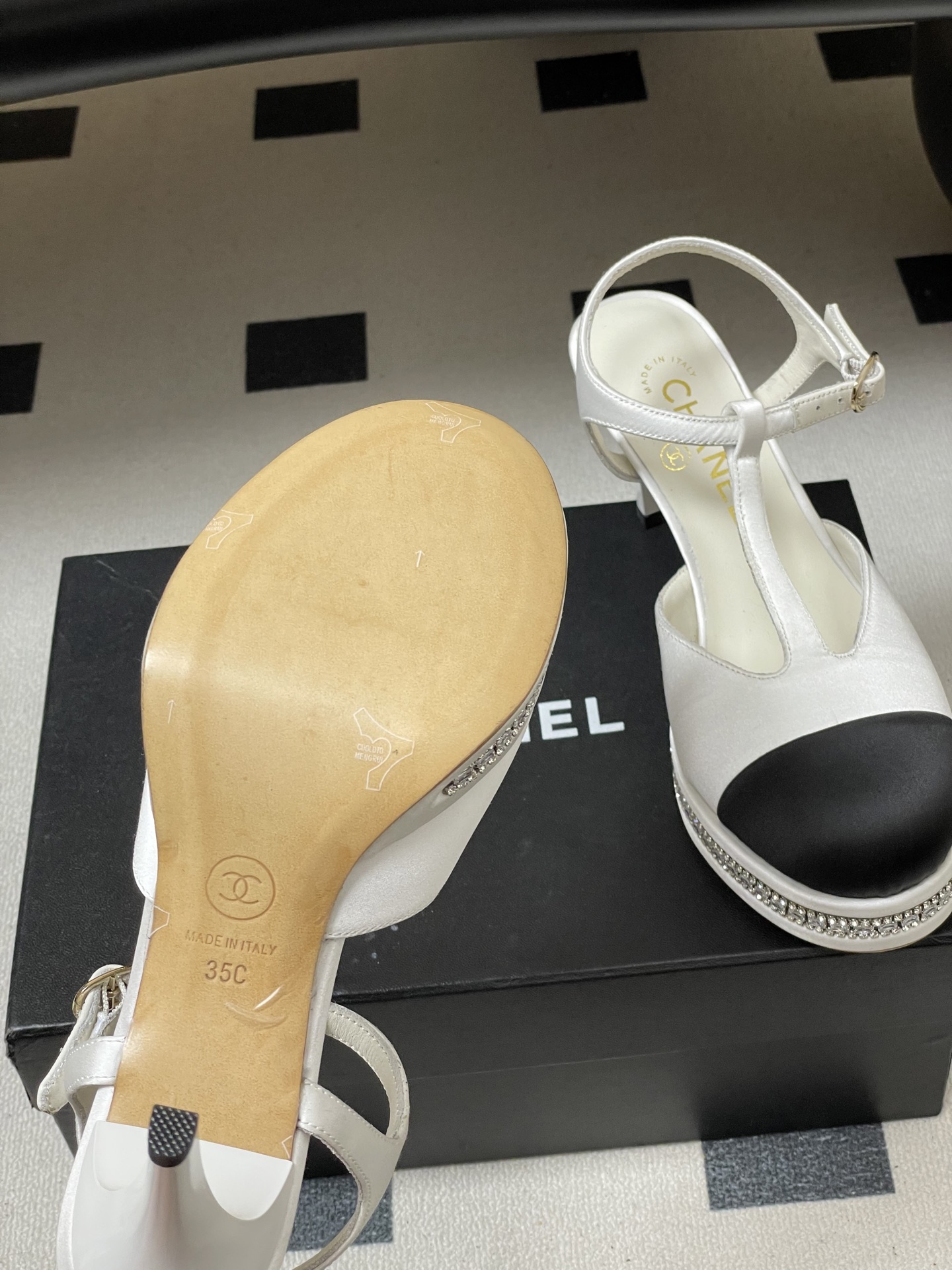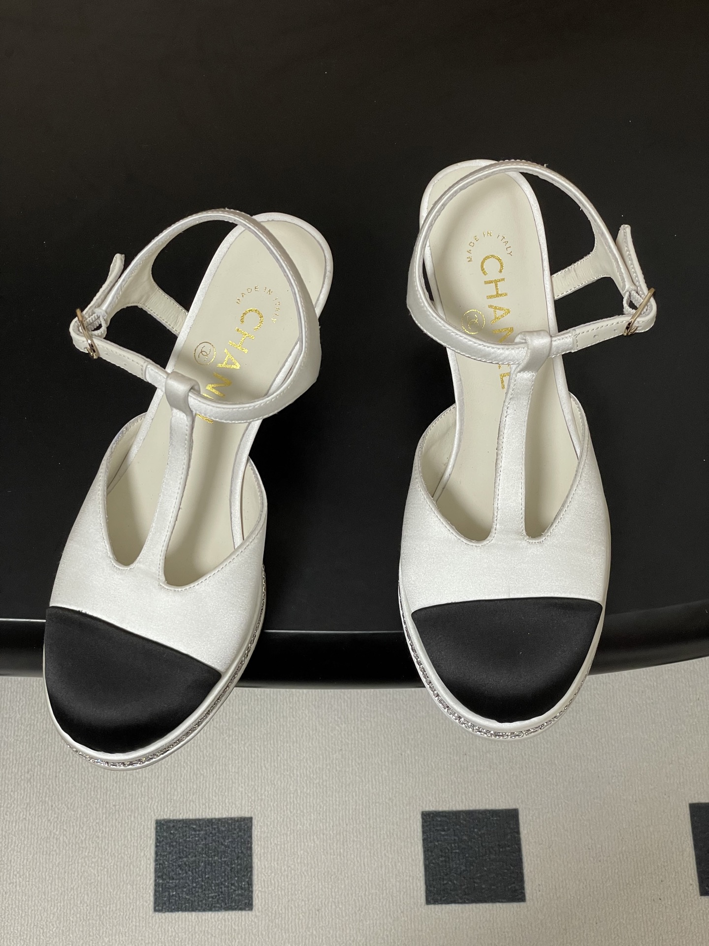 這款鞋子是AAAAA 1:1 質量(非常棒). 使用了和原版一模一樣的材料. 商標部分也保持了和香奈兒/Chanel一樣. 圖片拍攝是實物鞋子拍攝, 您所收到的實物保證和我們圖片一模一樣.