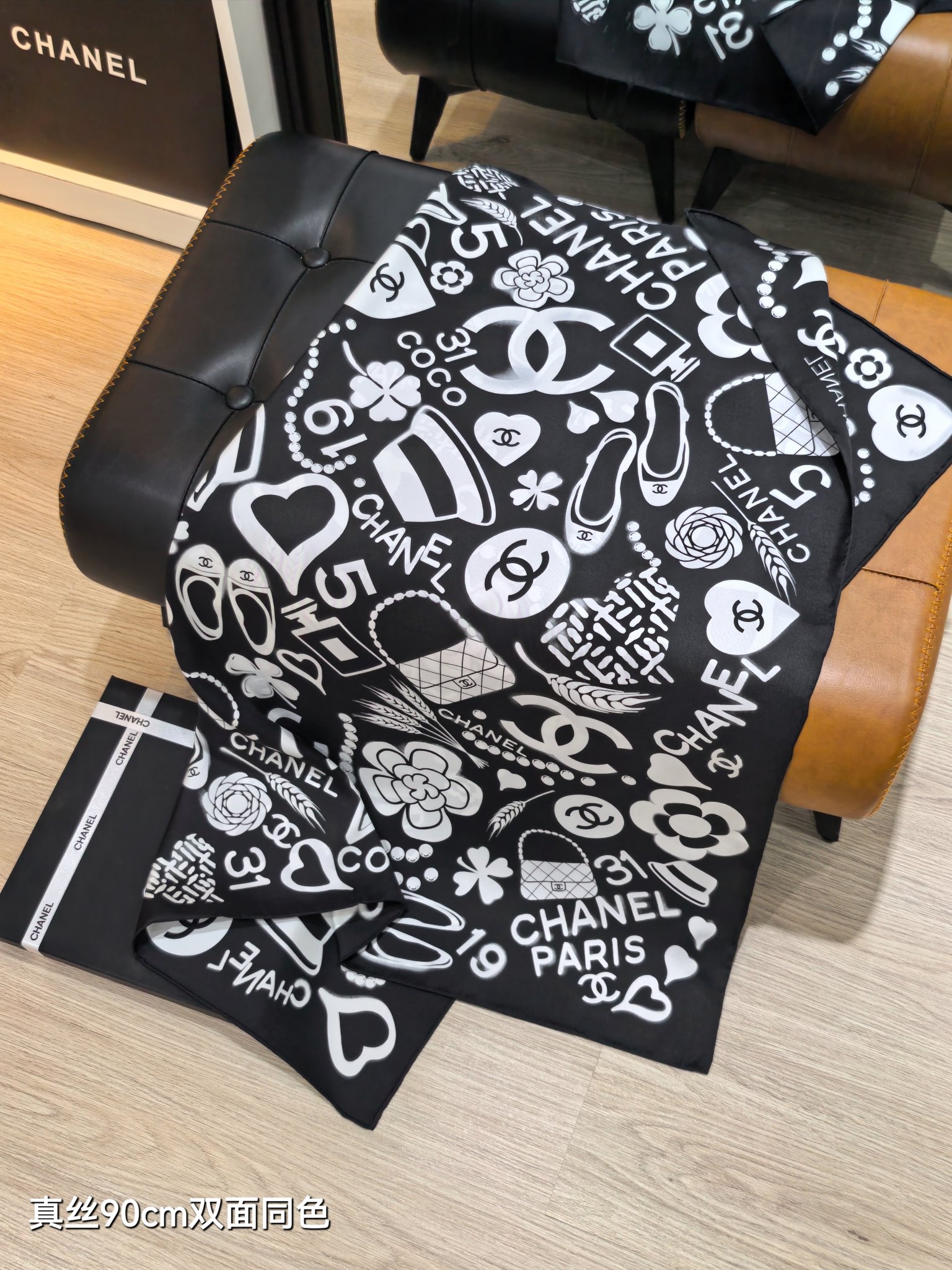 這款圍巾是AAAAA 1:1 質量(非常棒). 使用了和原版一模一樣的材料. 商標部分也保持了和香奈兒/Chanel一樣. 圖片拍攝是實物圍巾拍攝, 您所收到的實物保證和我們圖片一模一樣.