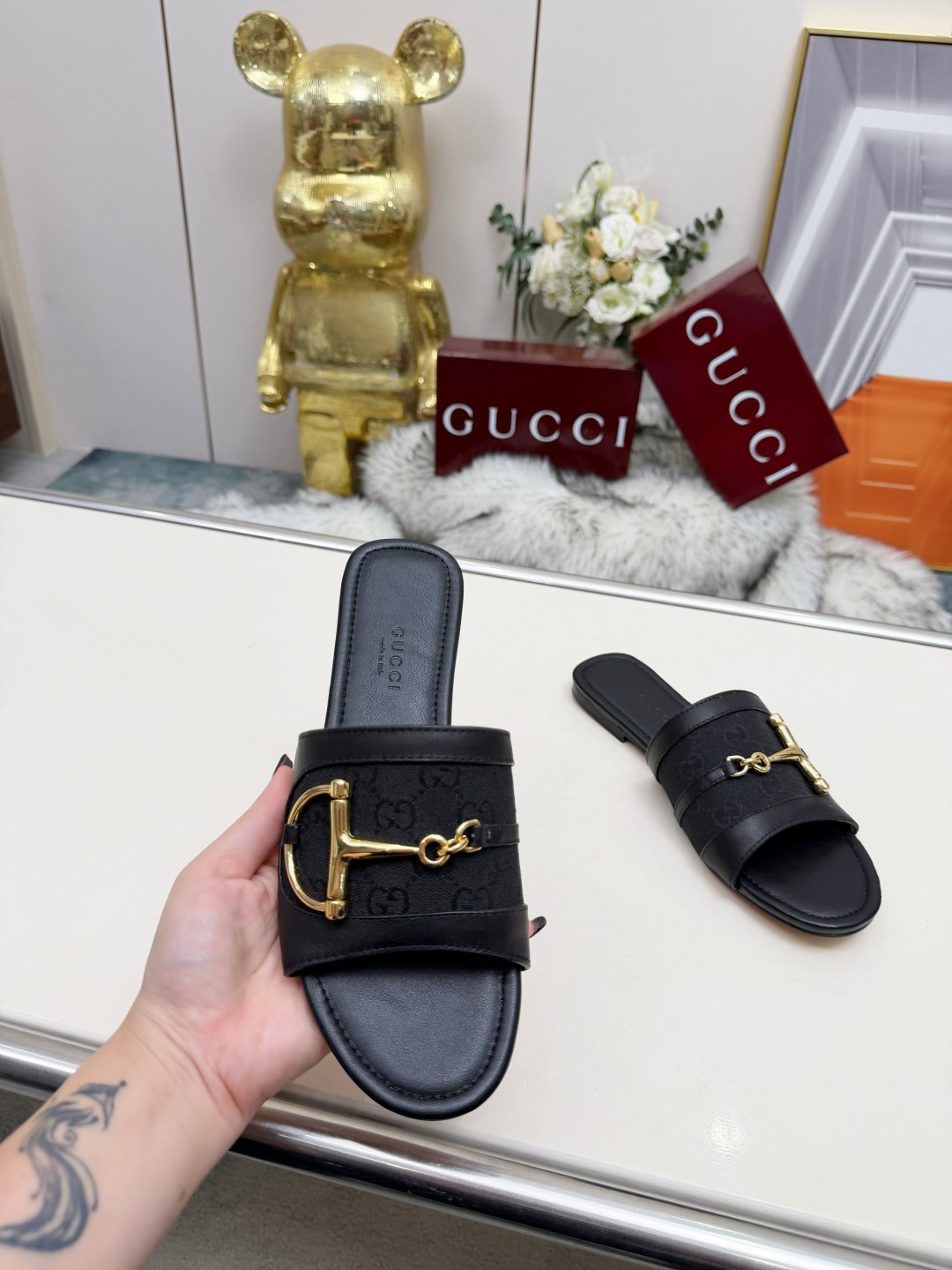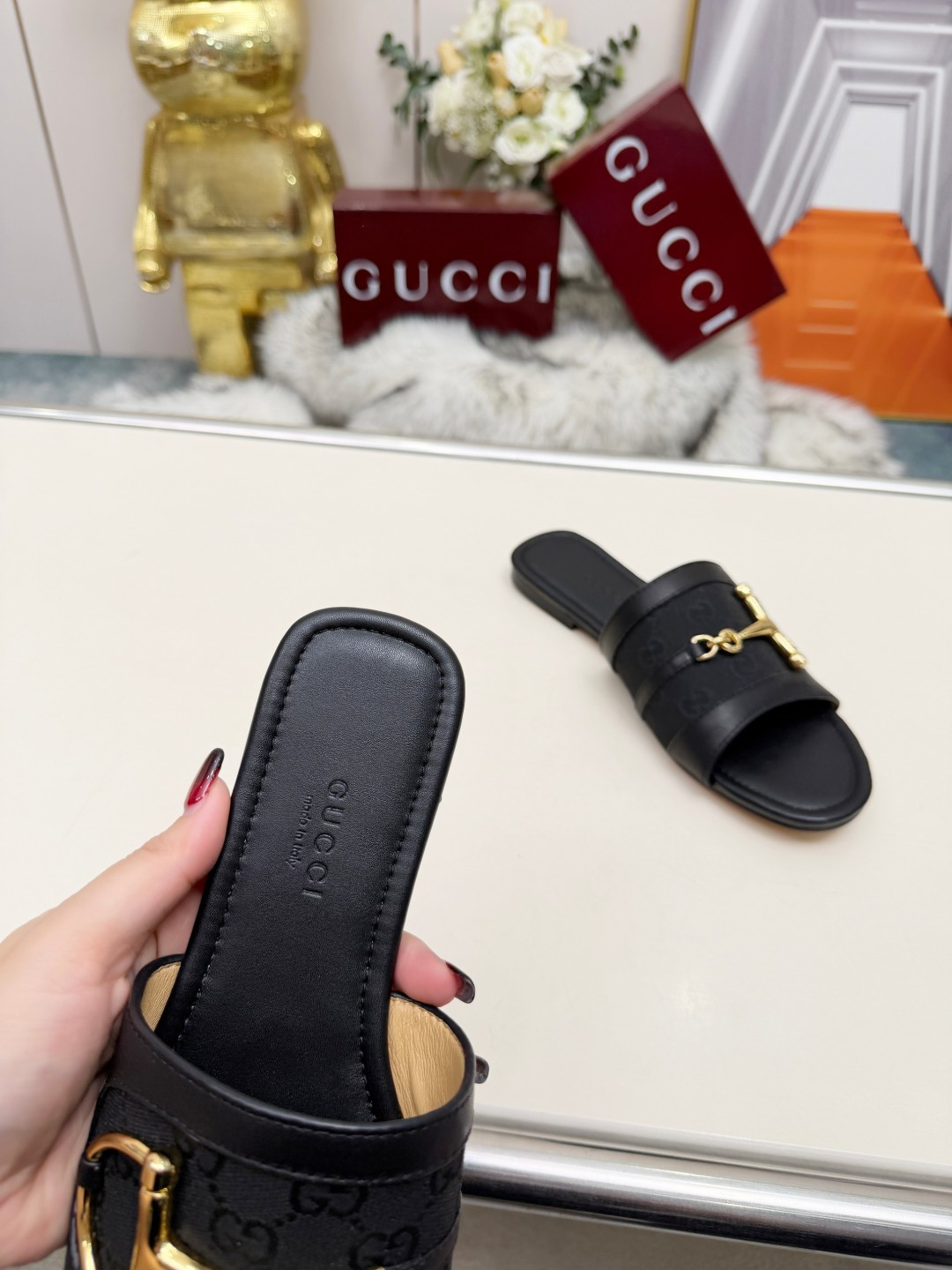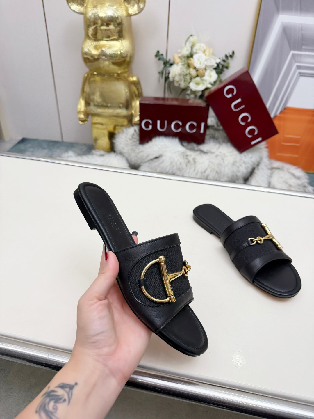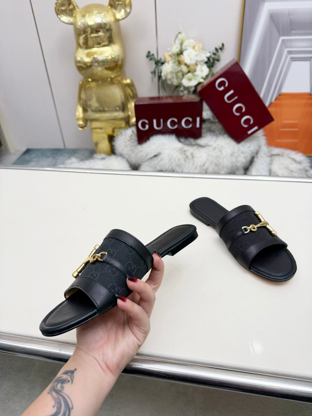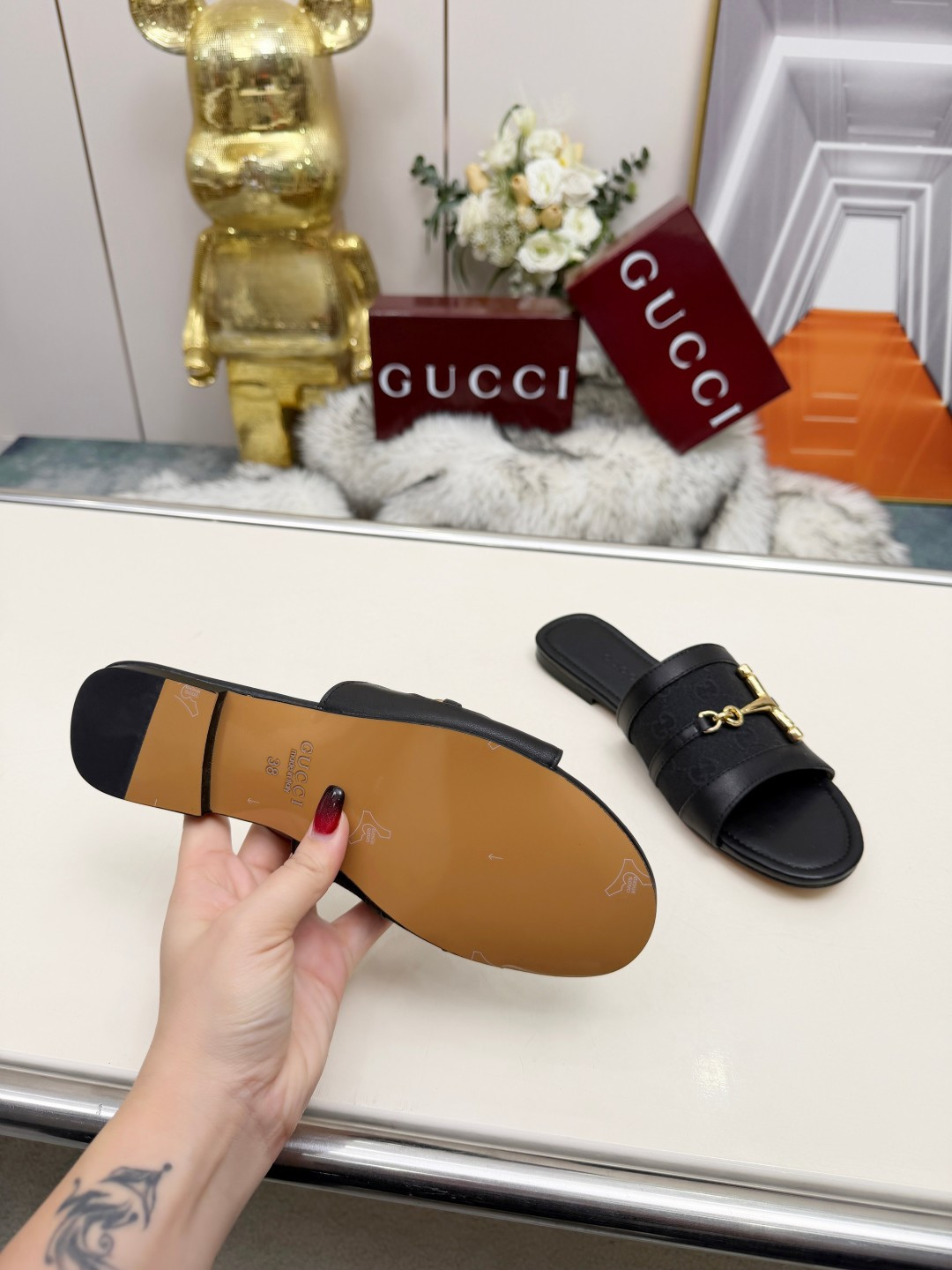 這款鞋子是AAAAA 1:1 質量(非常棒). 使用了和原版一模一樣的材料. 商標部分也保持了和古奇/Gucci一樣. 圖片拍攝是實物鞋子拍攝, 您所收到的實物保證和我們圖片一模一樣.