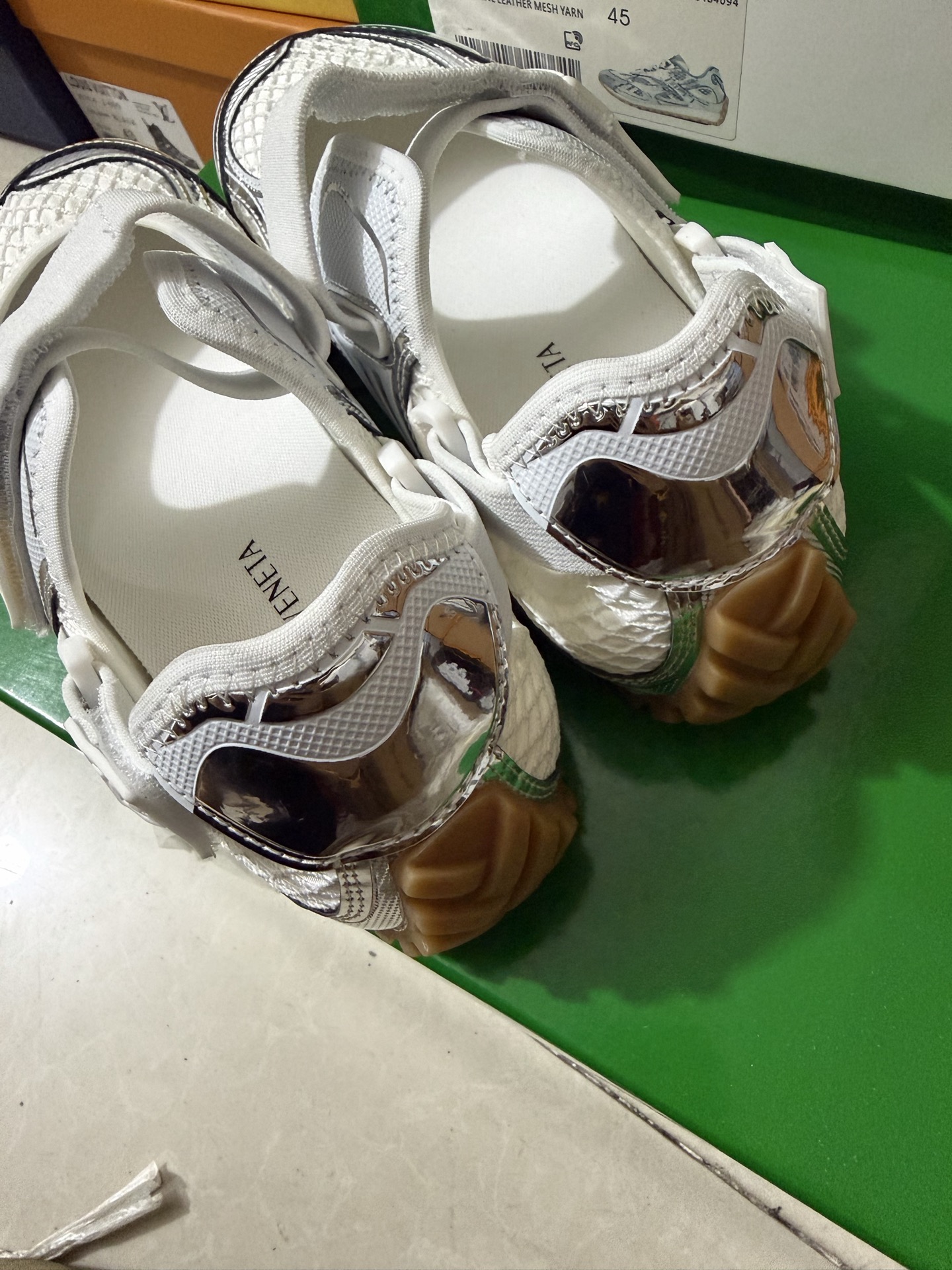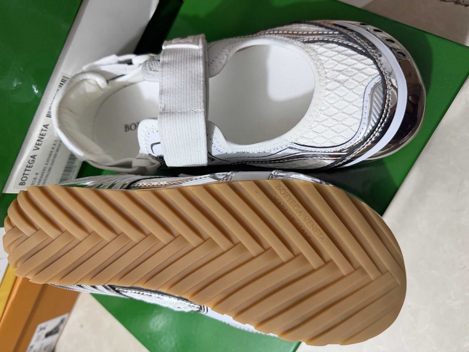 這款鞋子是AAAAA 1:1 質量(非常棒). 使用了和原版一模一樣的材料. 商標部分也保持了和葆蝶家/Bottega Veneta一樣. 圖片拍攝是實物鞋子拍攝, 您所收到的實物保證和我們圖片一模一樣.