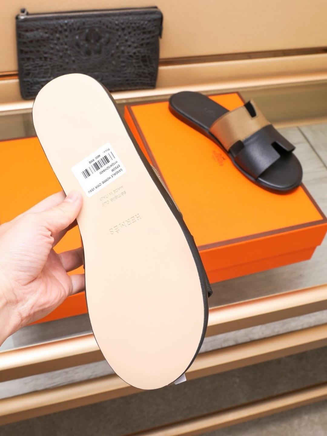 這款鞋子是AAAAA 1:1 質量(非常棒). 使用了和原版一模一樣的材料. 商標部分也保持了和愛馬仕/Hermes一樣. 圖片拍攝是實物鞋子拍攝, 您所收到的實物保證和我們圖片一模一樣.