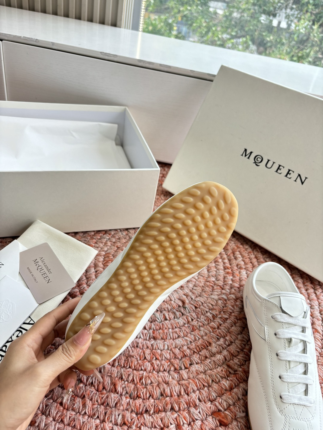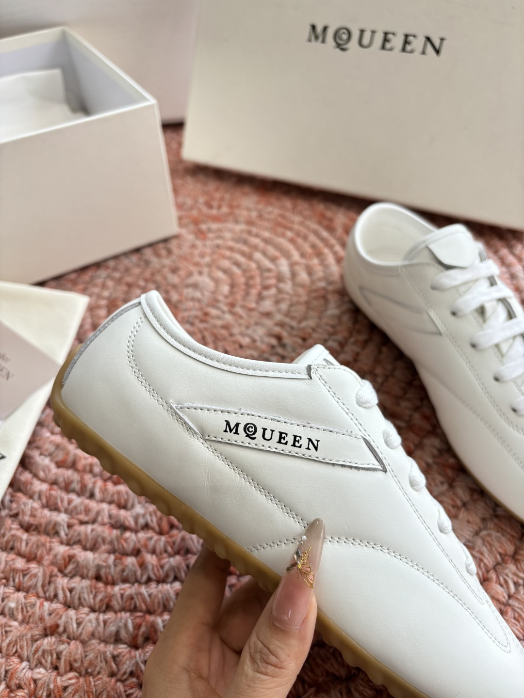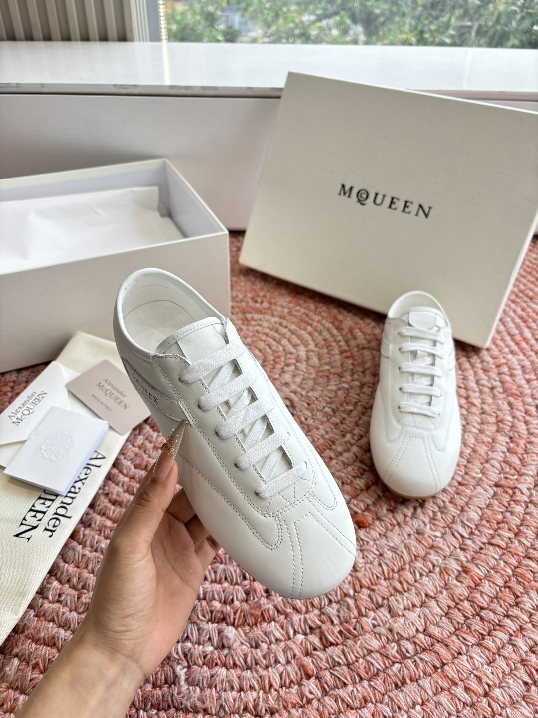 這款鞋子是AAAAA 1:1 質量(非常棒). 使用了和原版一模一樣的材料. 商標部分也保持了和麥奎恩/McQueen一樣. 圖片拍攝是實物鞋子拍攝, 您所收到的實物保證和我們圖片一模一樣.