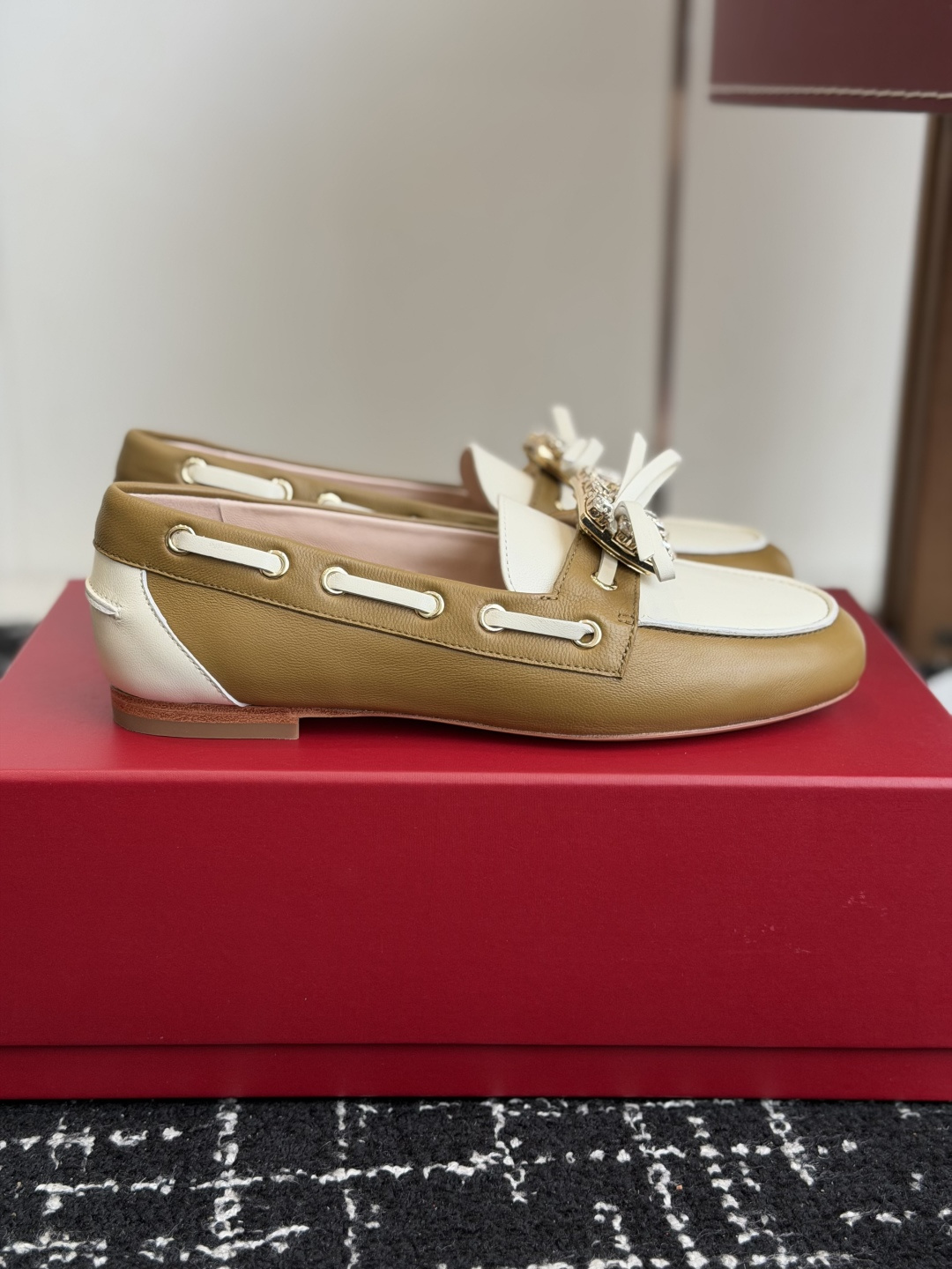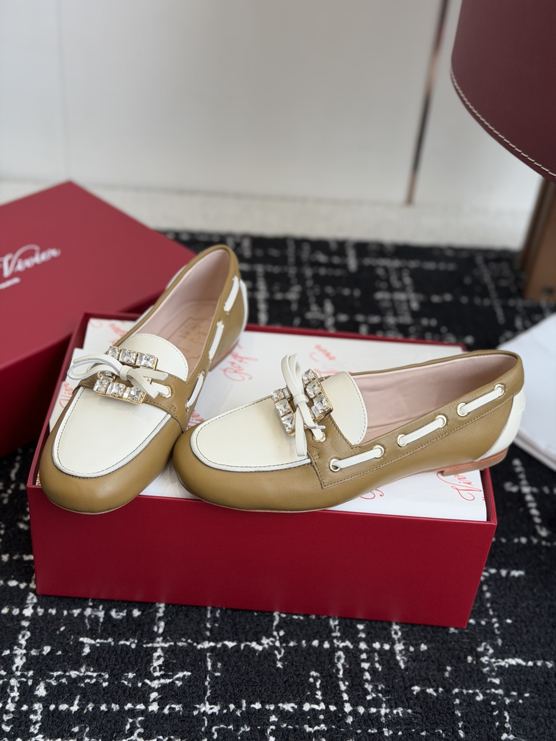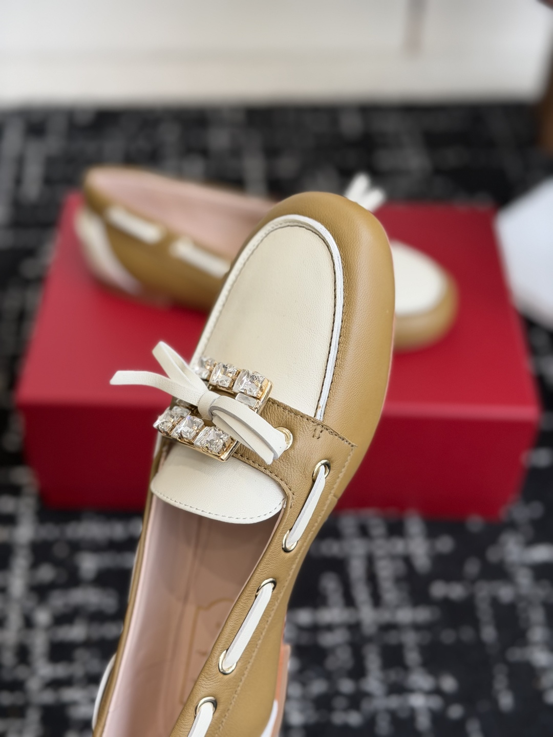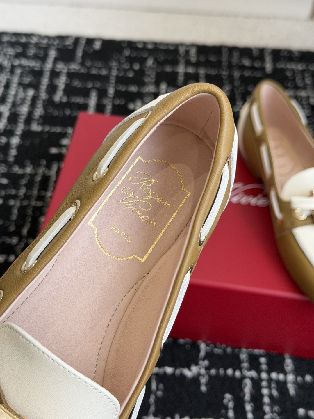 這款鞋子是AAAAA 1:1 質量(非常棒). 使用了和原版一模一樣的材料. 商標部分也保持了和羅傑維維耶/Roger Vivier一樣. 圖片拍攝是實物鞋子拍攝, 您所收到的實物保證和我們圖片一模一樣.