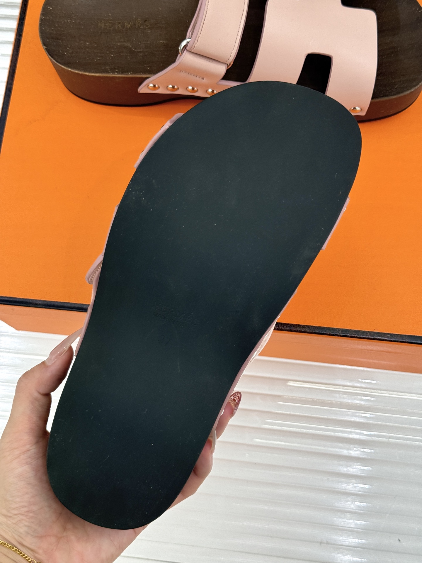 這款鞋子是AAAAA 1:1 質量(非常棒). 使用了和原版一模一樣的材料. 商標部分也保持了和愛馬仕/Hermes一樣. 圖片拍攝是實物鞋子拍攝, 您所收到的實物保證和我們圖片一模一樣.