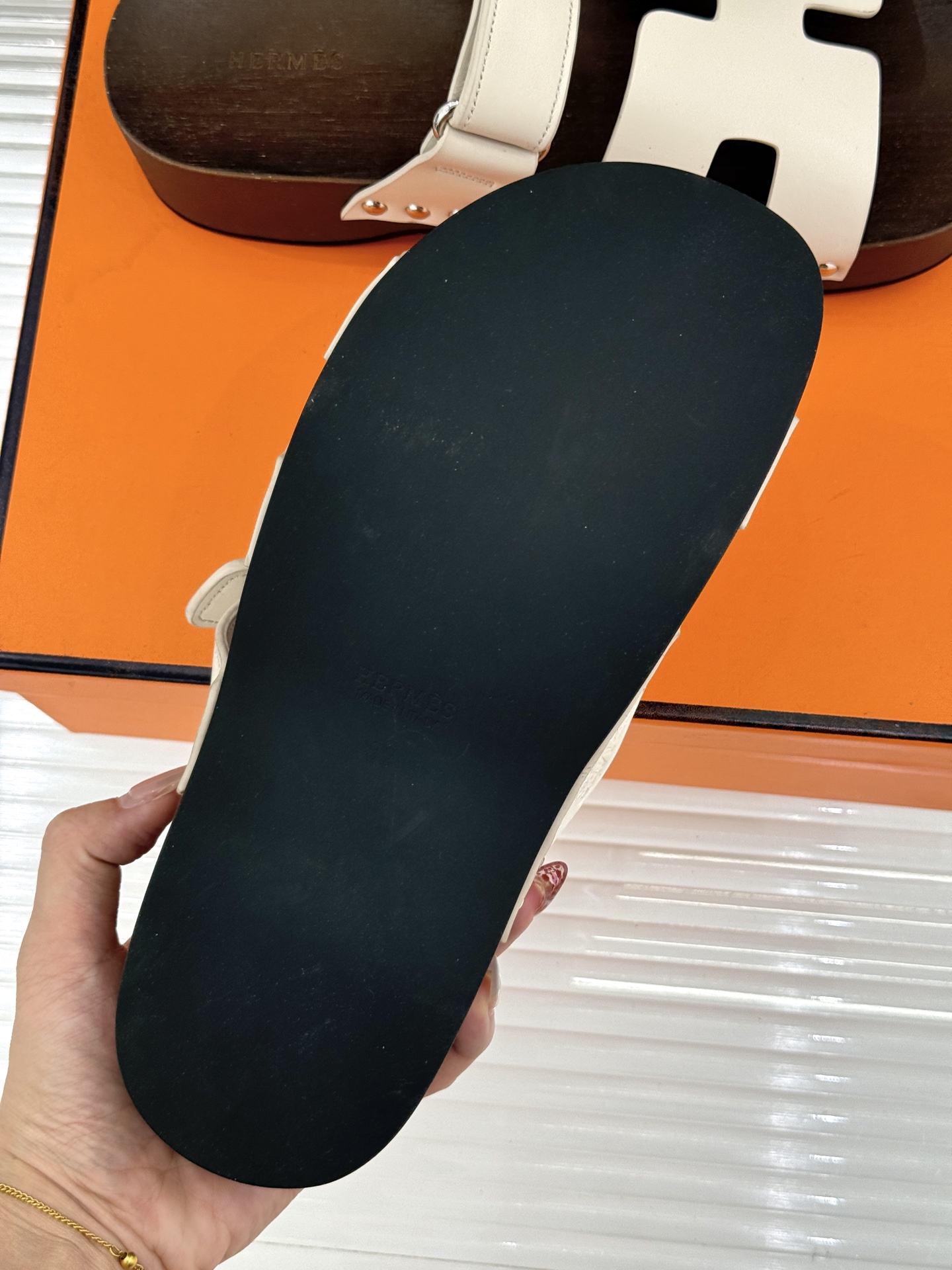 這款鞋子是AAAAA 1:1 質量(非常棒). 使用了和原版一模一樣的材料. 商標部分也保持了和愛馬仕/Hermes一樣. 圖片拍攝是實物鞋子拍攝, 您所收到的實物保證和我們圖片一模一樣.