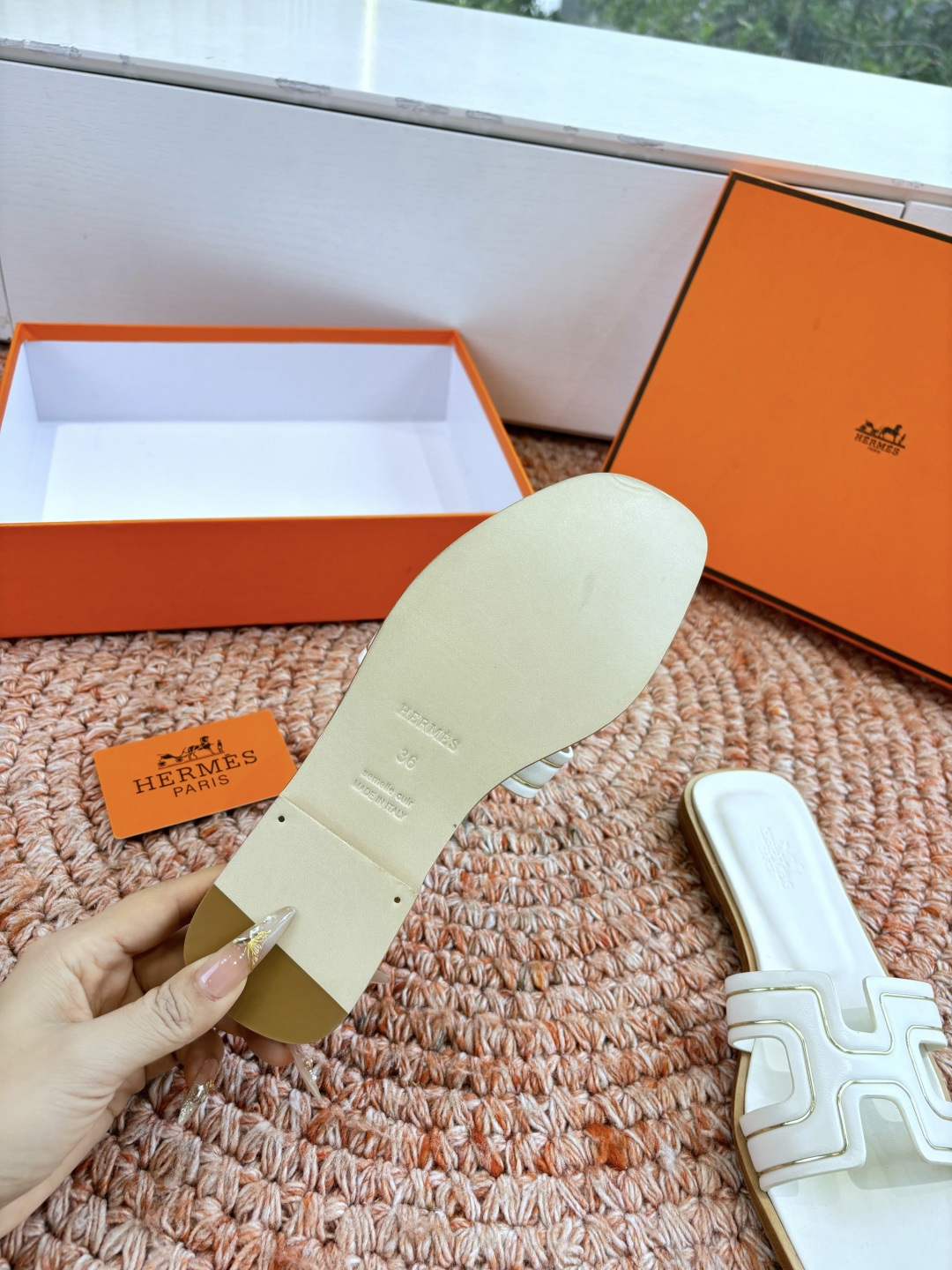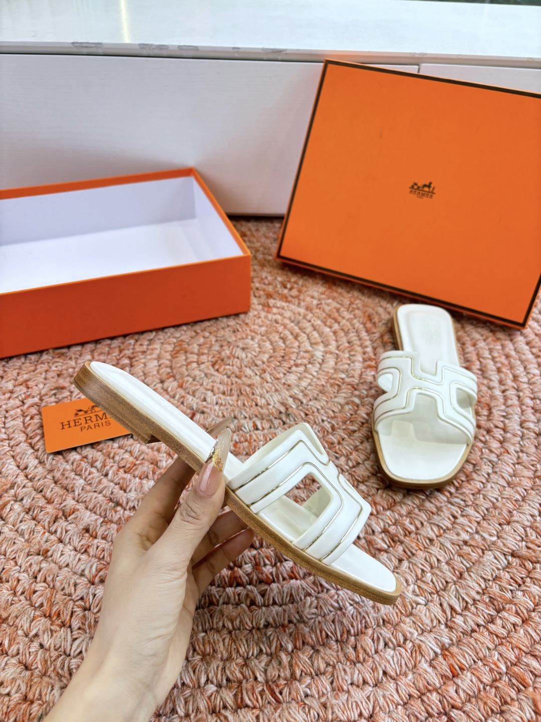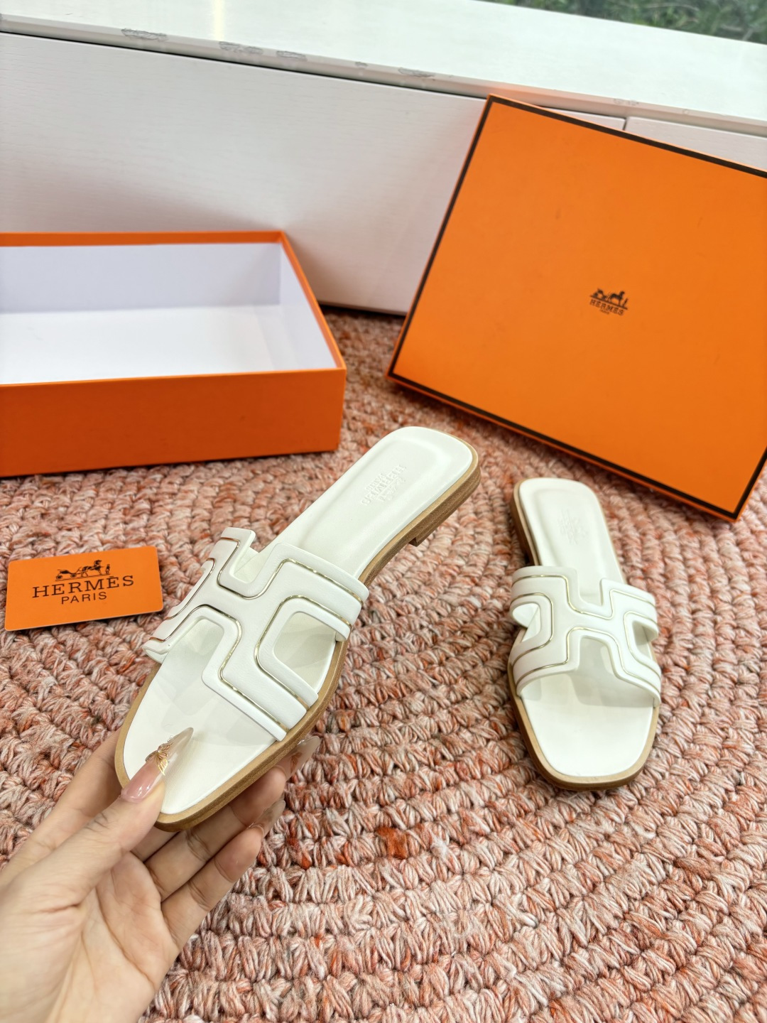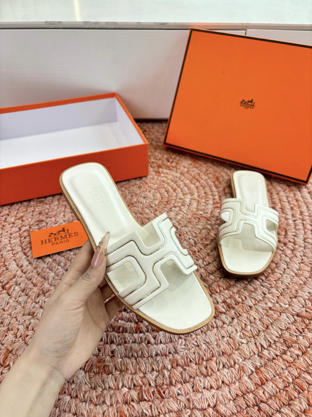 這款鞋子是AAAAA 1:1 質量(非常棒). 使用了和原版一模一樣的材料. 商標部分也保持了和愛馬仕/Hermes一樣. 圖片拍攝是實物鞋子拍攝, 您所收到的實物保證和我們圖片一模一樣.