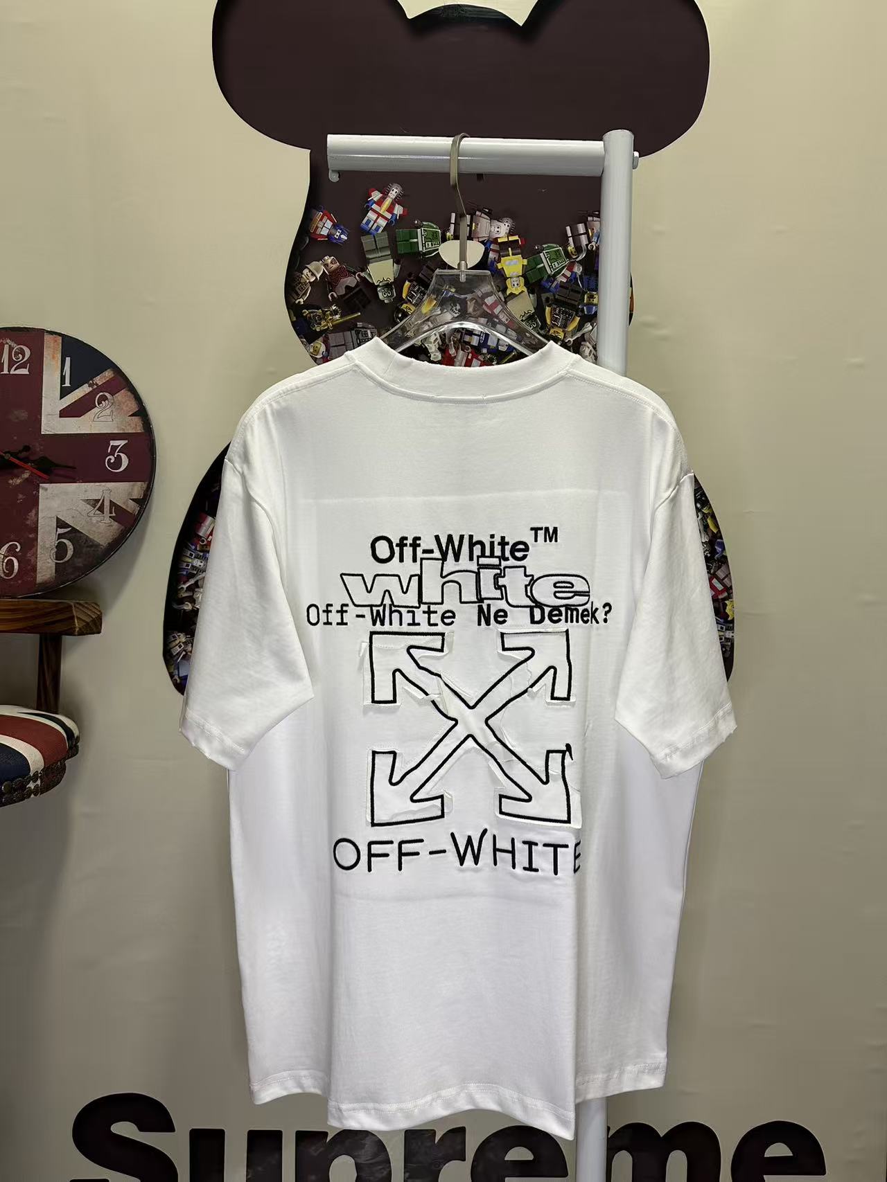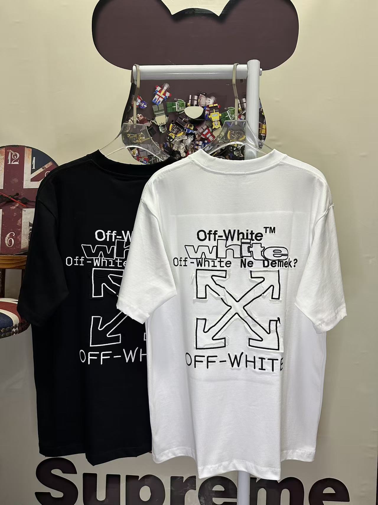 這款衣服是AAAAA 1:1 質量(非常棒). 使用了和原版一模一樣的材料. 商標部分也保持了和OFF WHITE一樣. 圖片拍攝是實物衣服拍攝, 您所收到的實物保證和我們圖片一模一樣.