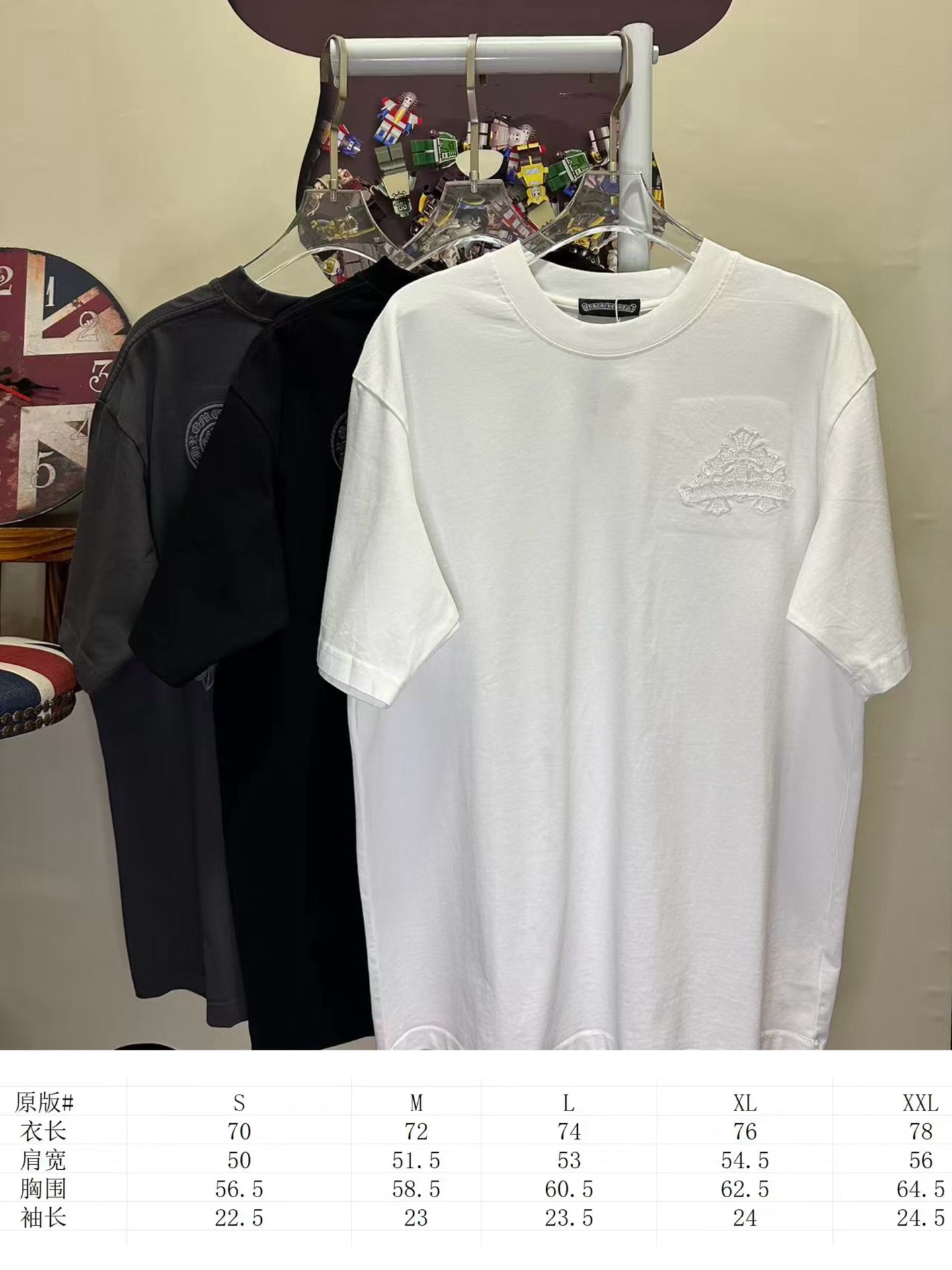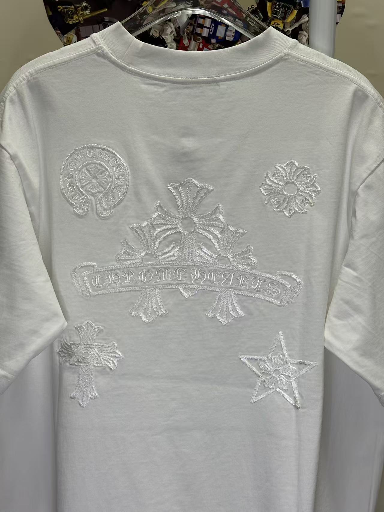 這款衣服是AAAAA 1:1 質量(非常棒). 使用了和原版一模一樣的材料. 商標部分也保持了和鉻心/Chrome Hearts一樣. 圖片拍攝是實物衣服拍攝, 您所收到的實物保證和我們圖片一模一樣.