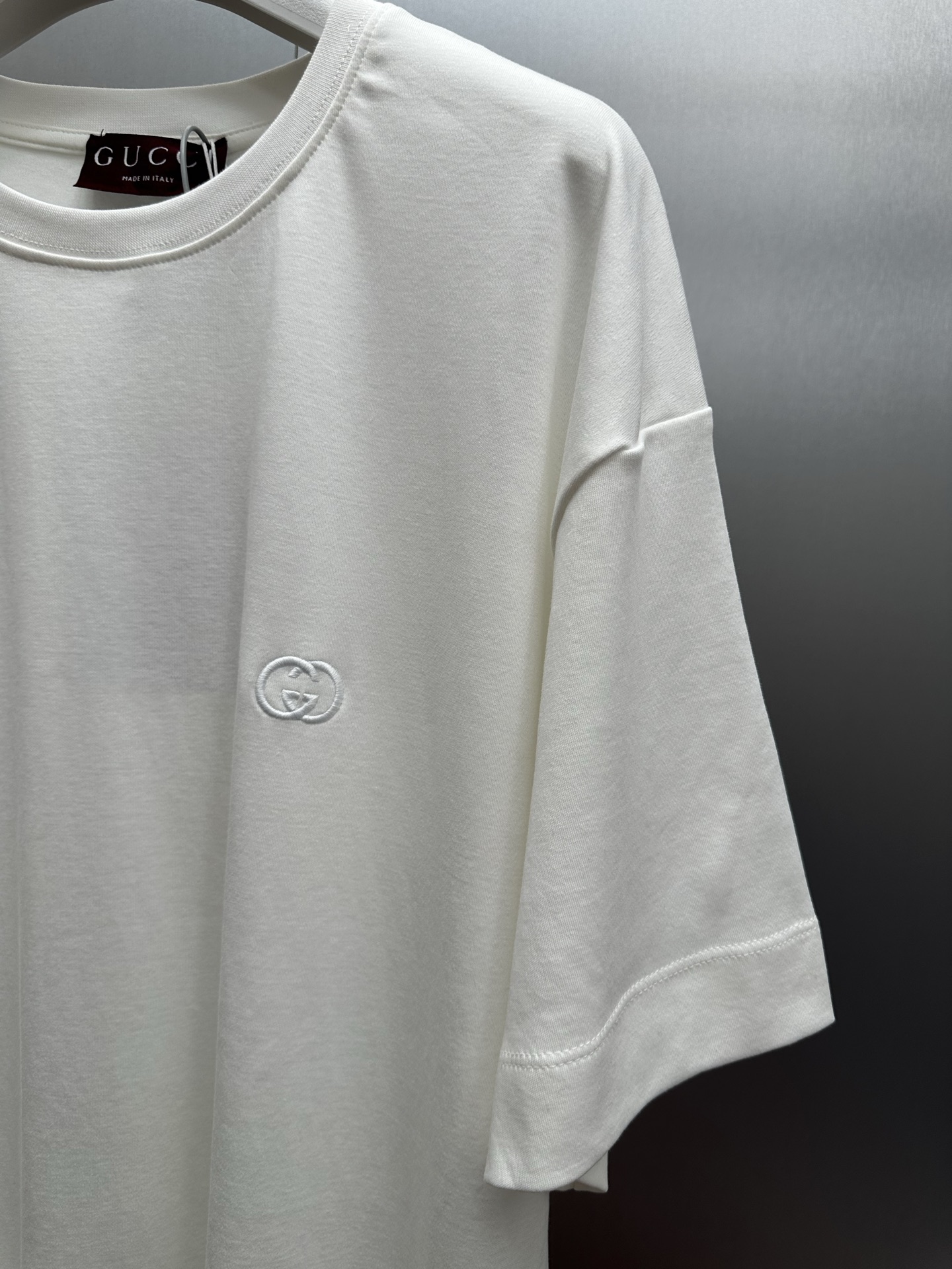 這款衣服是AAAAA 1:1 質量(非常棒). 使用了和原版一模一樣的材料. 商標部分也保持了和古奇/Gucci一樣. 圖片拍攝是實物衣服拍攝, 您所收到的實物保證和我們圖片一模一樣.