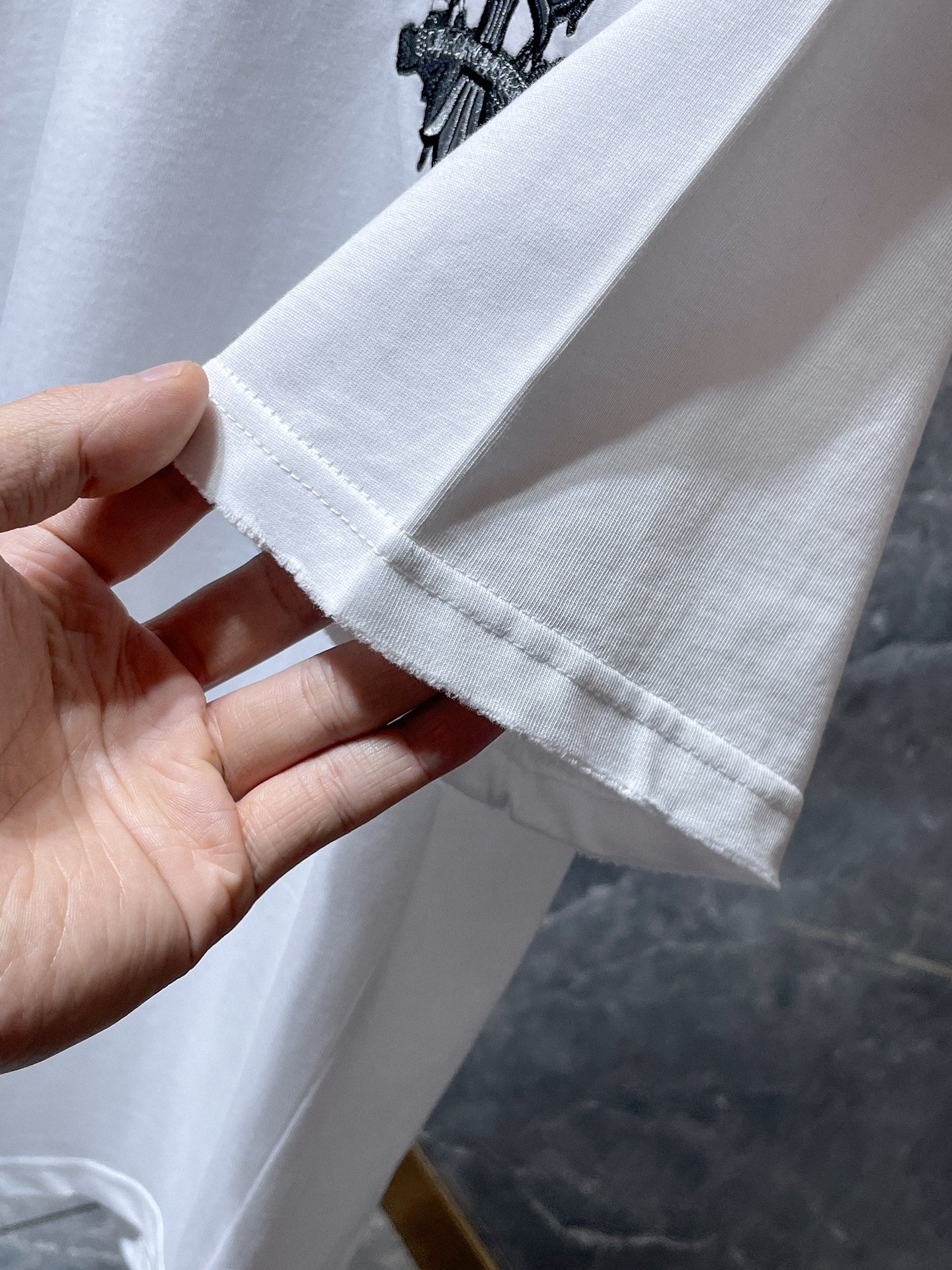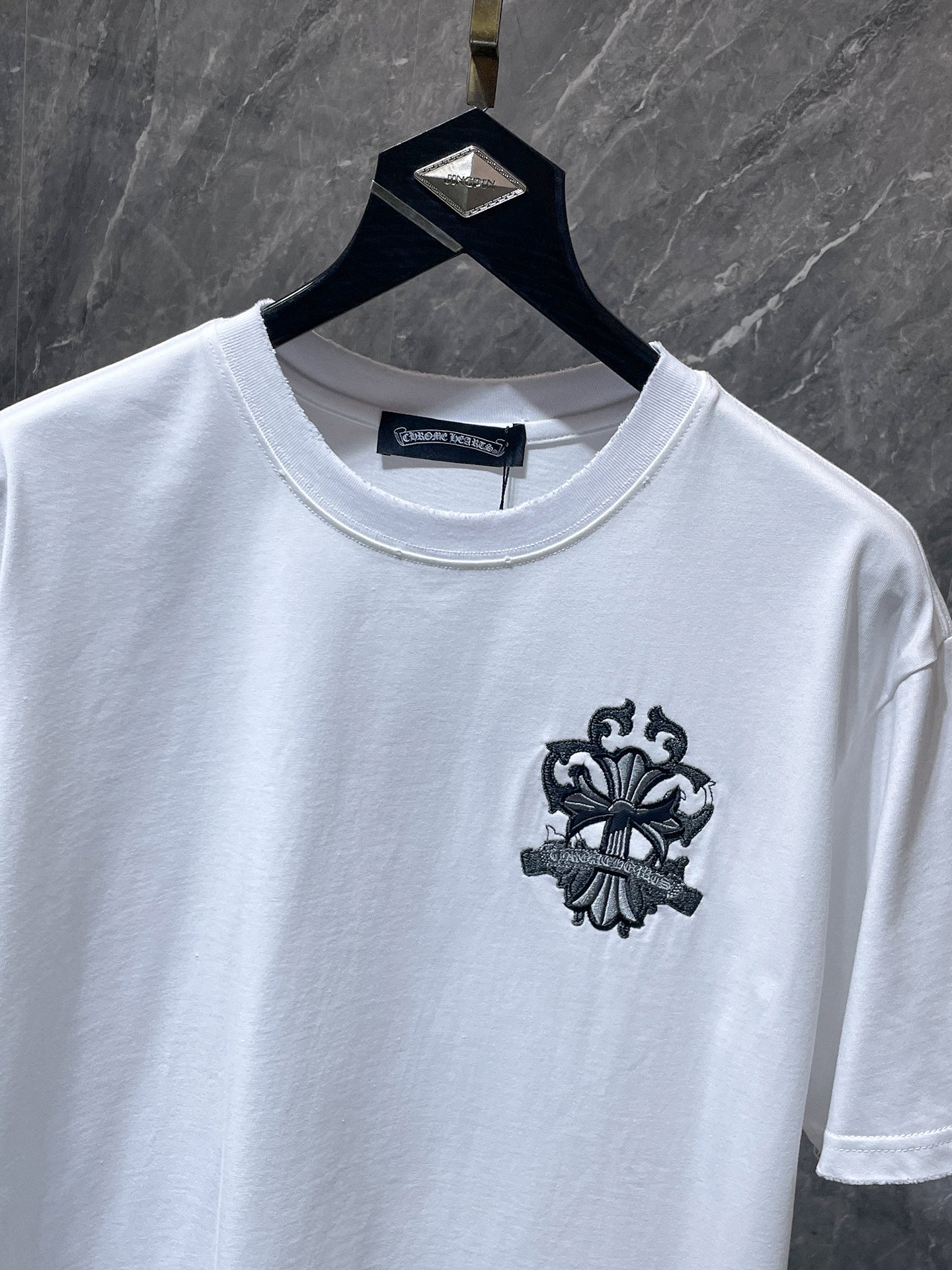 這款衣服是AAAAA 1:1 質量(非常棒). 使用了和原版一模一樣的材料. 商標部分也保持了和鉻心/Chrome Hearts一樣. 圖片拍攝是實物衣服拍攝, 您所收到的實物保證和我們圖片一模一樣.