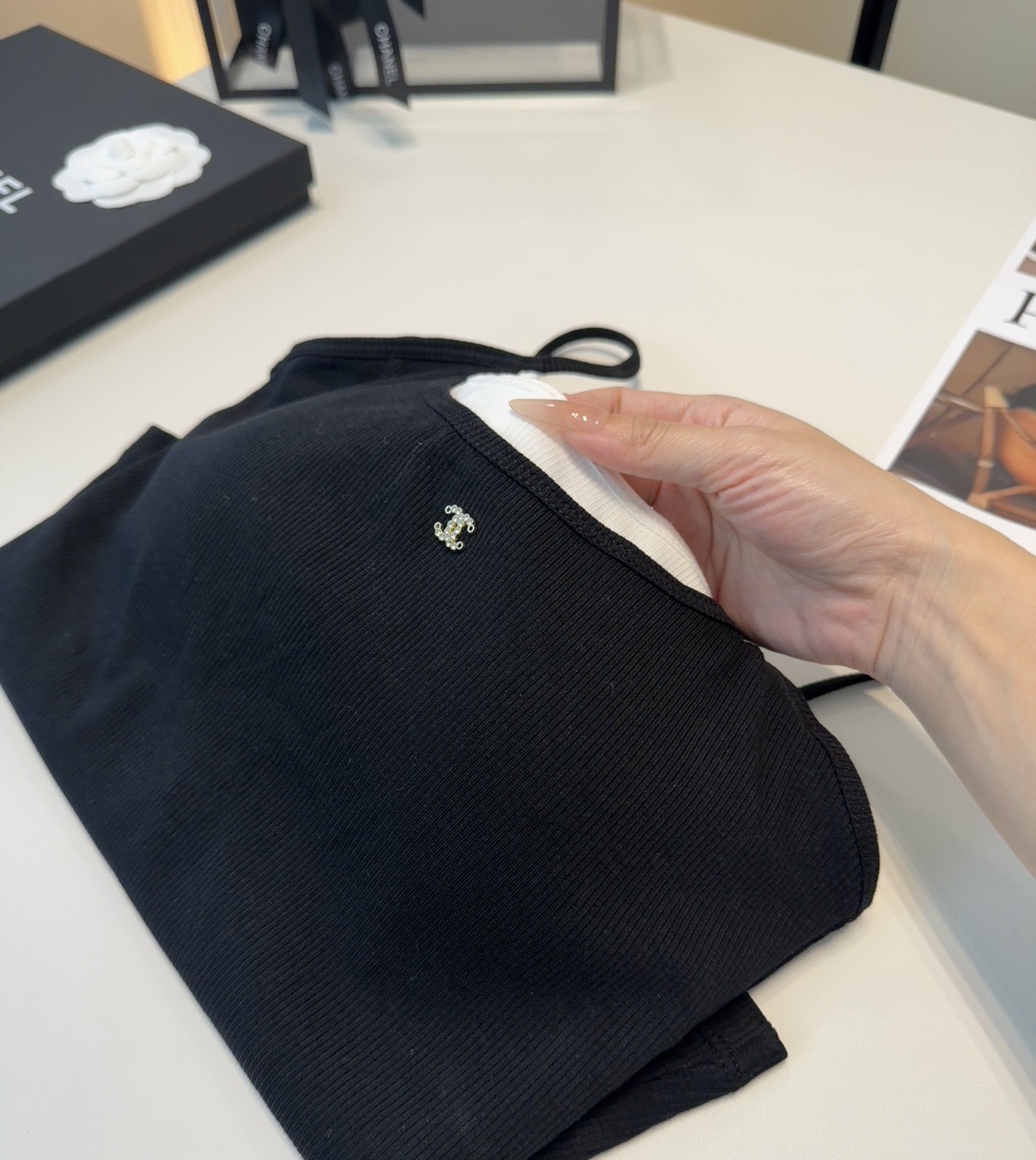 這款圍巾是AAAAA 1:1 質量(非常棒). 使用了和原版一模一樣的材料. 商標部分也保持了和香奈兒/Chanel一樣. 圖片拍攝是實物圍巾拍攝, 您所收到的實物保證和我們圖片一模一樣.