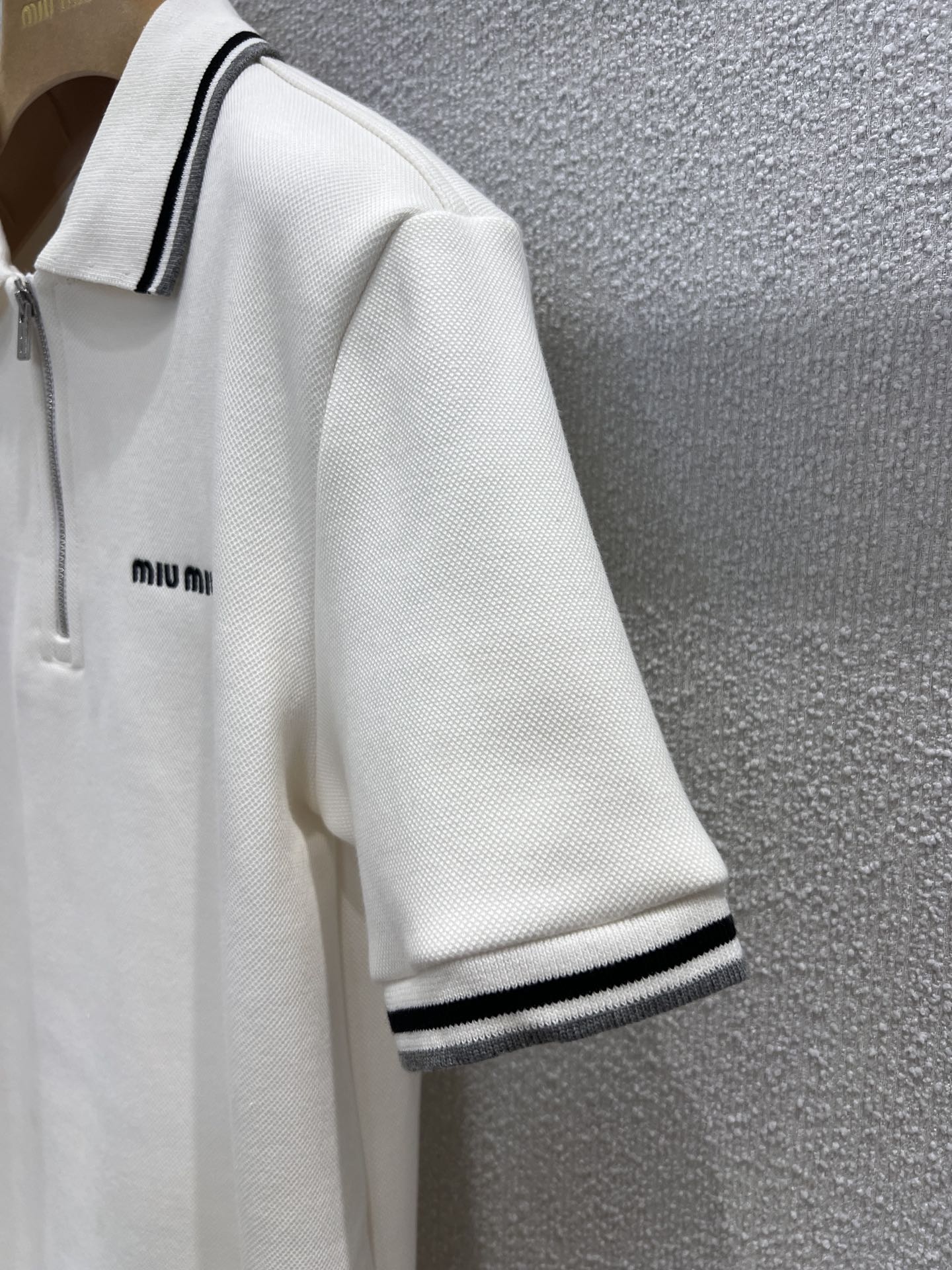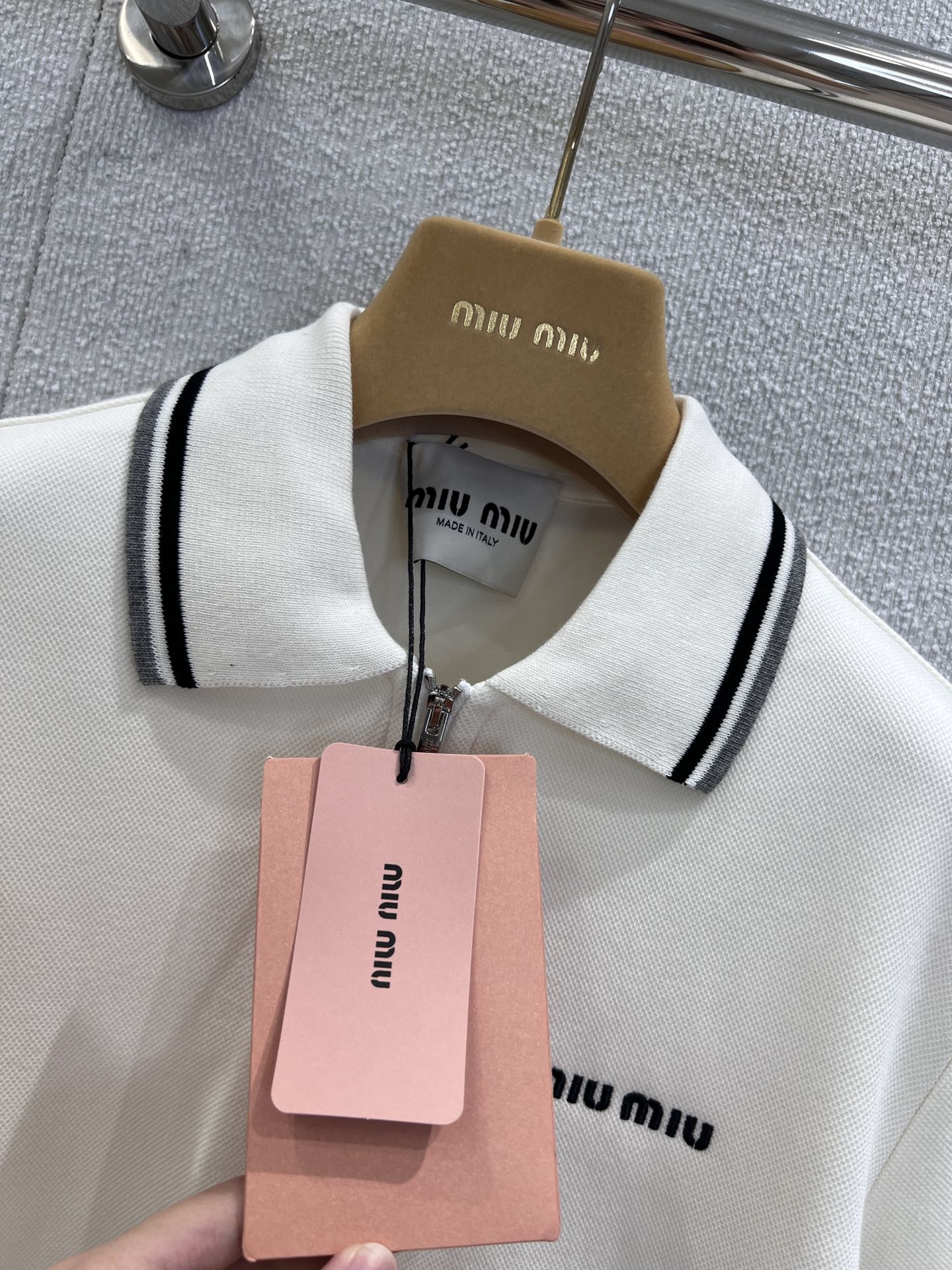 這款衣服是AAAAA 1:1 質量(非常棒). 使用了和原版一模一樣的材料. 商標部分也保持了和繆繆/Miu Miu一樣. 圖片拍攝是實物衣服拍攝, 您所收到的實物保證和我們圖片一模一樣.