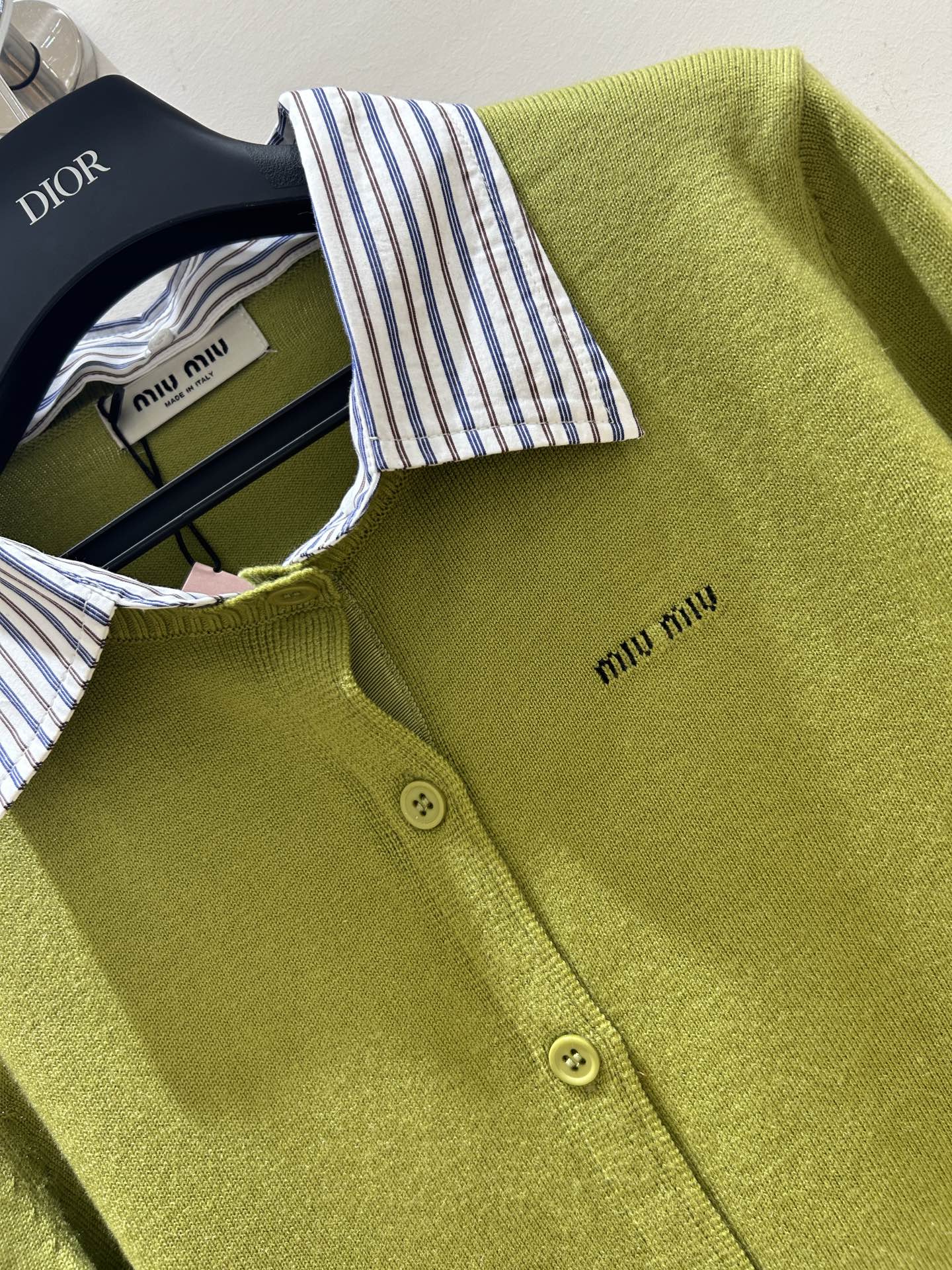 這款衣服是AAAAA 1:1 質量(非常棒). 使用了和原版一模一樣的材料. 商標部分也保持了和繆繆/Miu Miu一樣. 圖片拍攝是實物衣服拍攝, 您所收到的實物保證和我們圖片一模一樣.