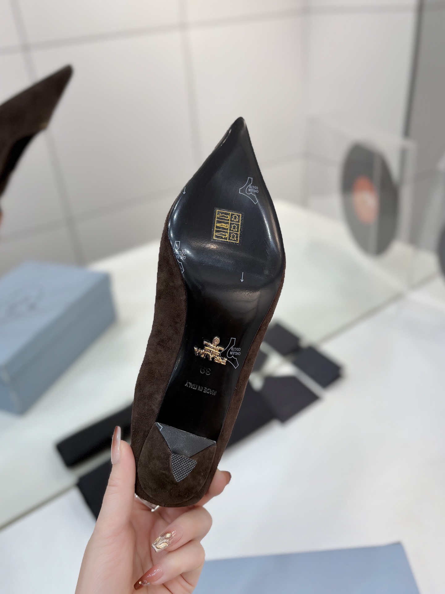 這款鞋子是AAAAA 1:1 質量(非常棒). 使用了和原版一模一樣的材料. 商標部分也保持了和普拉達/Prada一樣. 圖片拍攝是實物鞋子拍攝, 您所收到的實物保證和我們圖片一模一樣.