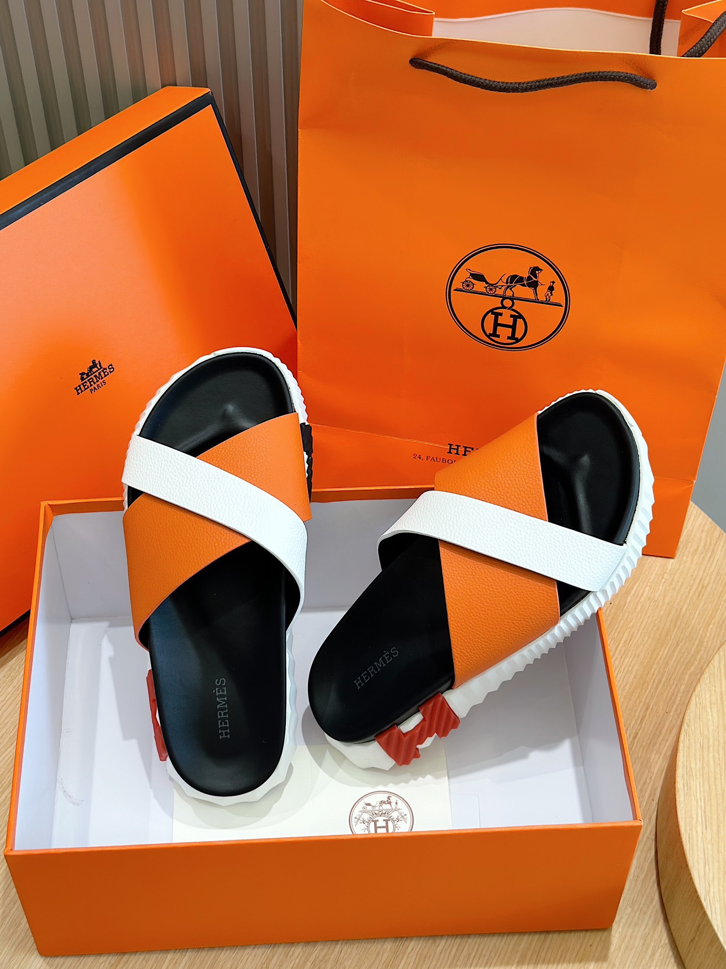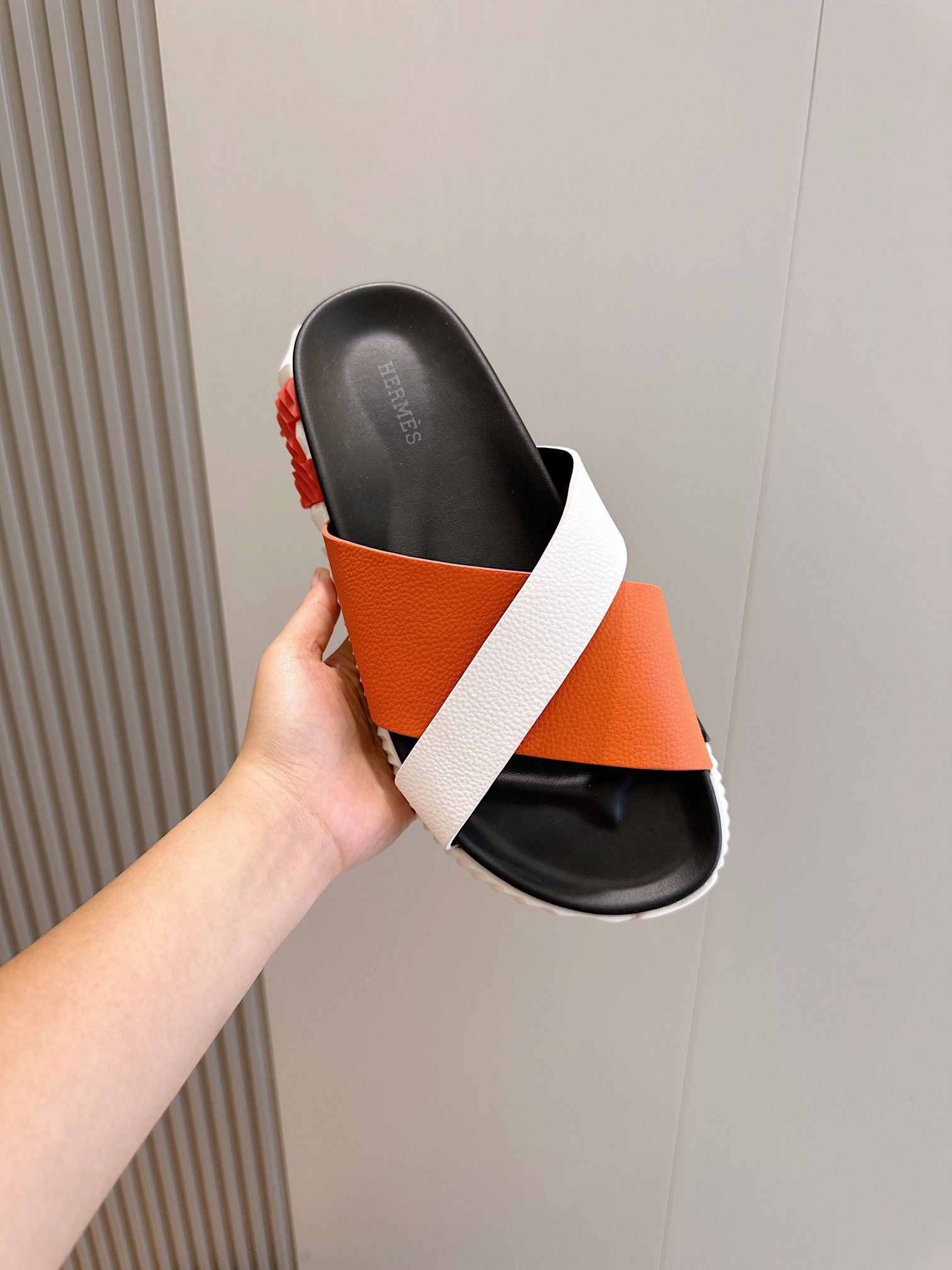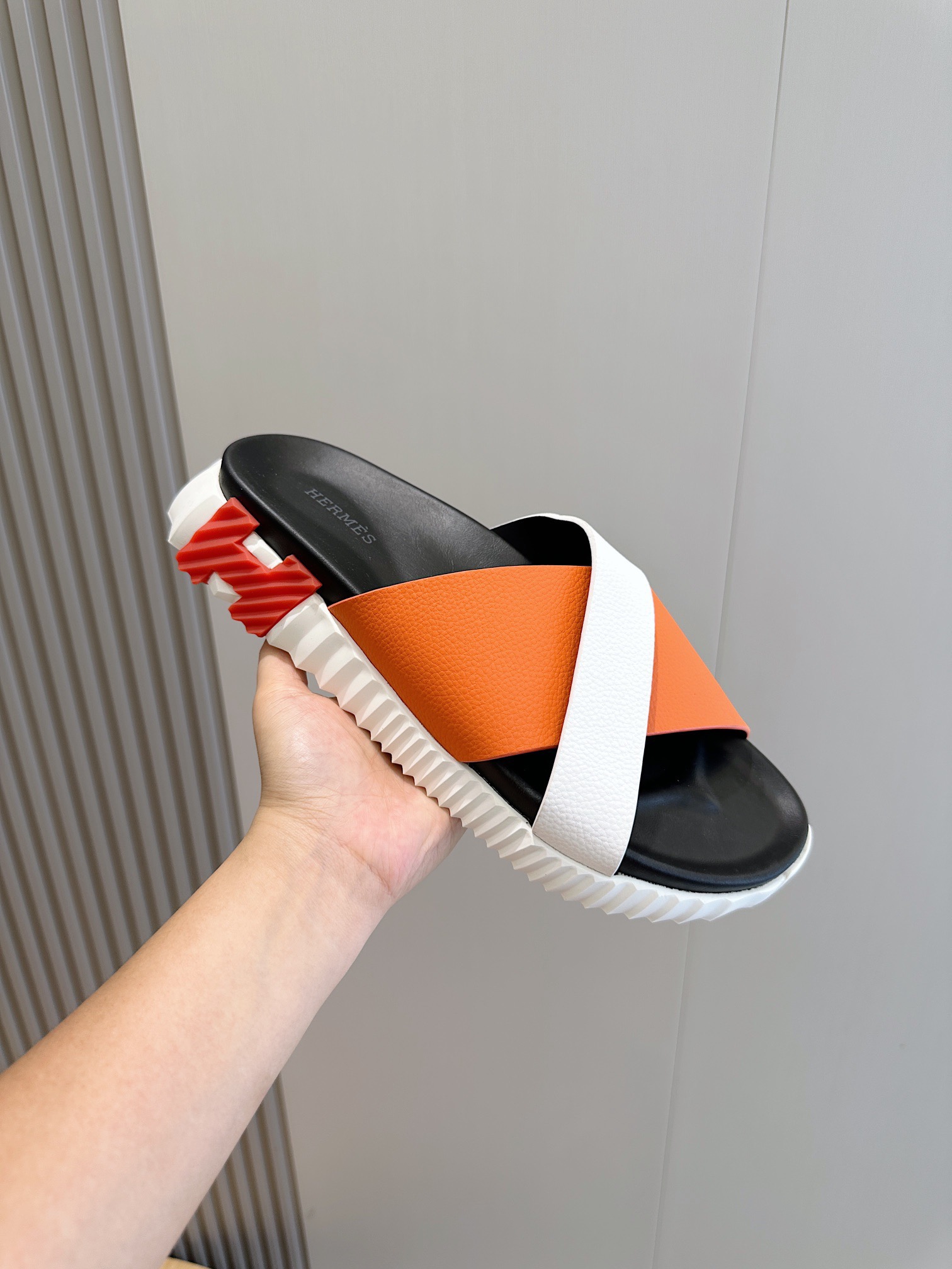 這款鞋子是AAAAA 1:1 質量(非常棒). 使用了和原版一模一樣的材料. 商標部分也保持了和愛馬仕/Hermes一樣. 圖片拍攝是實物鞋子拍攝, 您所收到的實物保證和我們圖片一模一樣.
