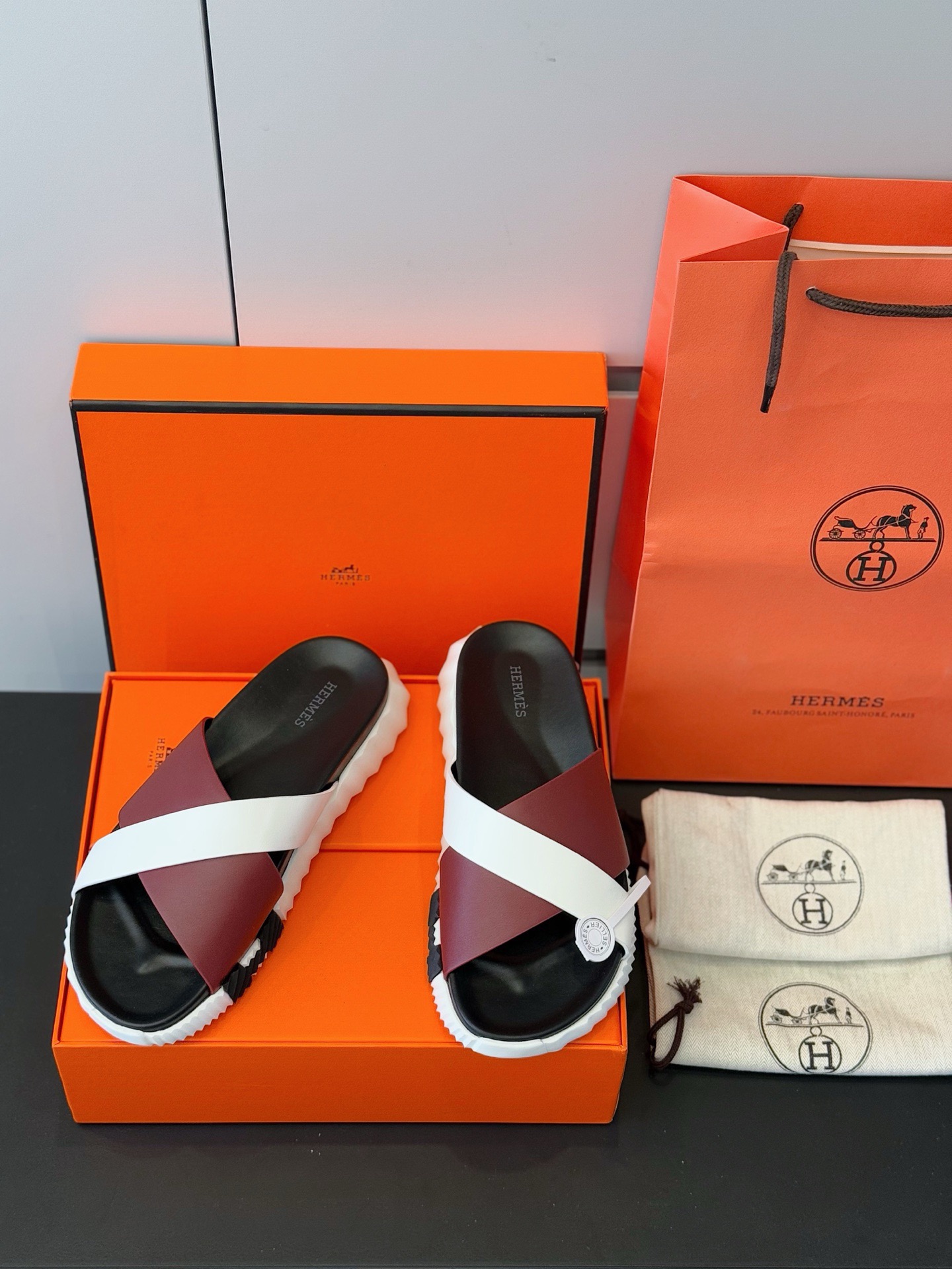 這款鞋子是AAAAA 1:1 質量(非常棒). 使用了和原版一模一樣的材料. 商標部分也保持了和愛馬仕/Hermes一樣. 圖片拍攝是實物鞋子拍攝, 您所收到的實物保證和我們圖片一模一樣.
