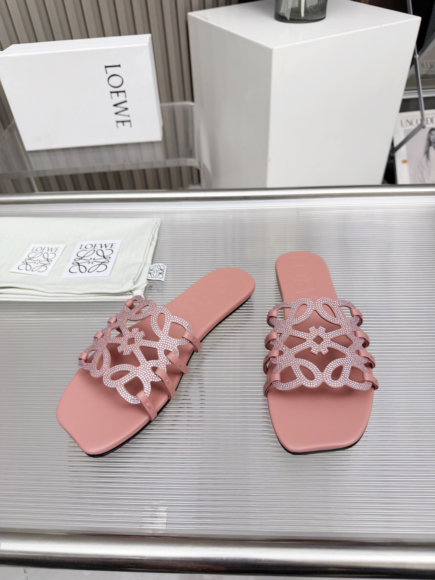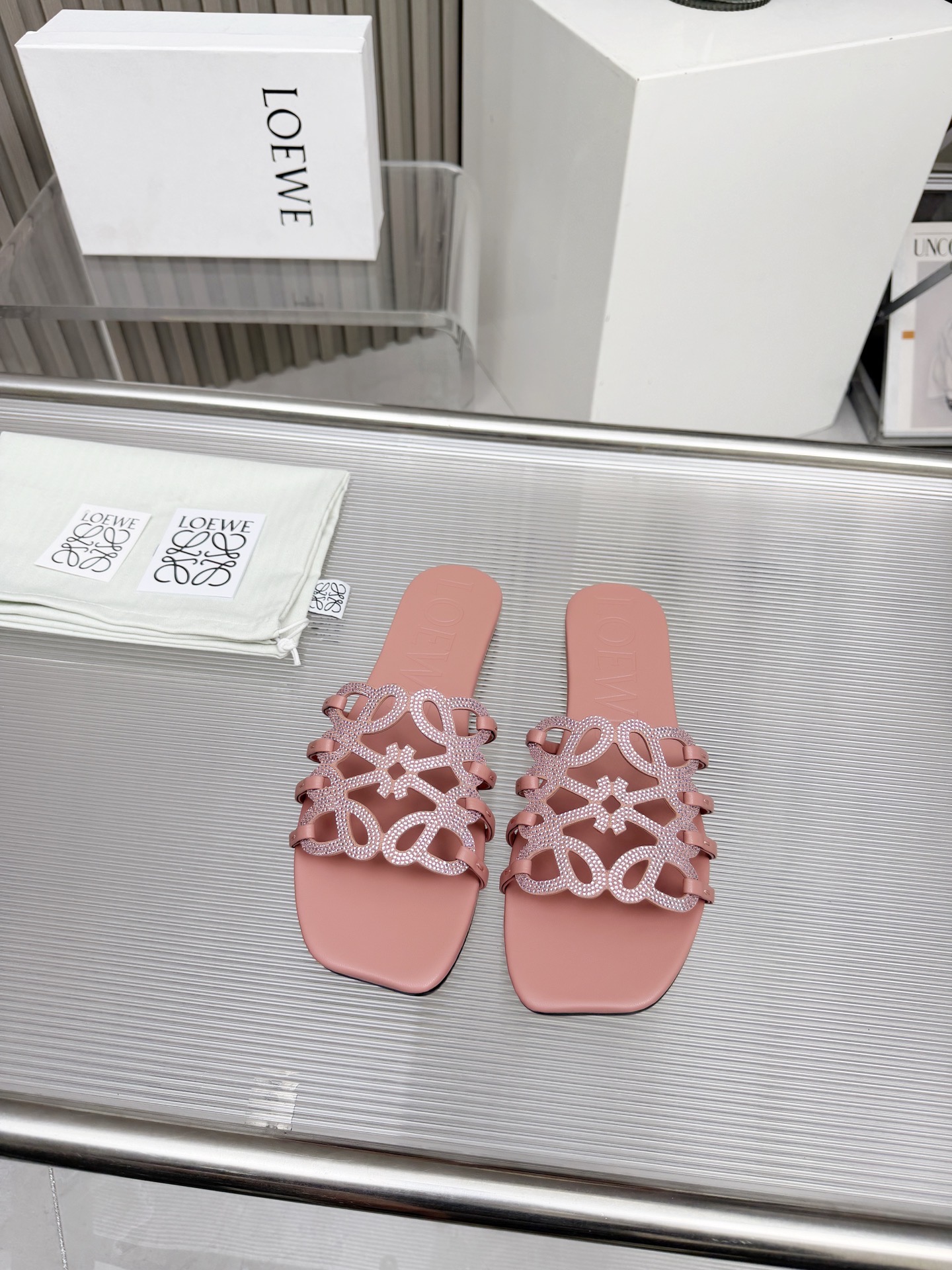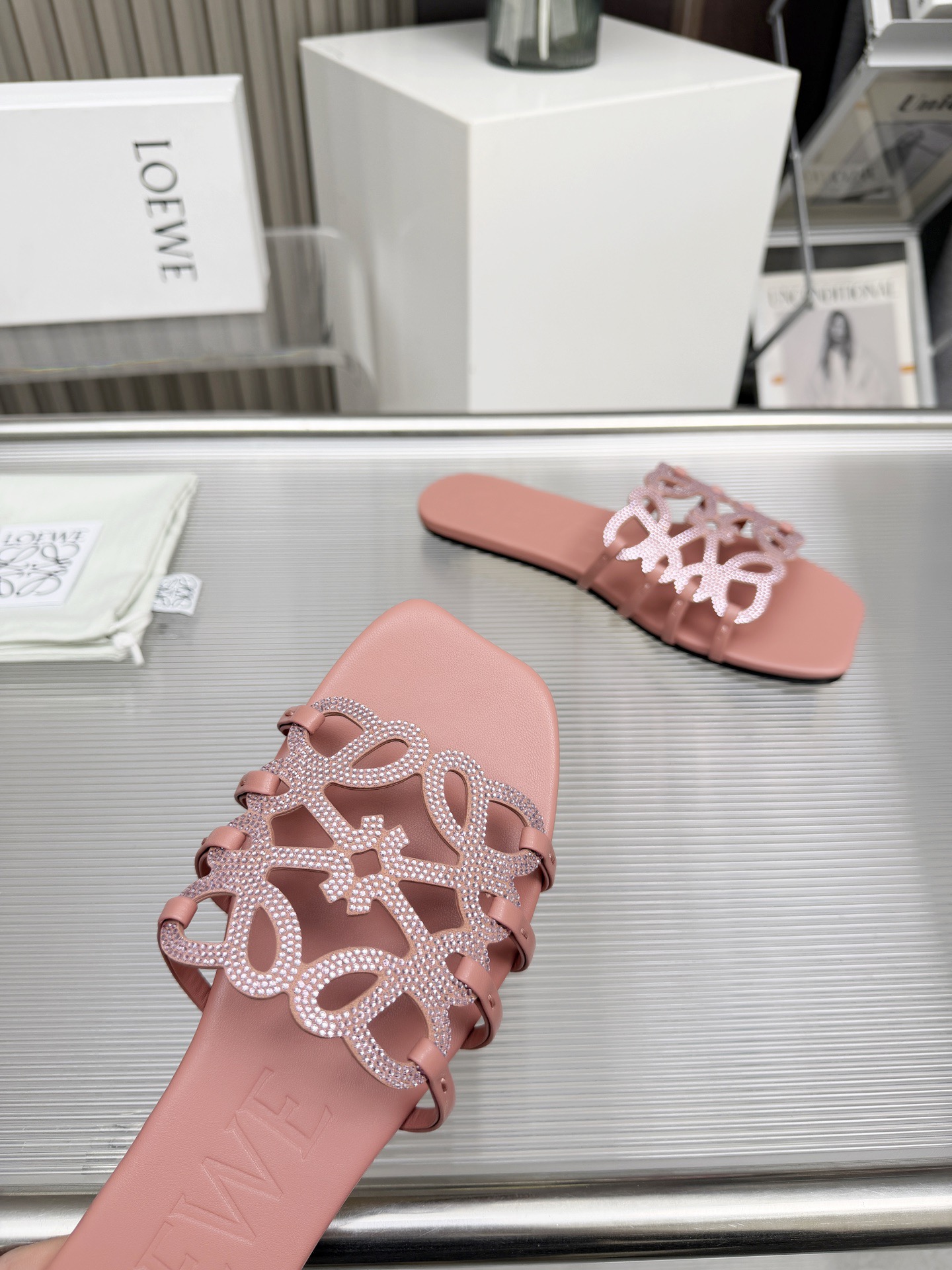 這款鞋子是AAAAA 1:1 質量(非常棒). 使用了和原版一模一樣的材料. 商標部分也保持了和Loewe一樣. 圖片拍攝是實物鞋子拍攝, 您所收到的實物保證和我們圖片一模一樣.