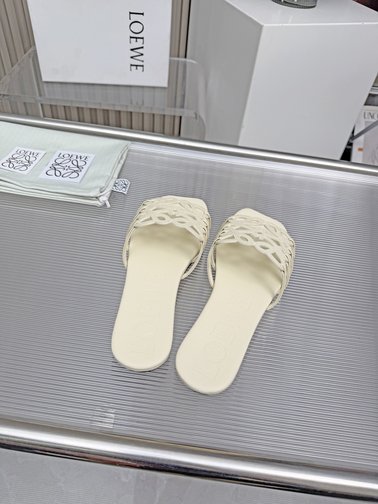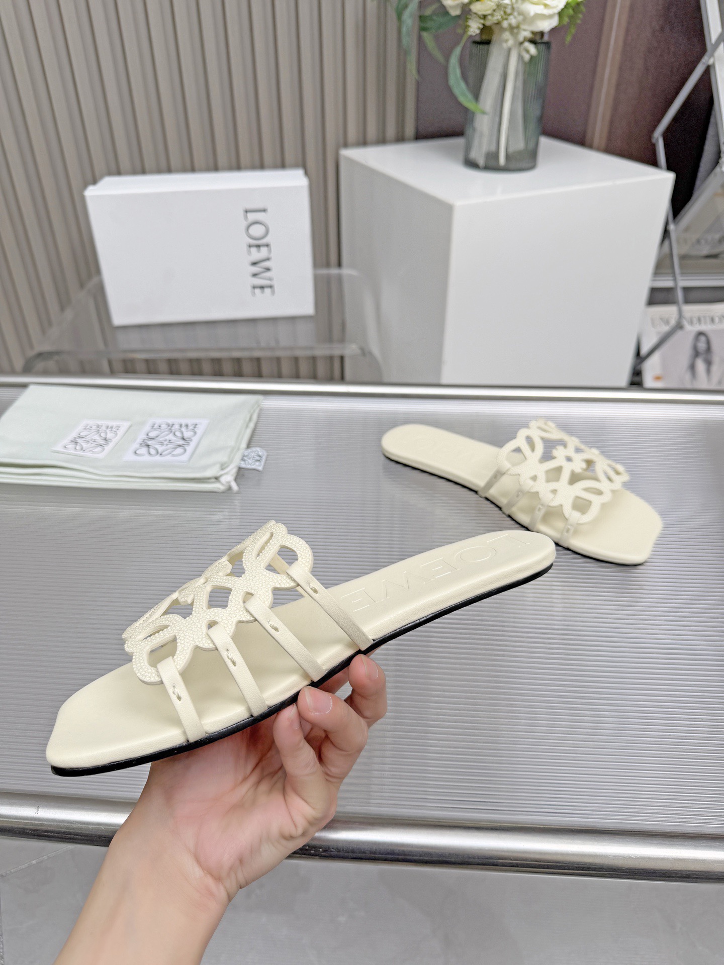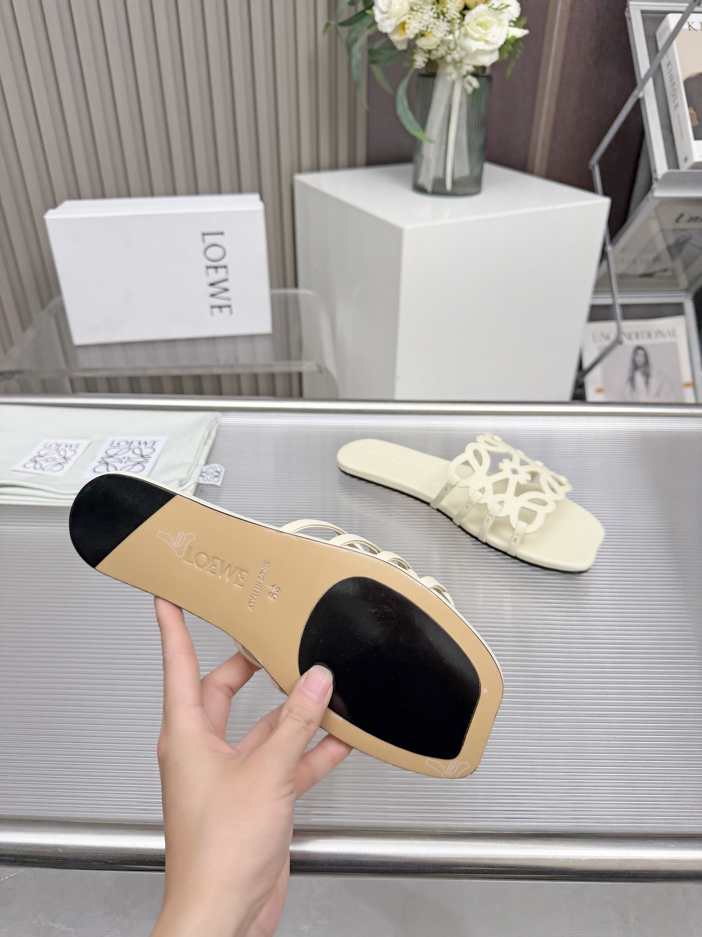 這款鞋子是AAAAA 1:1 質量(非常棒). 使用了和原版一模一樣的材料. 商標部分也保持了和Loewe一樣. 圖片拍攝是實物鞋子拍攝, 您所收到的實物保證和我們圖片一模一樣.