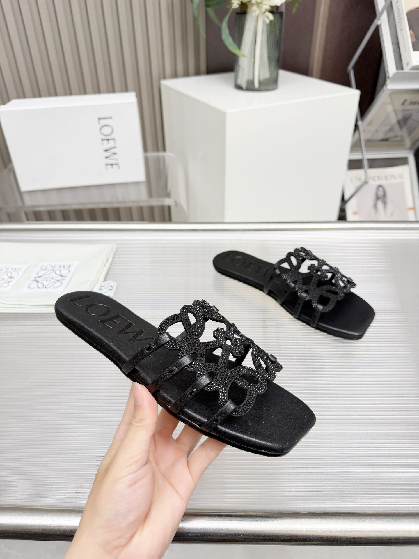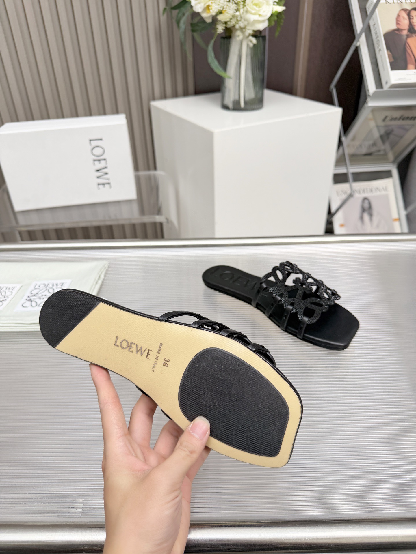 這款鞋子是AAAAA 1:1 質量(非常棒). 使用了和原版一模一樣的材料. 商標部分也保持了和Loewe一樣. 圖片拍攝是實物鞋子拍攝, 您所收到的實物保證和我們圖片一模一樣.