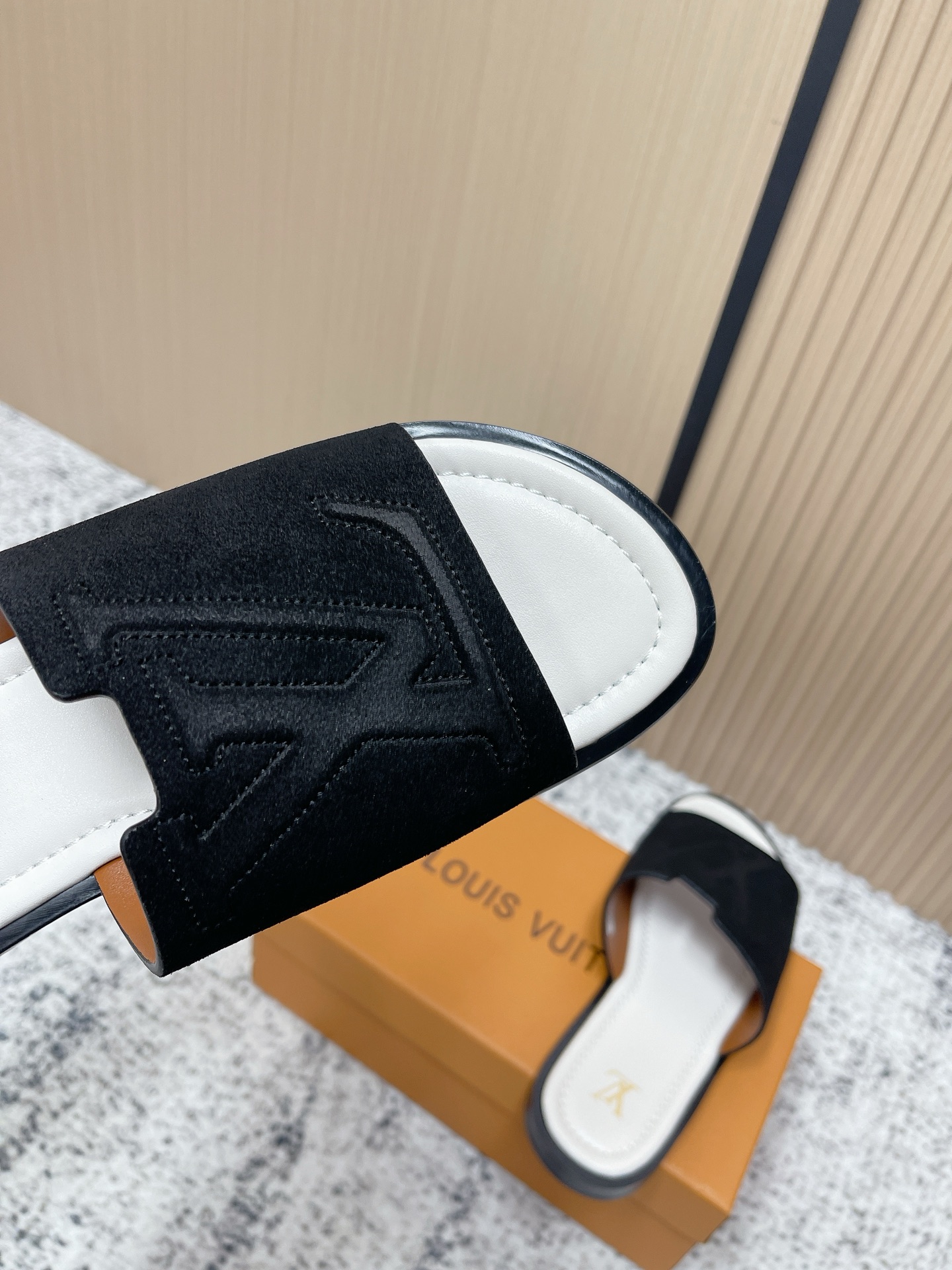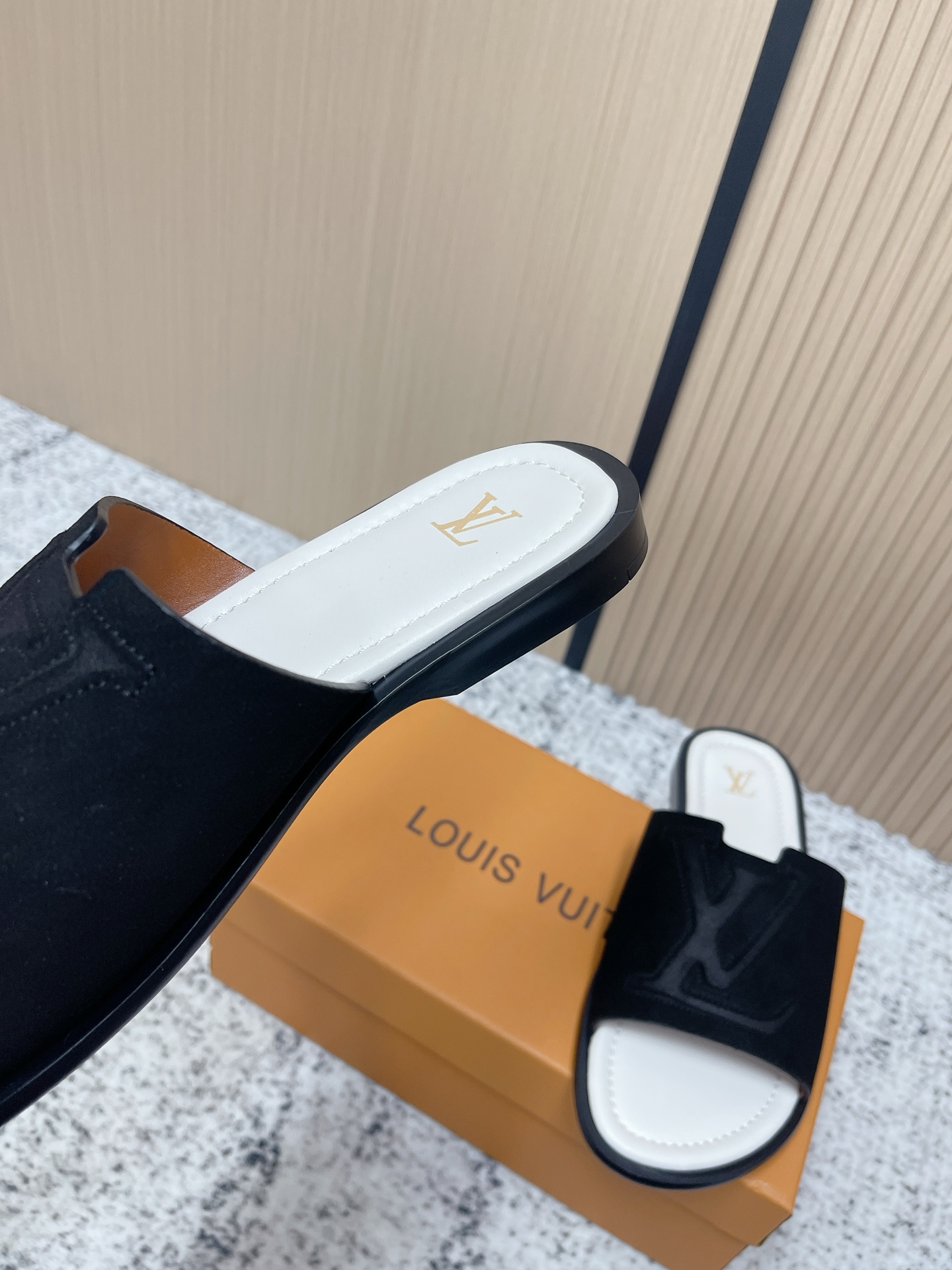 這款鞋子是AAAAA 1:1 質量(非常棒). 使用了和原版一模一樣的材料. 商標部分也保持了和路易威登/Louis Vuitton一樣. 圖片拍攝是實物鞋子拍攝, 您所收到的實物保證和我們圖片一模一樣.