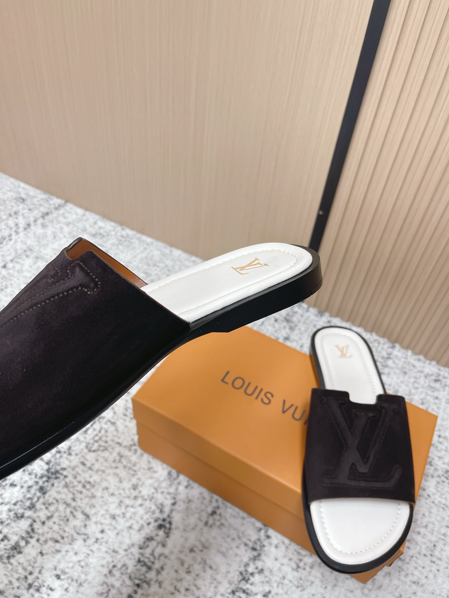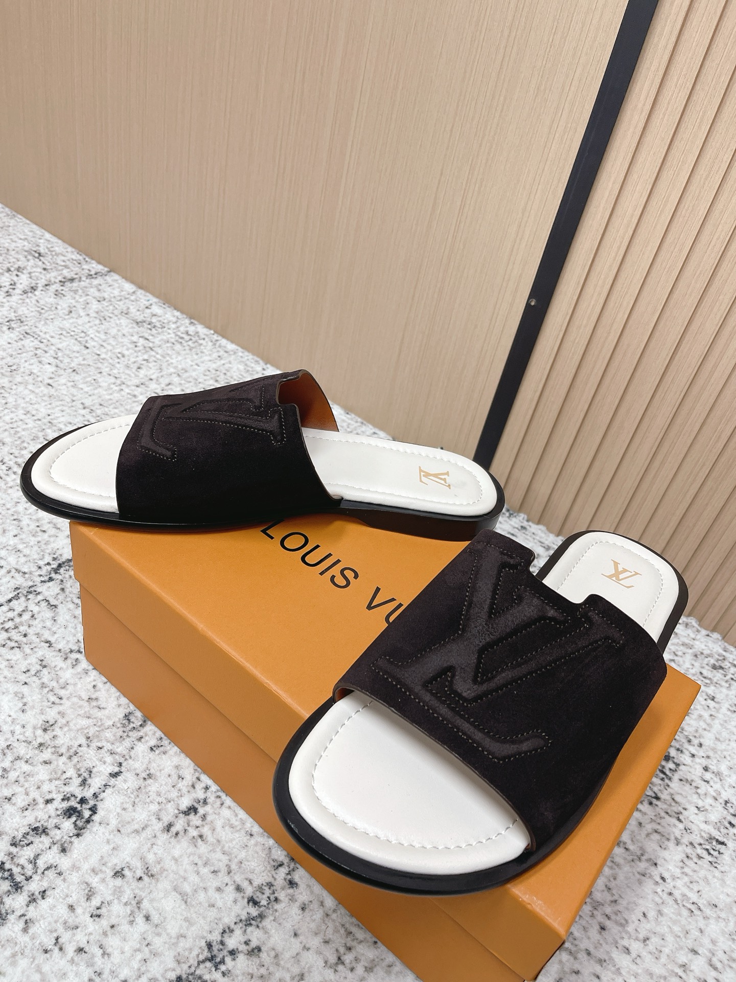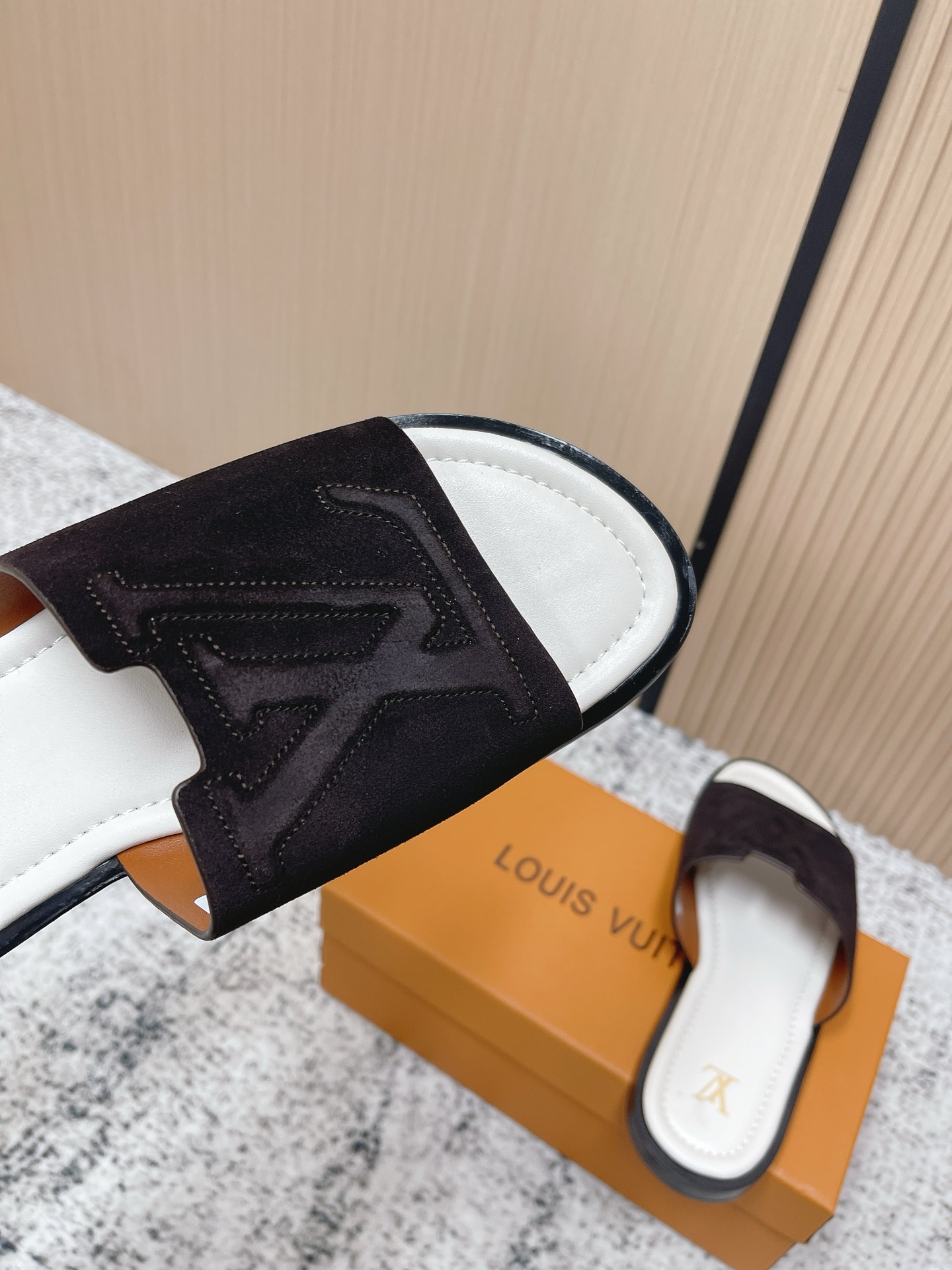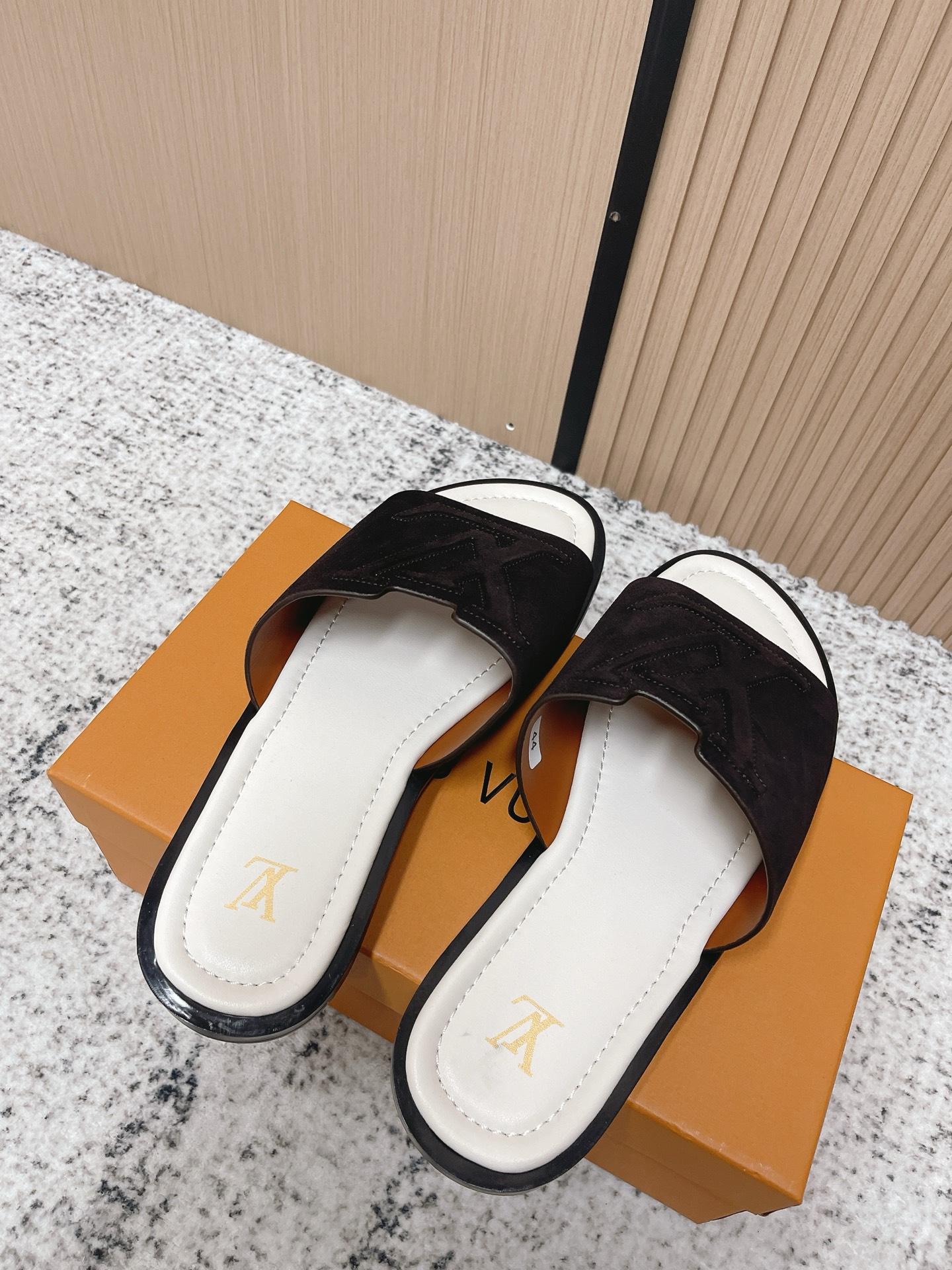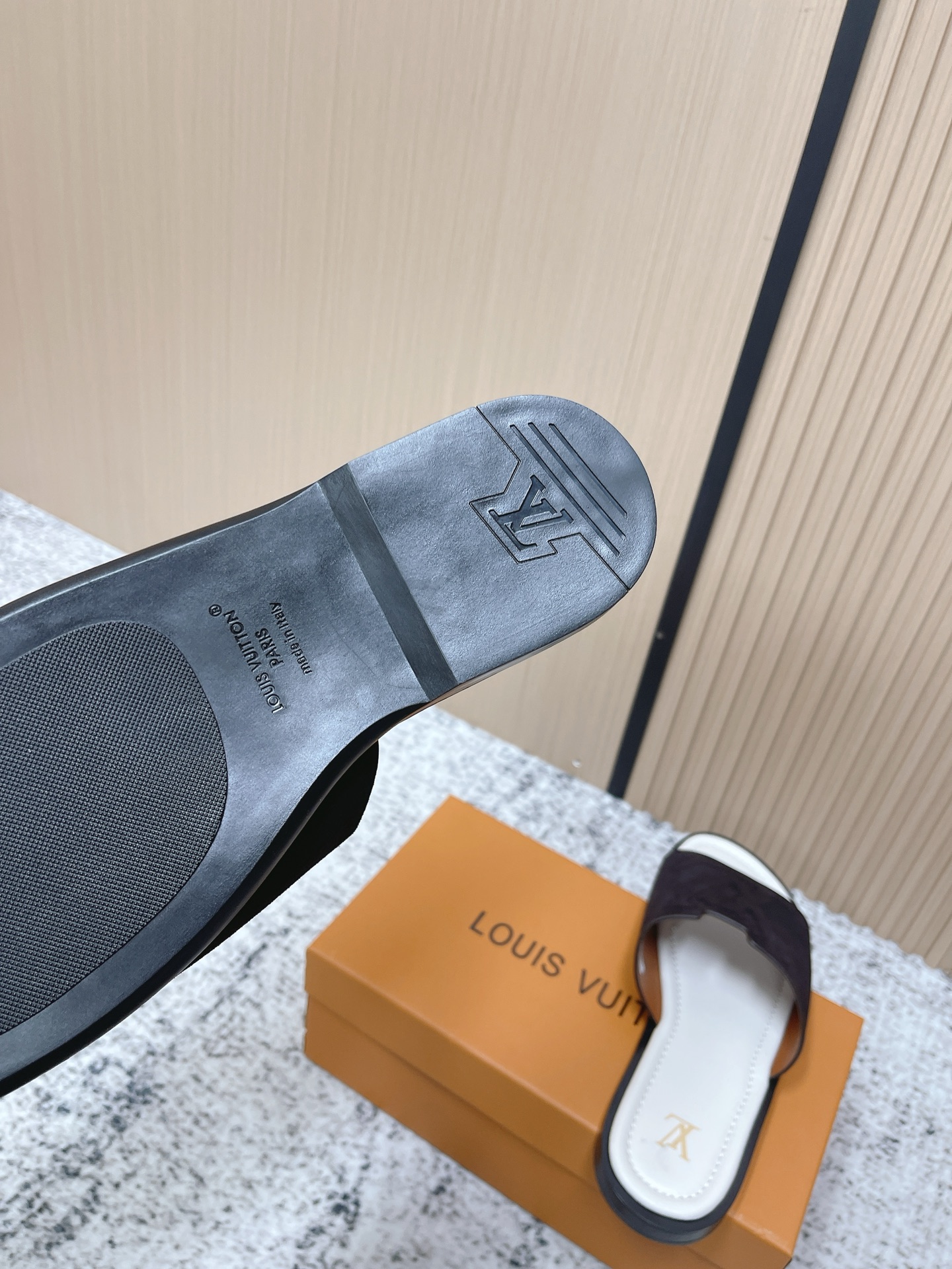 這款鞋子是AAAAA 1:1 質量(非常棒). 使用了和原版一模一樣的材料. 商標部分也保持了和路易威登/Louis Vuitton一樣. 圖片拍攝是實物鞋子拍攝, 您所收到的實物保證和我們圖片一模一樣.