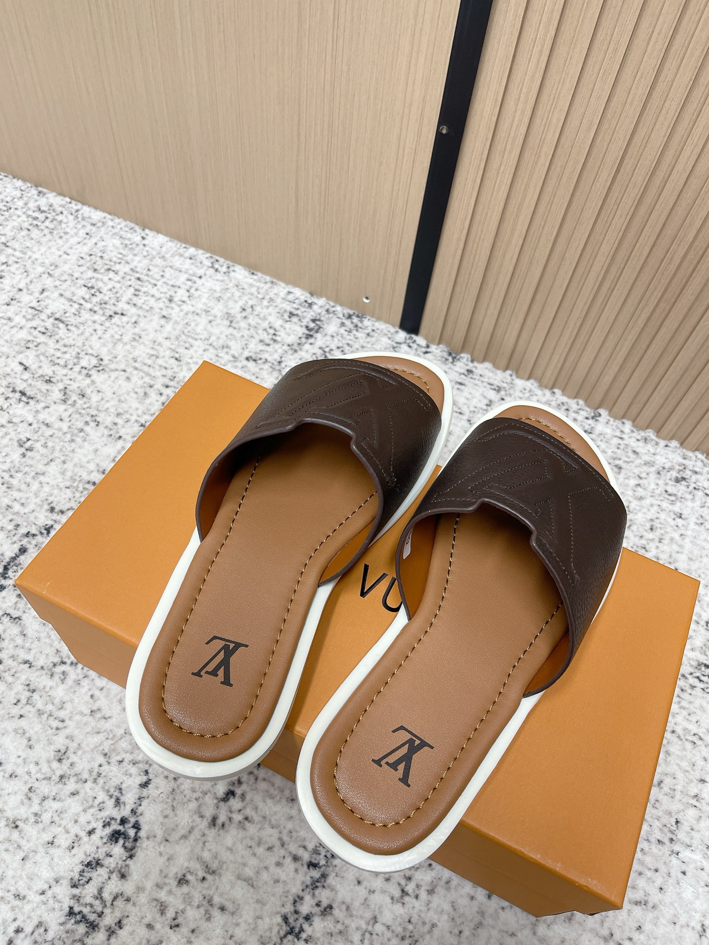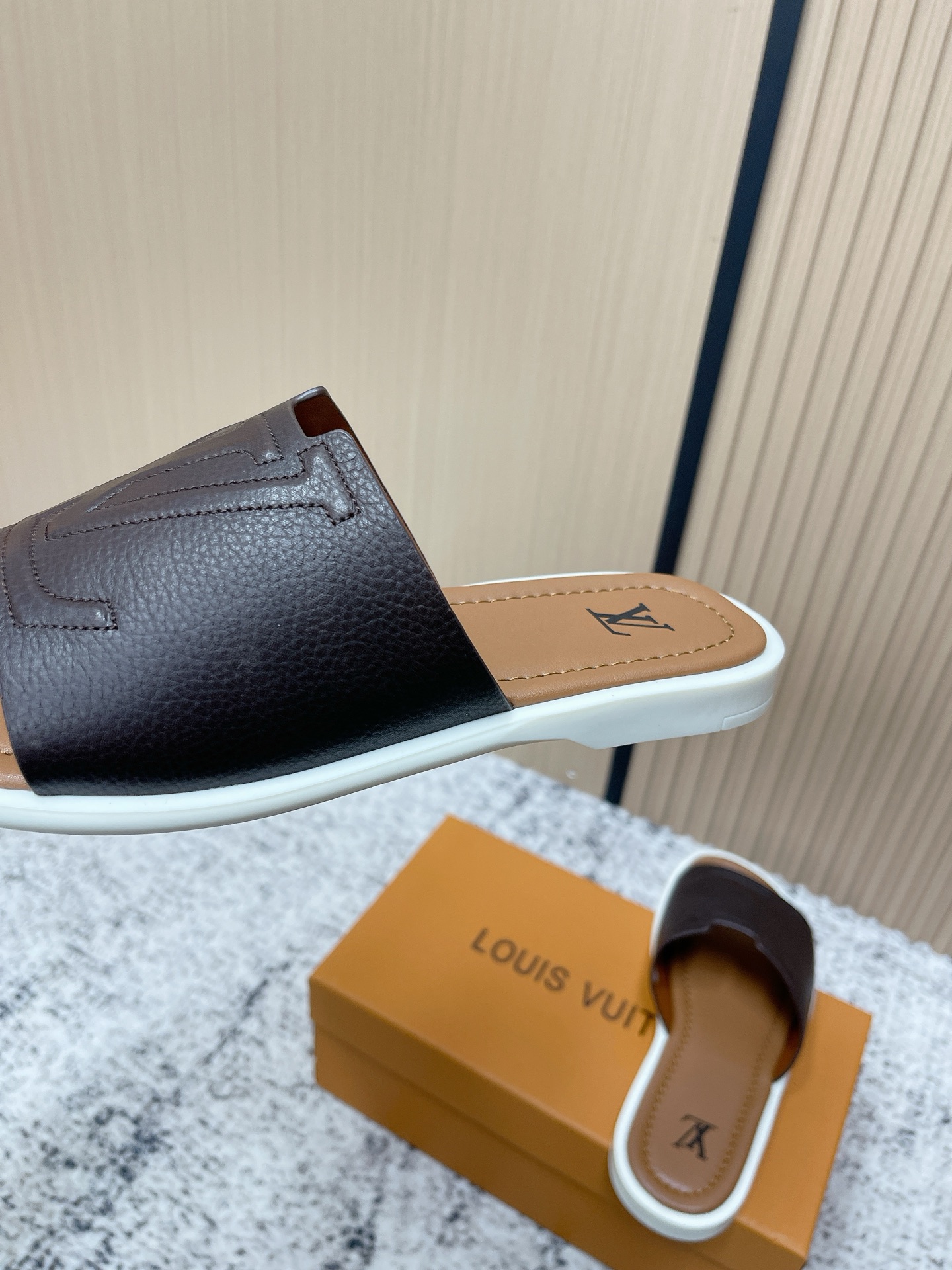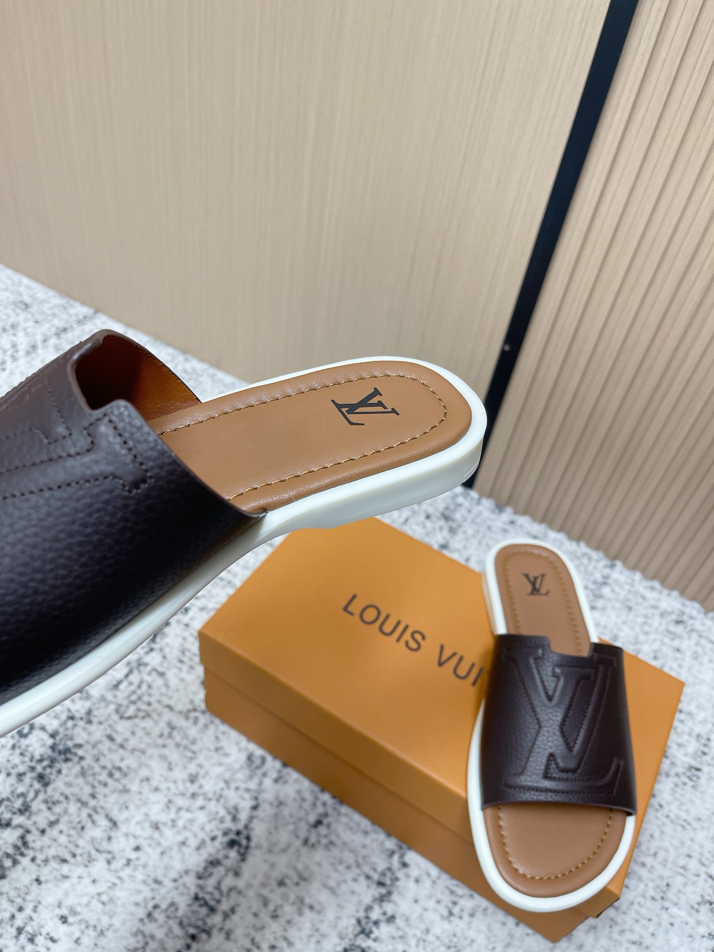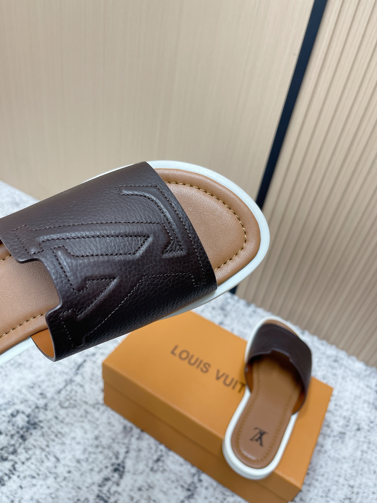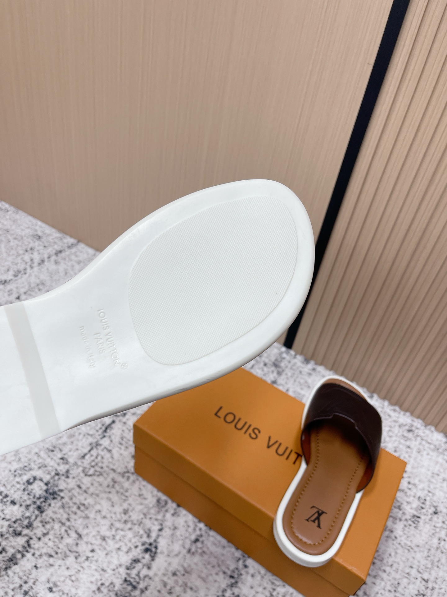 這款鞋子是AAAAA 1:1 質量(非常棒). 使用了和原版一模一樣的材料. 商標部分也保持了和路易威登/Louis Vuitton一樣. 圖片拍攝是實物鞋子拍攝, 您所收到的實物保證和我們圖片一模一樣.