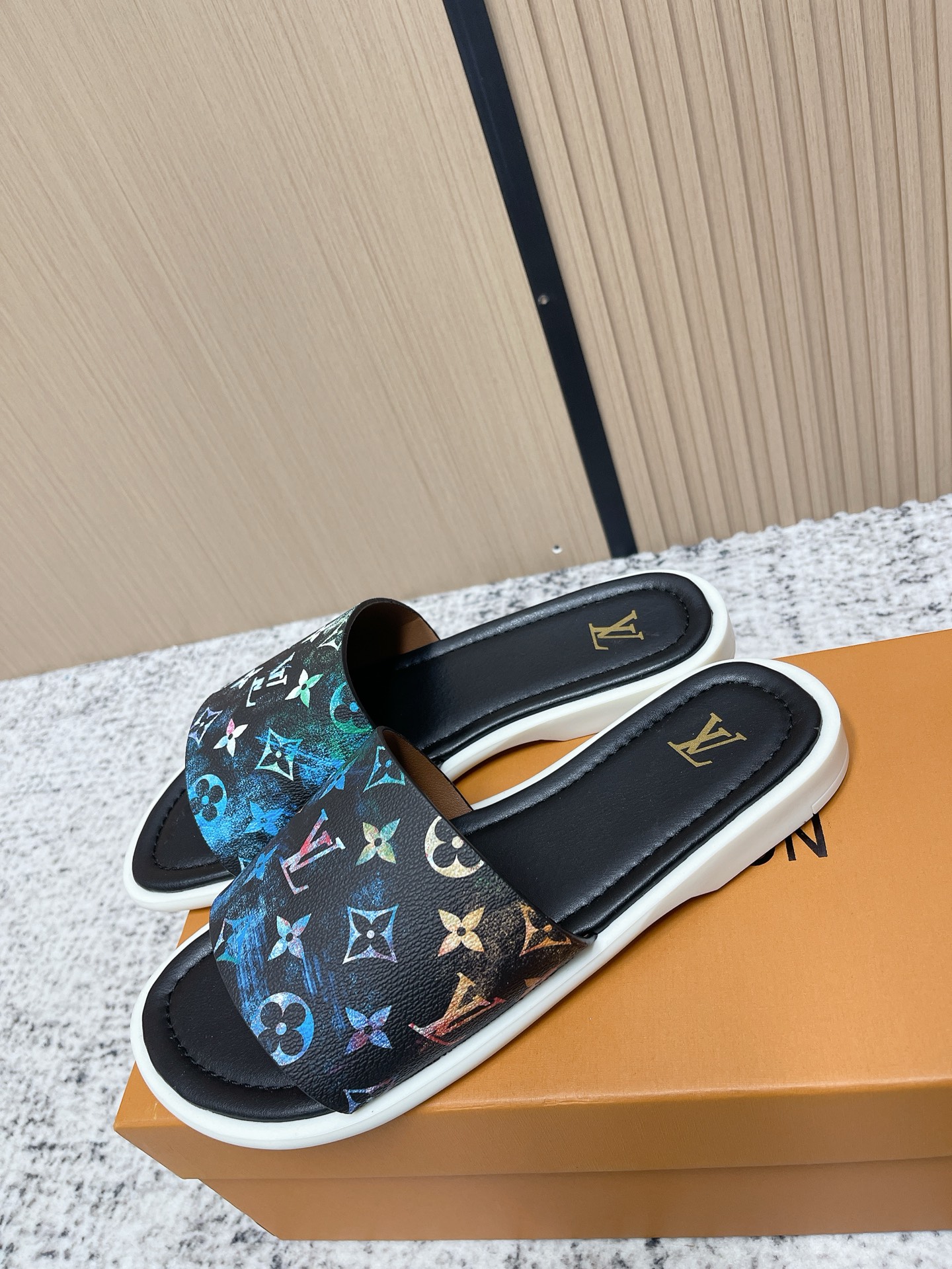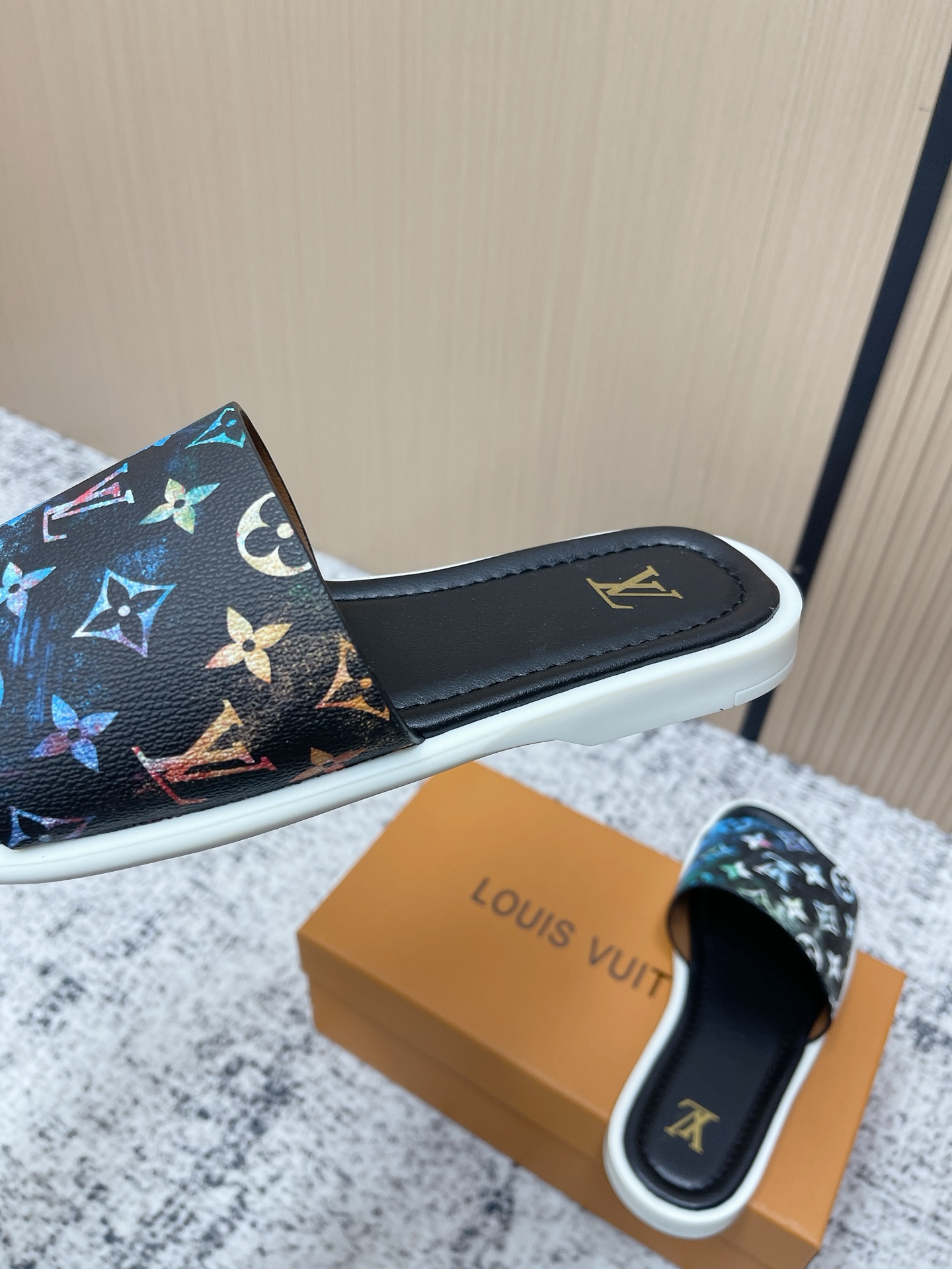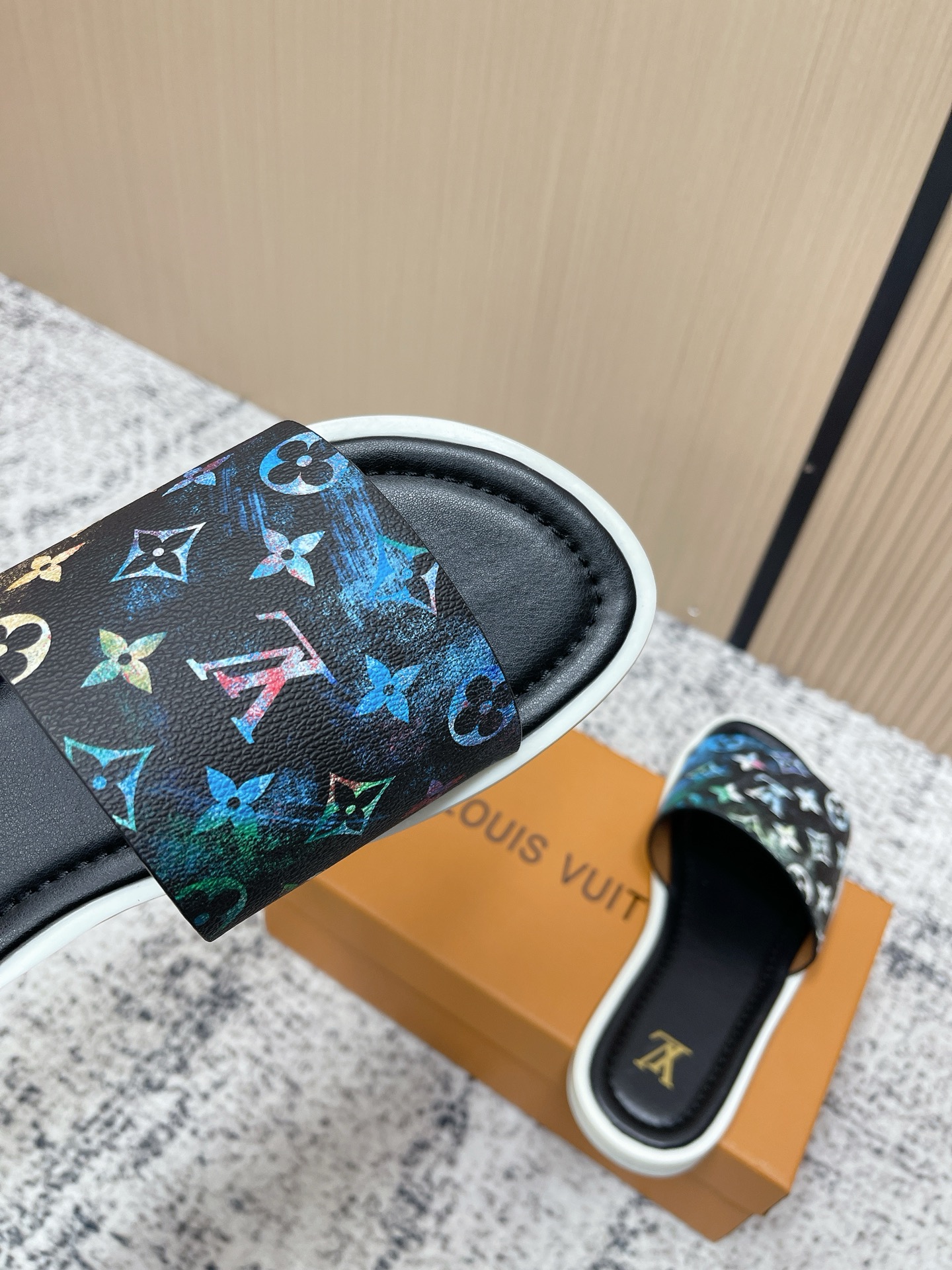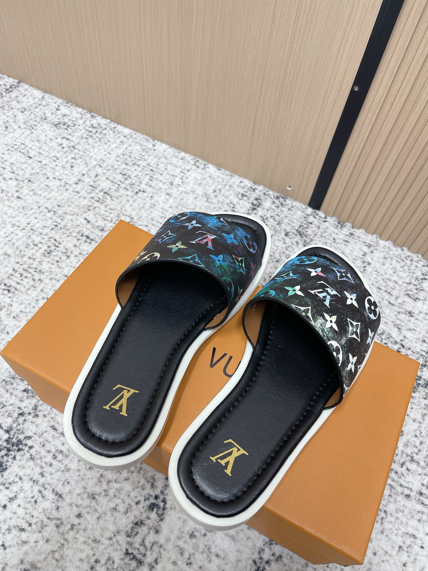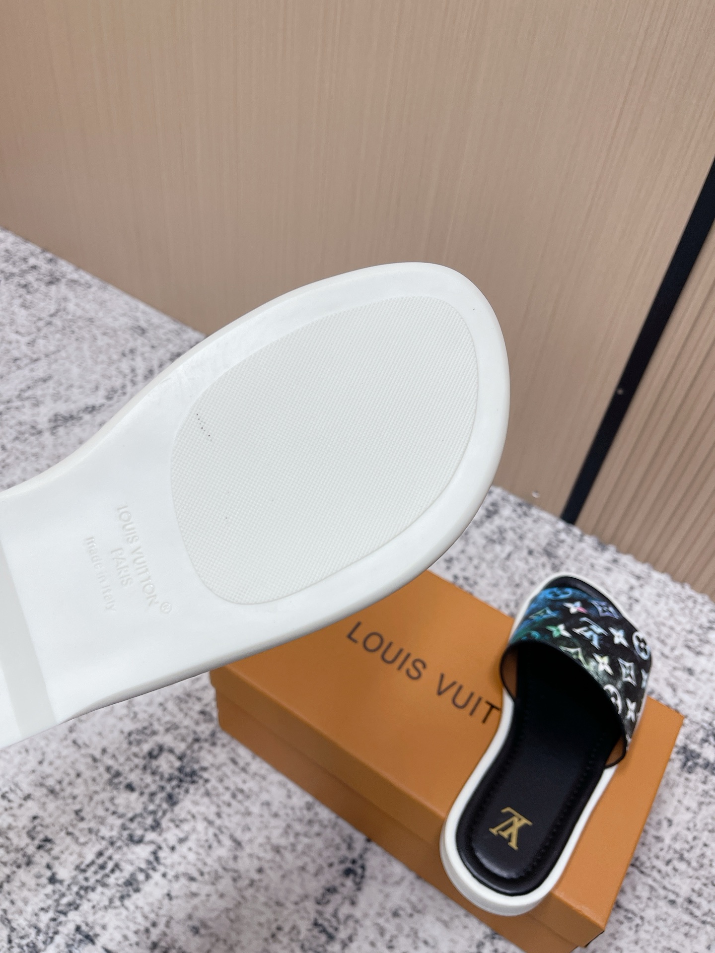 這款鞋子是AAAAA 1:1 質量(非常棒). 使用了和原版一模一樣的材料. 商標部分也保持了和路易威登/Louis Vuitton一樣. 圖片拍攝是實物鞋子拍攝, 您所收到的實物保證和我們圖片一模一樣.