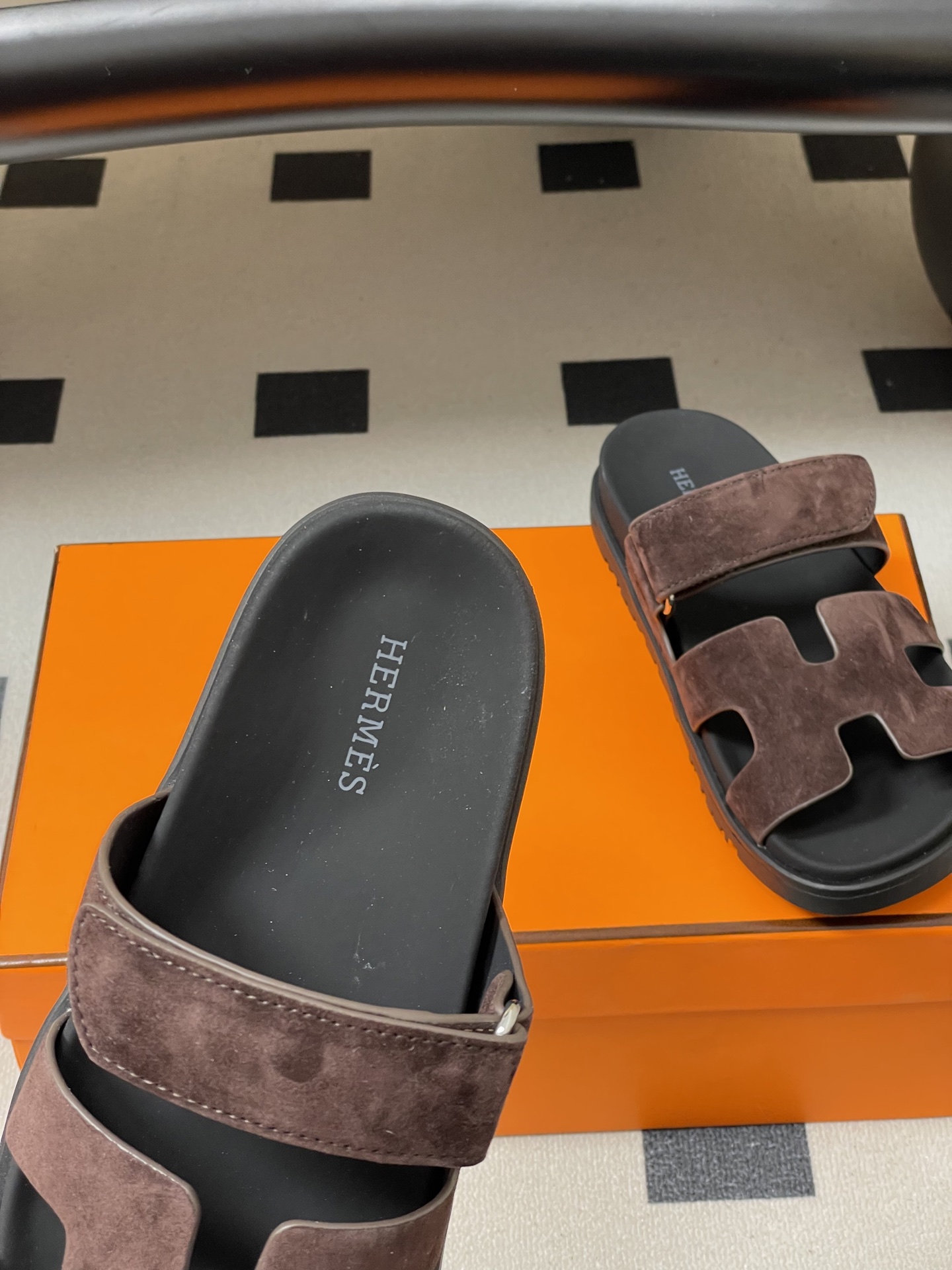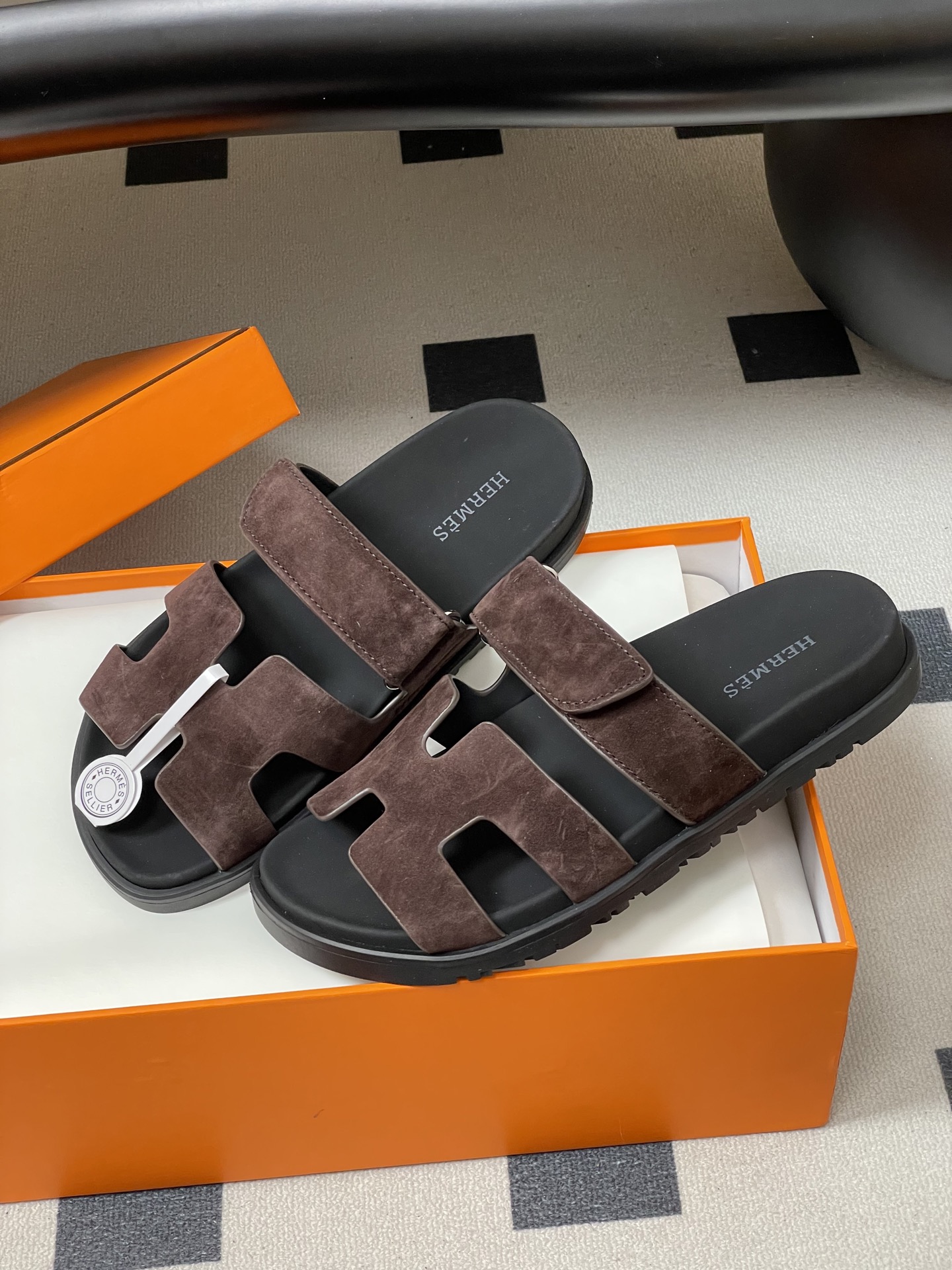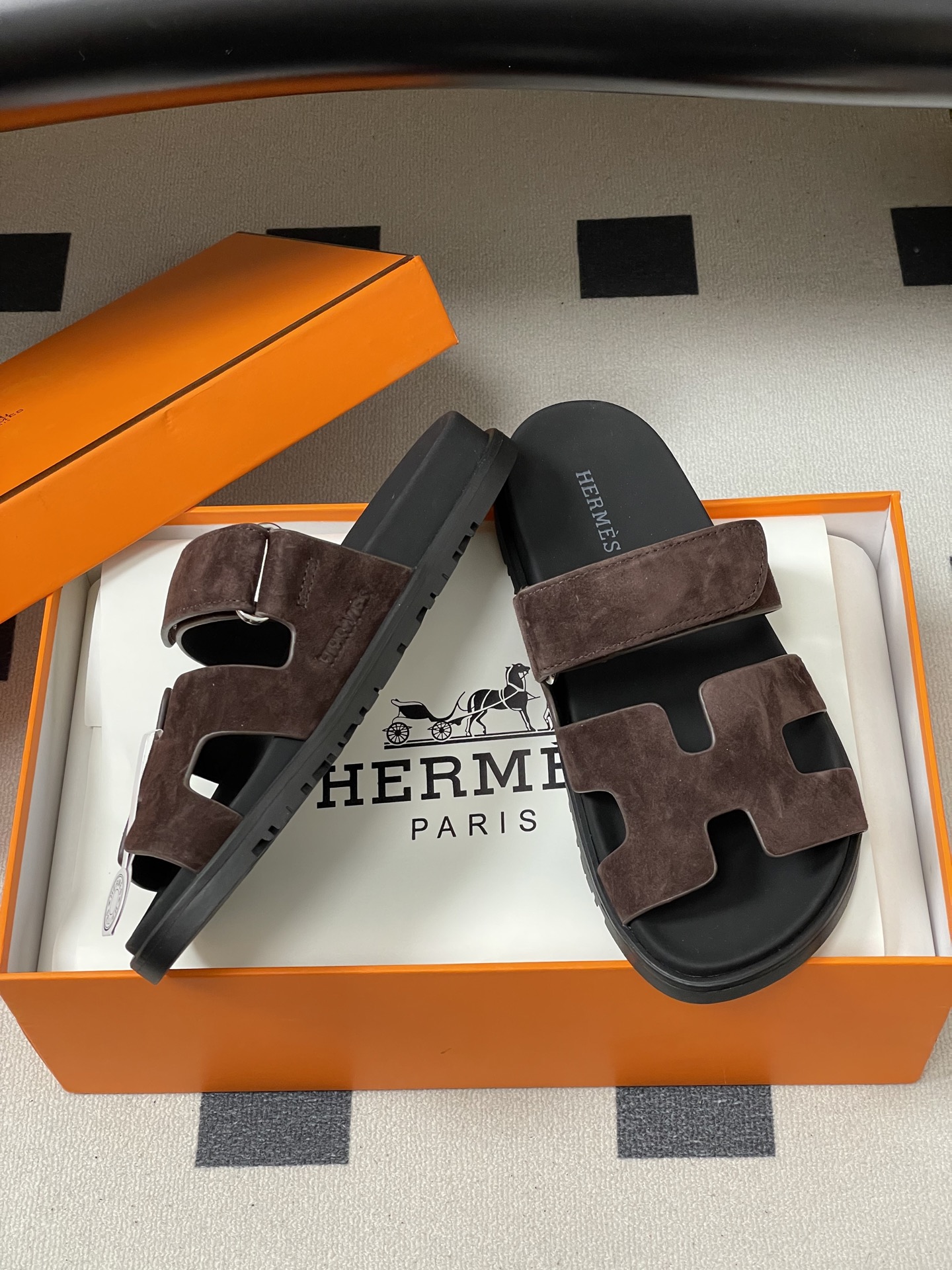 這款鞋子是AAAAA 1:1 質量(非常棒). 使用了和原版一模一樣的材料. 商標部分也保持了和愛馬仕/Hermes一樣. 圖片拍攝是實物鞋子拍攝, 您所收到的實物保證和我們圖片一模一樣.