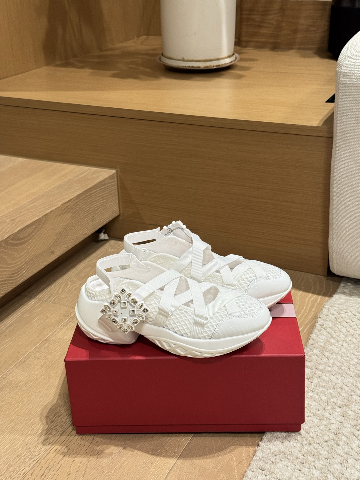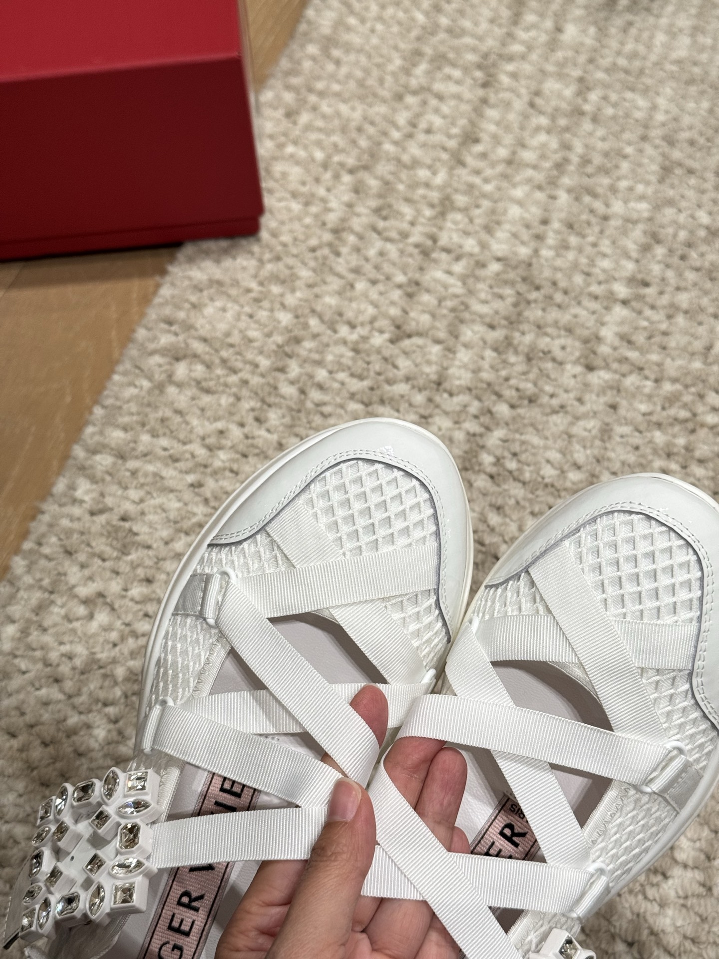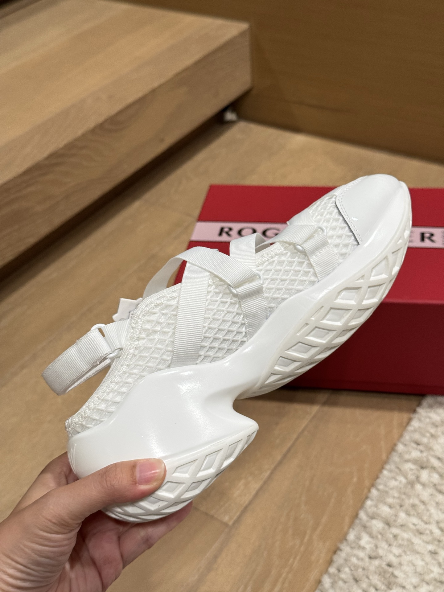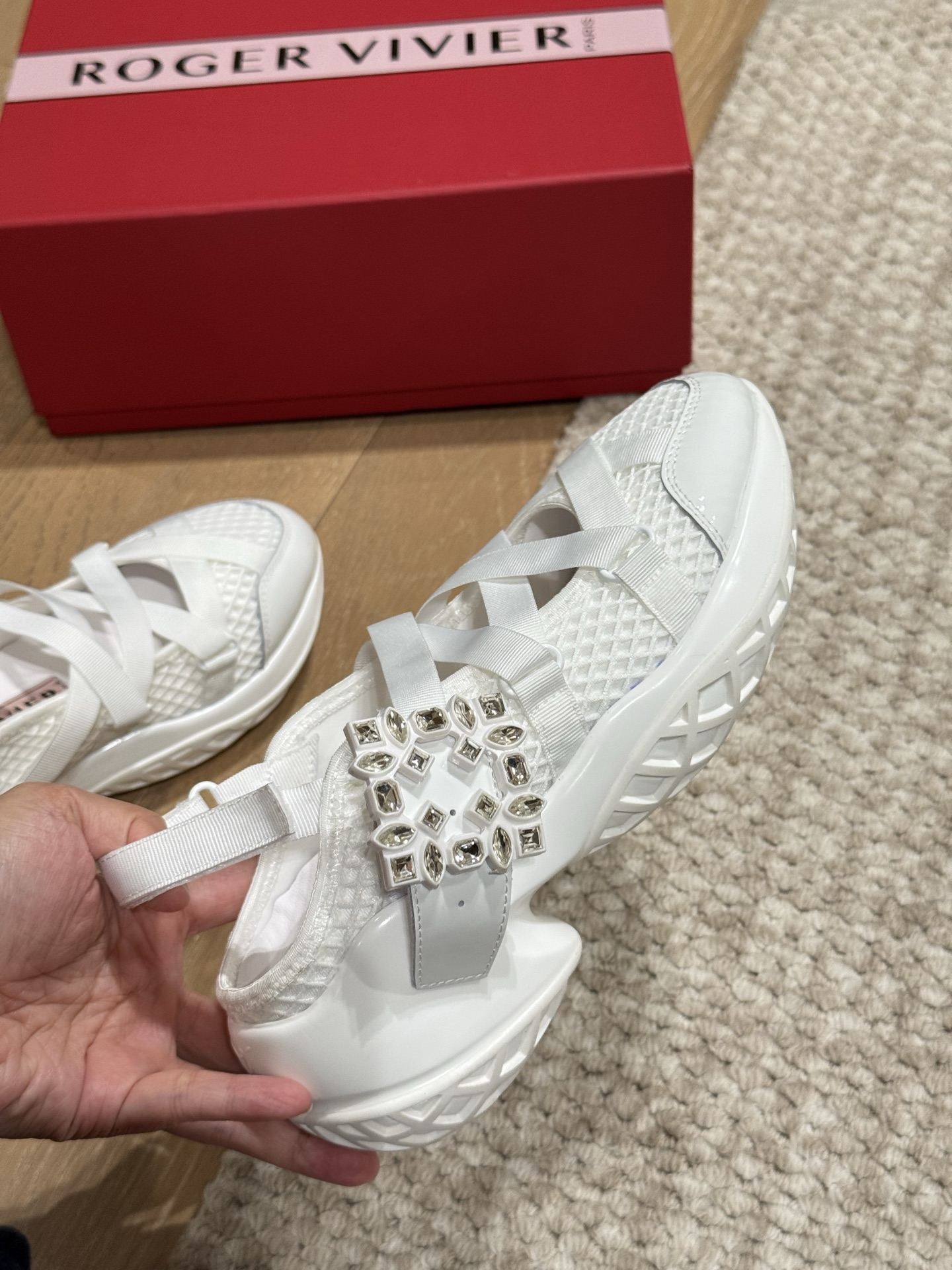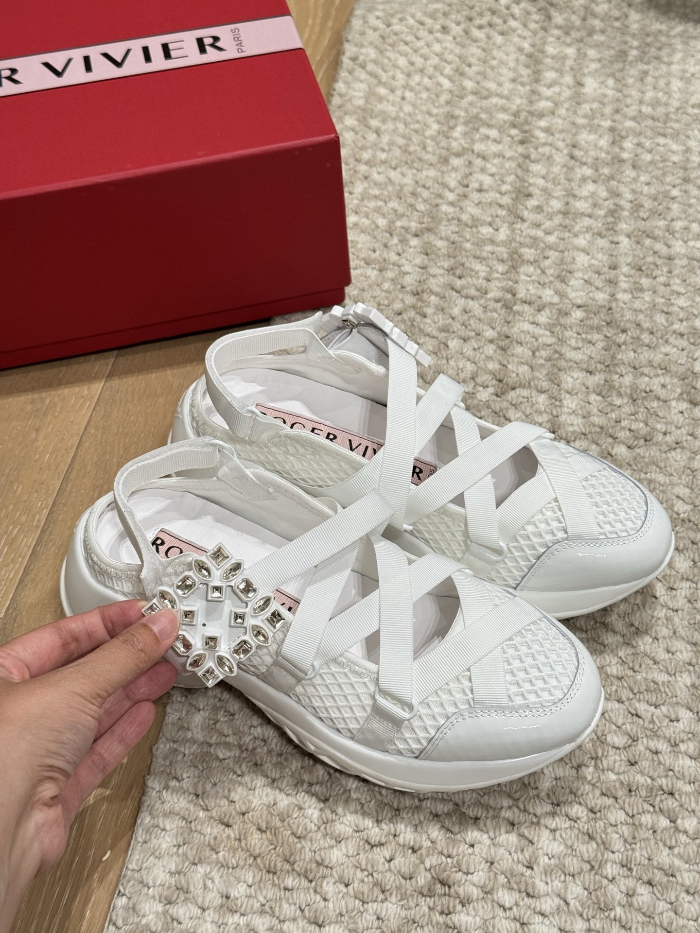 這款鞋子是AAAAA 1:1 質量(非常棒). 使用了和原版一模一樣的材料. 商標部分也保持了和羅傑維維耶/Roger Vivier一樣. 圖片拍攝是實物鞋子拍攝, 您所收到的實物保證和我們圖片一模一樣.