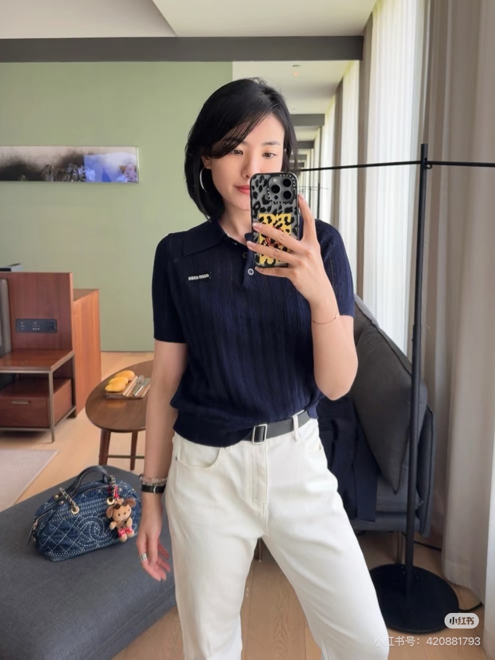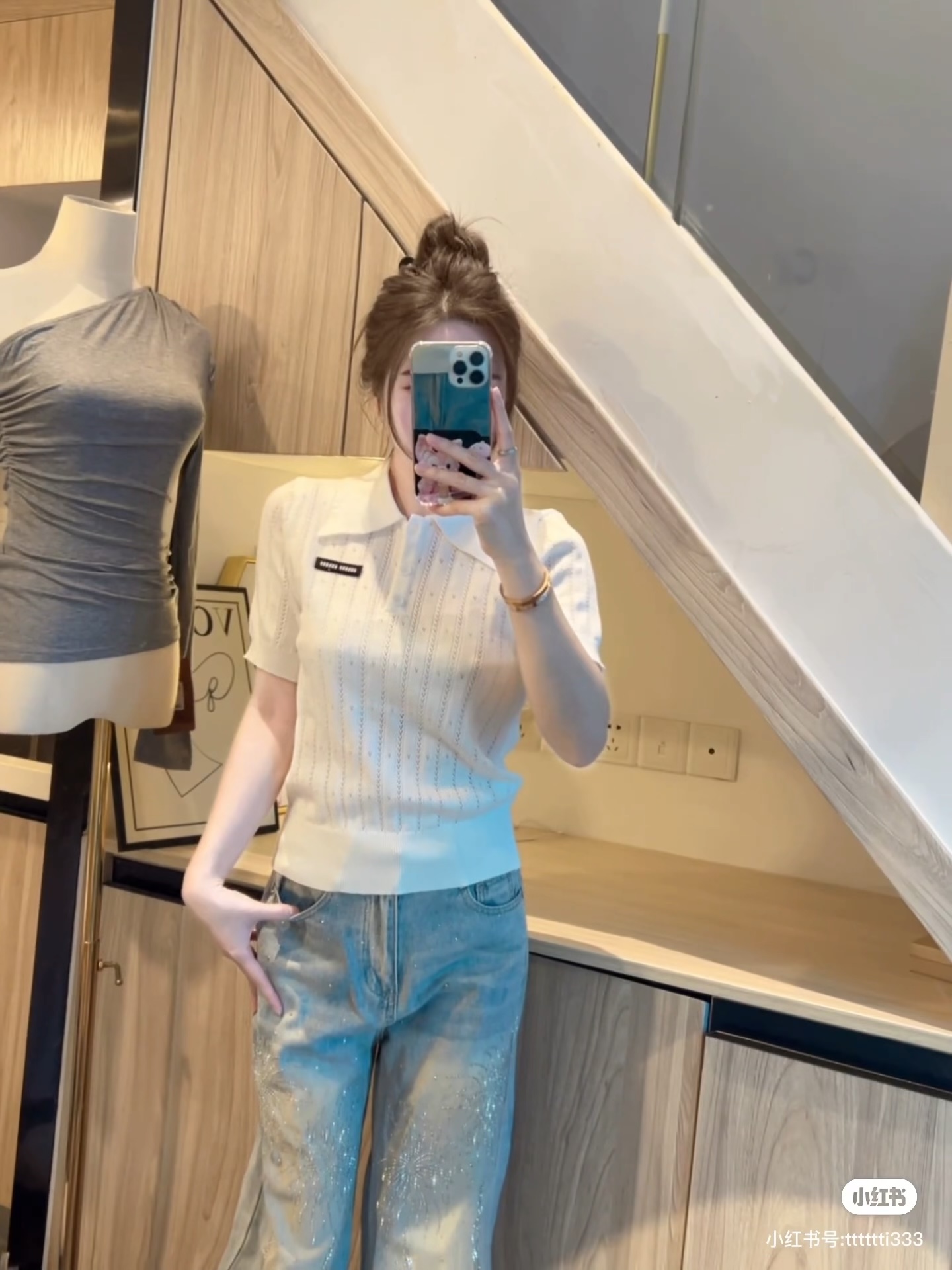 這款衣服是AAAAA 1:1 質量(非常棒). 使用了和原版一模一樣的材料. 商標部分也保持了和繆繆/Miu Miu一樣. 圖片拍攝是實物衣服拍攝, 您所收到的實物保證和我們圖片一模一樣.