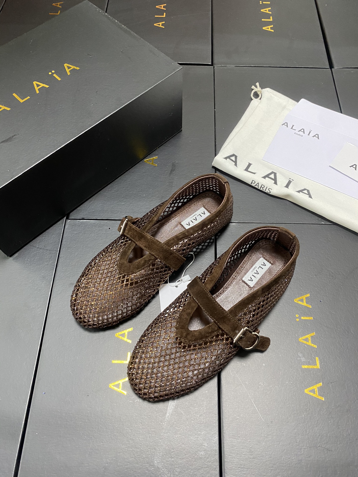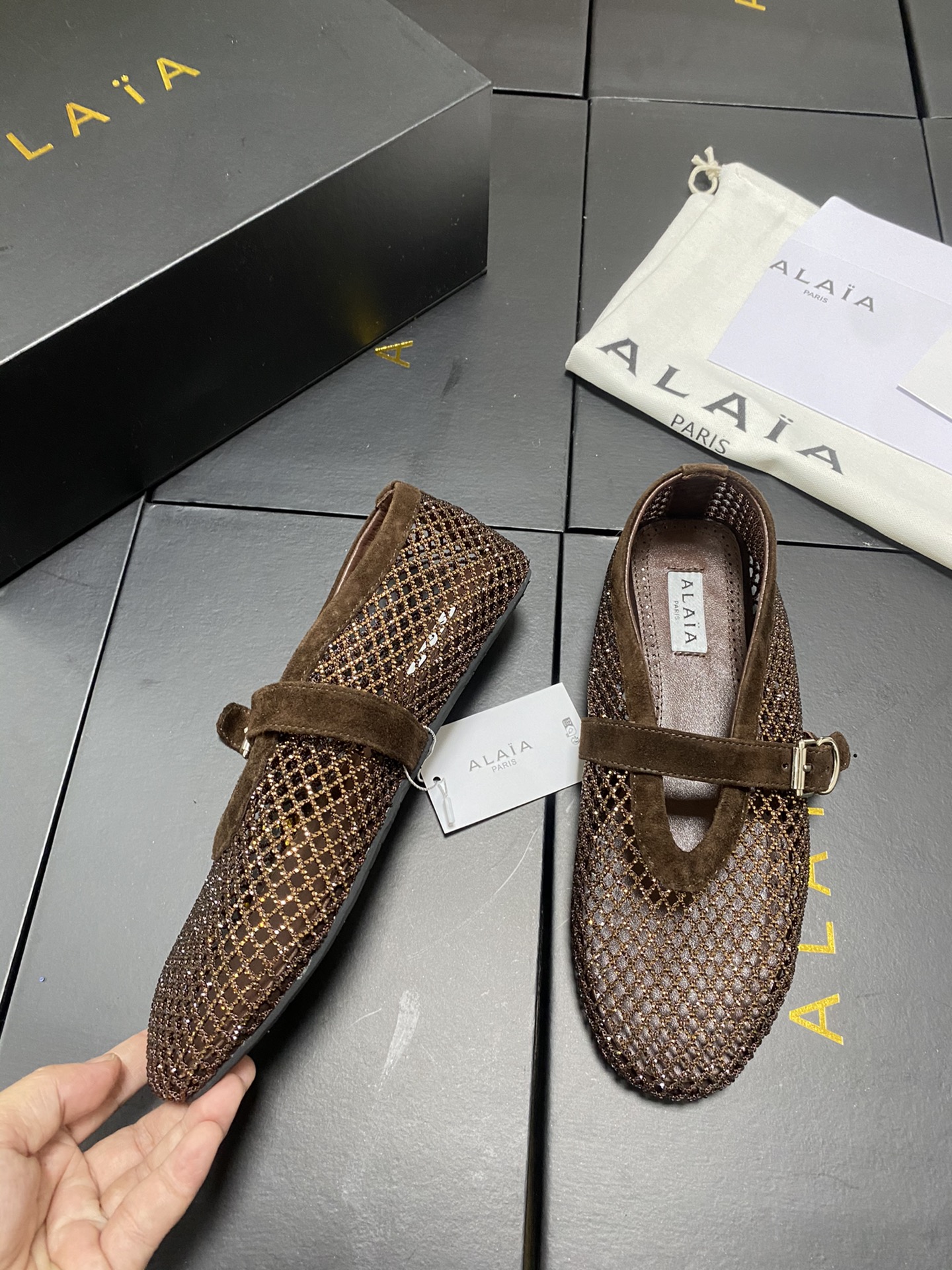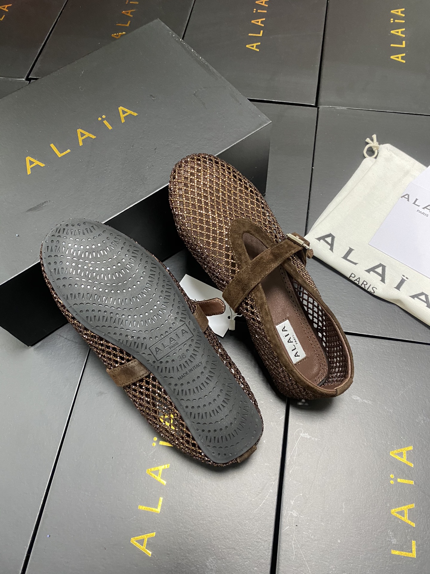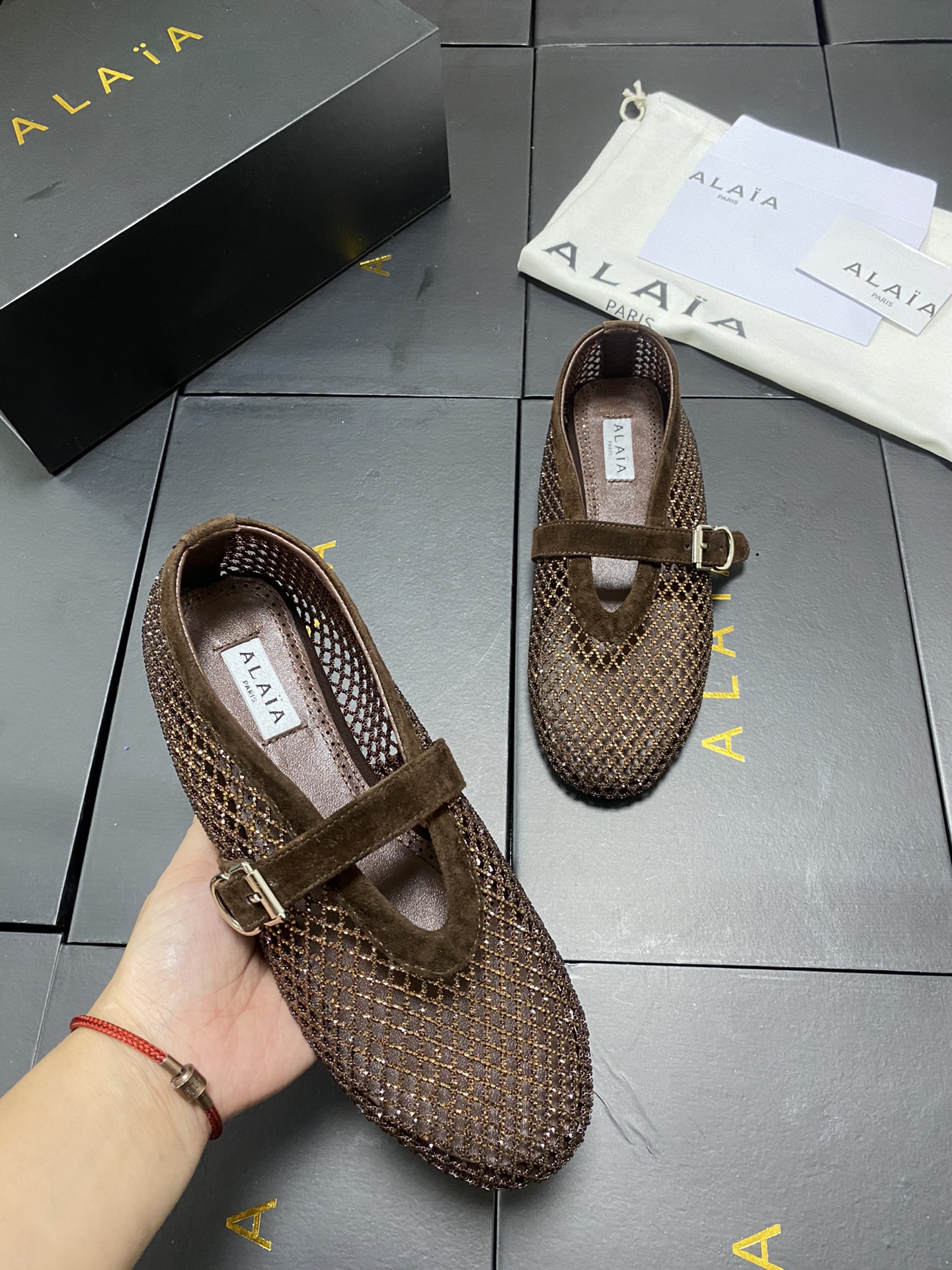 這款鞋子是AAAAA 1:1 質量(非常棒). 使用了和原版一模一樣的材料. 商標部分也保持了和Alaia一樣. 圖片拍攝是實物鞋子拍攝, 您所收到的實物保證和我們圖片一模一樣.