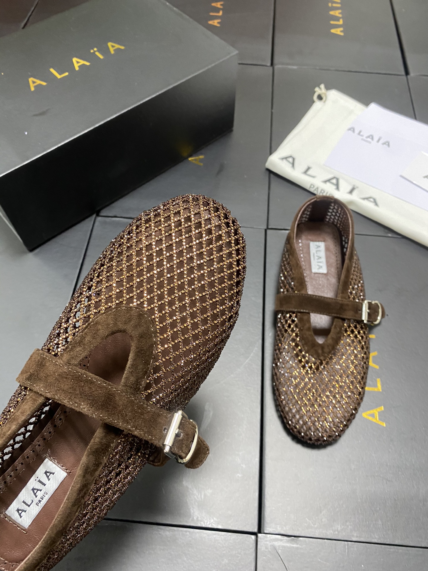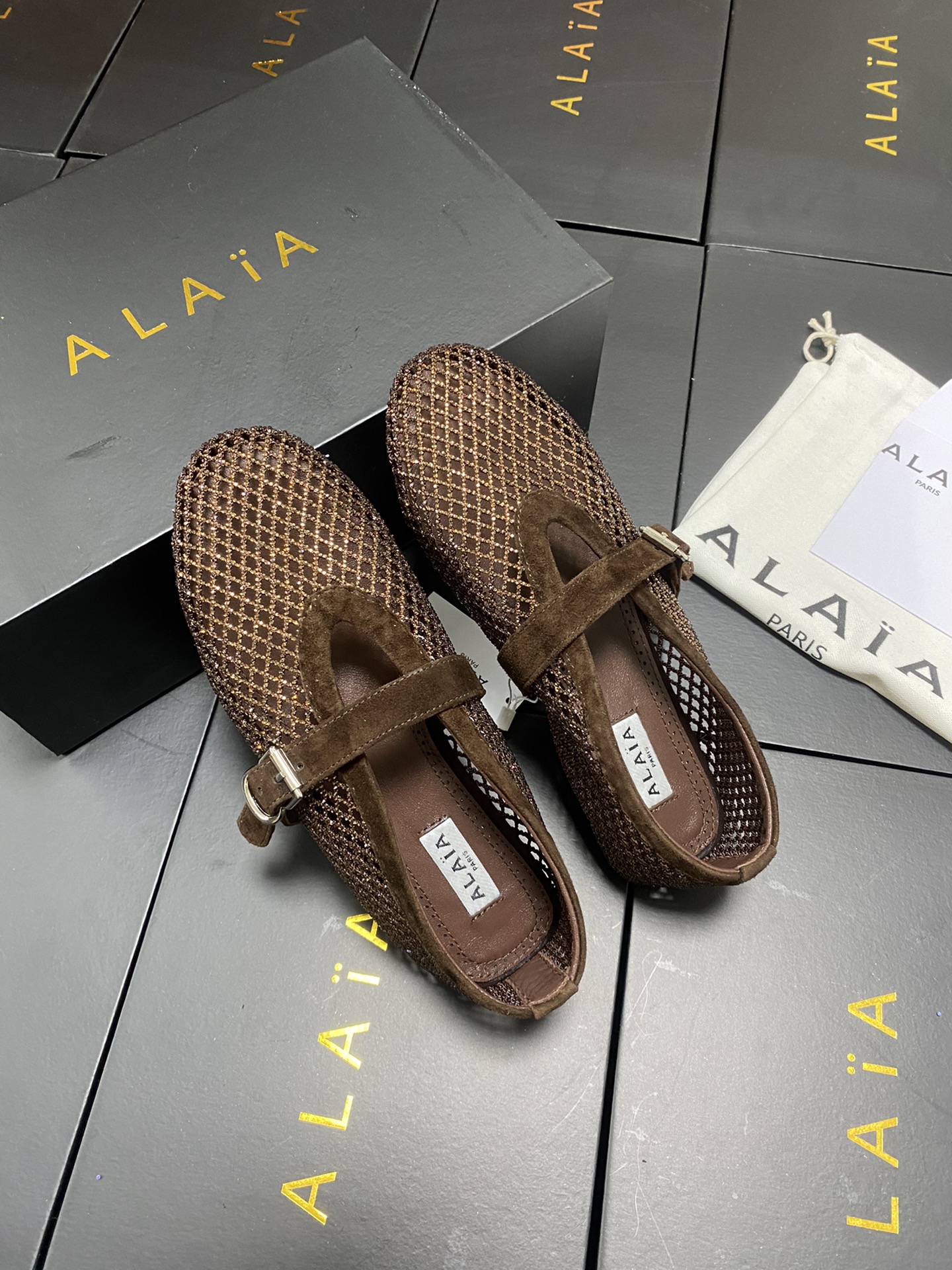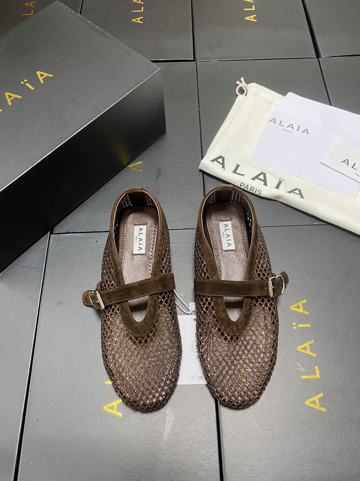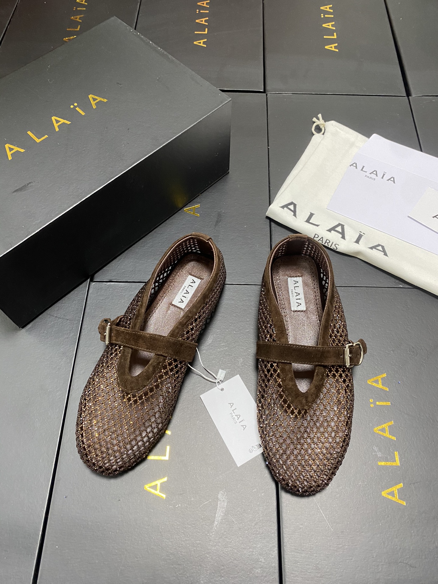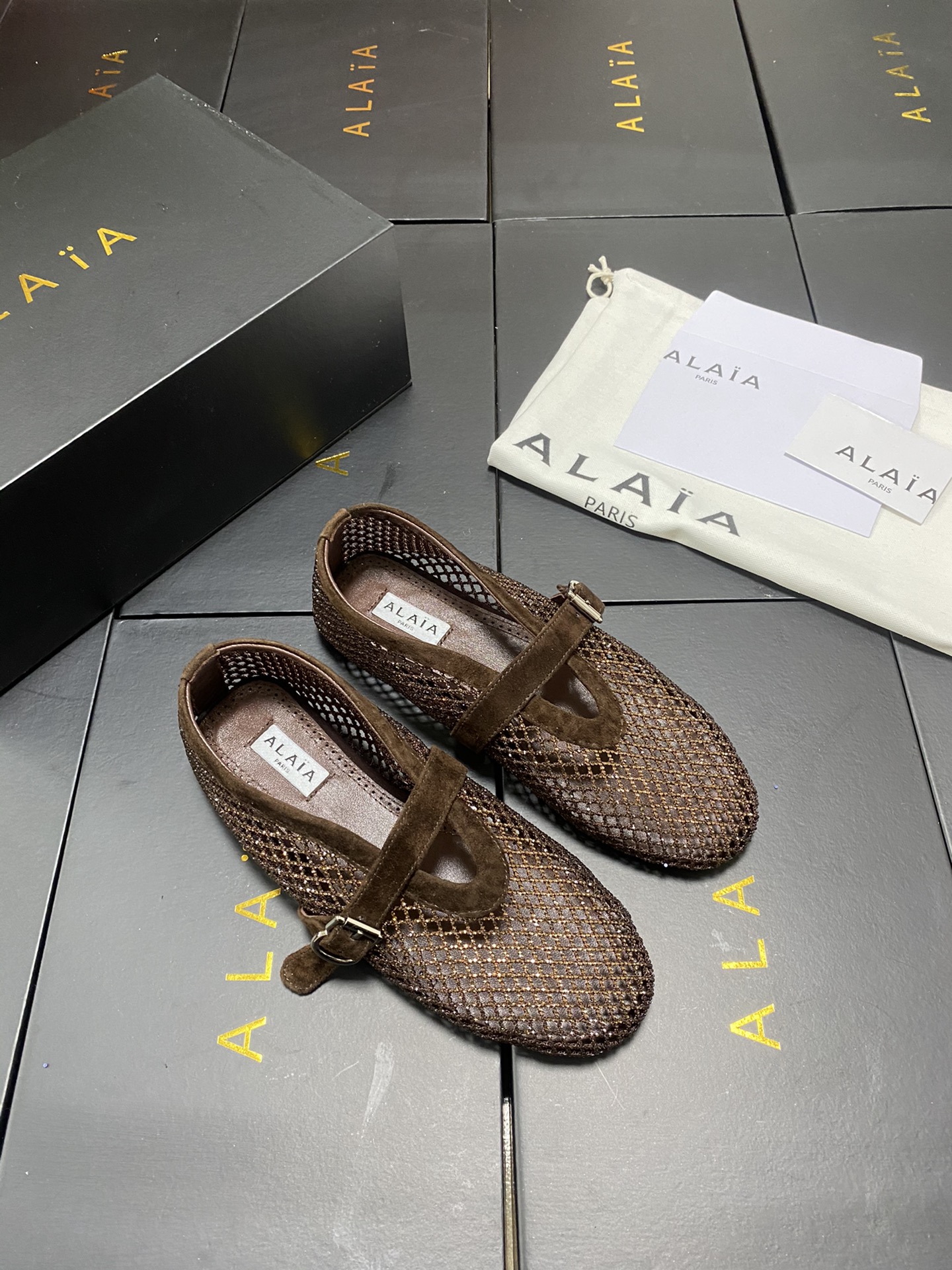 這款鞋子是AAAAA 1:1 質量(非常棒). 使用了和原版一模一樣的材料. 商標部分也保持了和Alaia一樣. 圖片拍攝是實物鞋子拍攝, 您所收到的實物保證和我們圖片一模一樣.