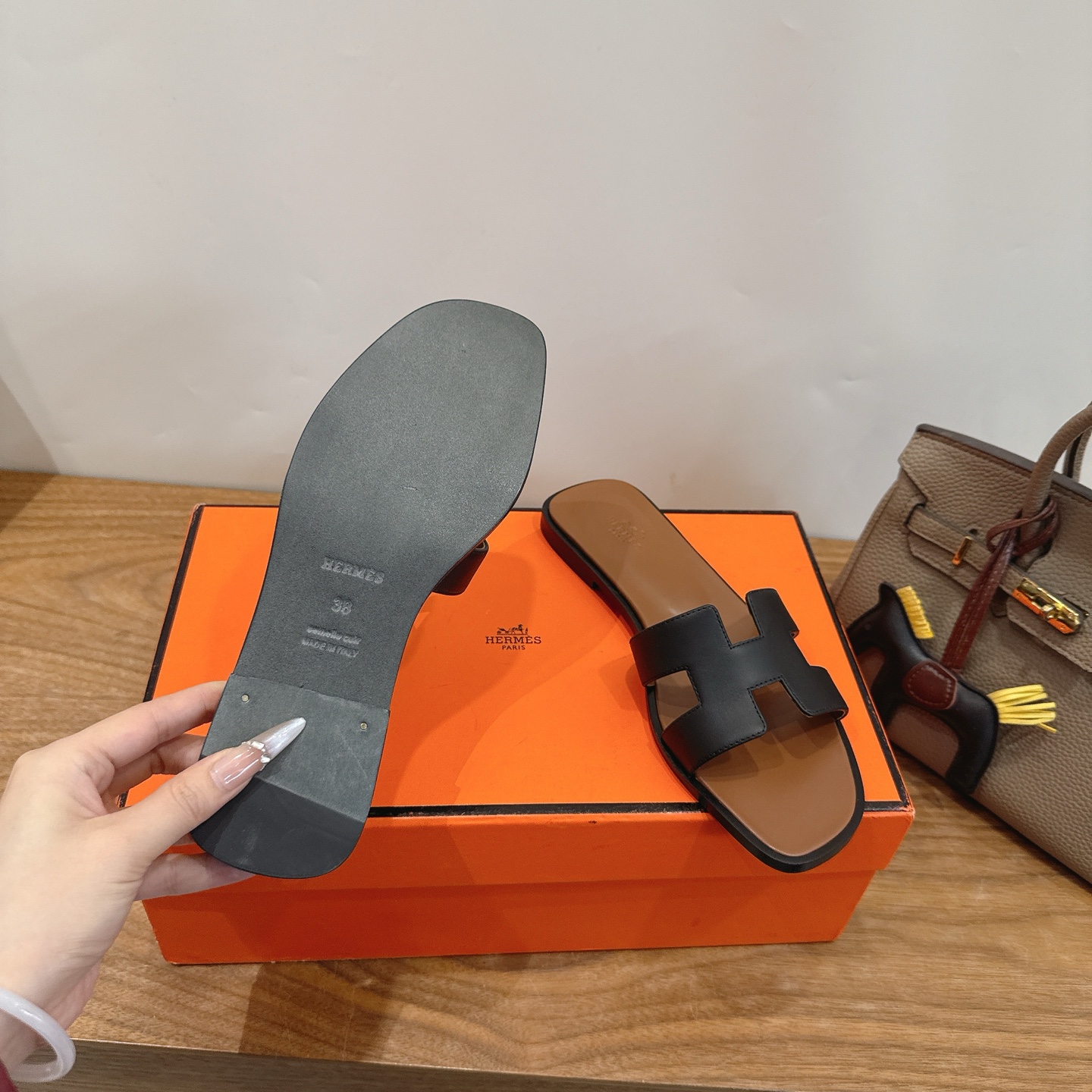 這款鞋子是AAAAA 1:1 質量(非常棒). 使用了和原版一模一樣的材料. 商標部分也保持了和愛馬仕/Hermes一樣. 圖片拍攝是實物鞋子拍攝, 您所收到的實物保證和我們圖片一模一樣.