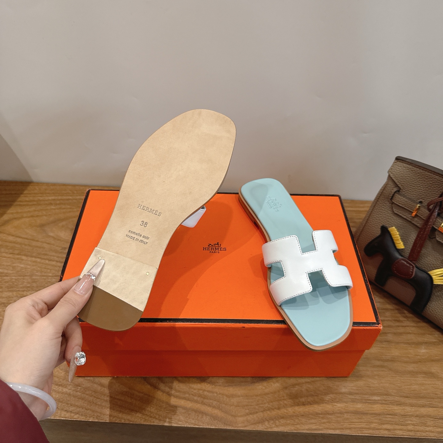 這款鞋子是AAAAA 1:1 質量(非常棒). 使用了和原版一模一樣的材料. 商標部分也保持了和愛馬仕/Hermes一樣. 圖片拍攝是實物鞋子拍攝, 您所收到的實物保證和我們圖片一模一樣.