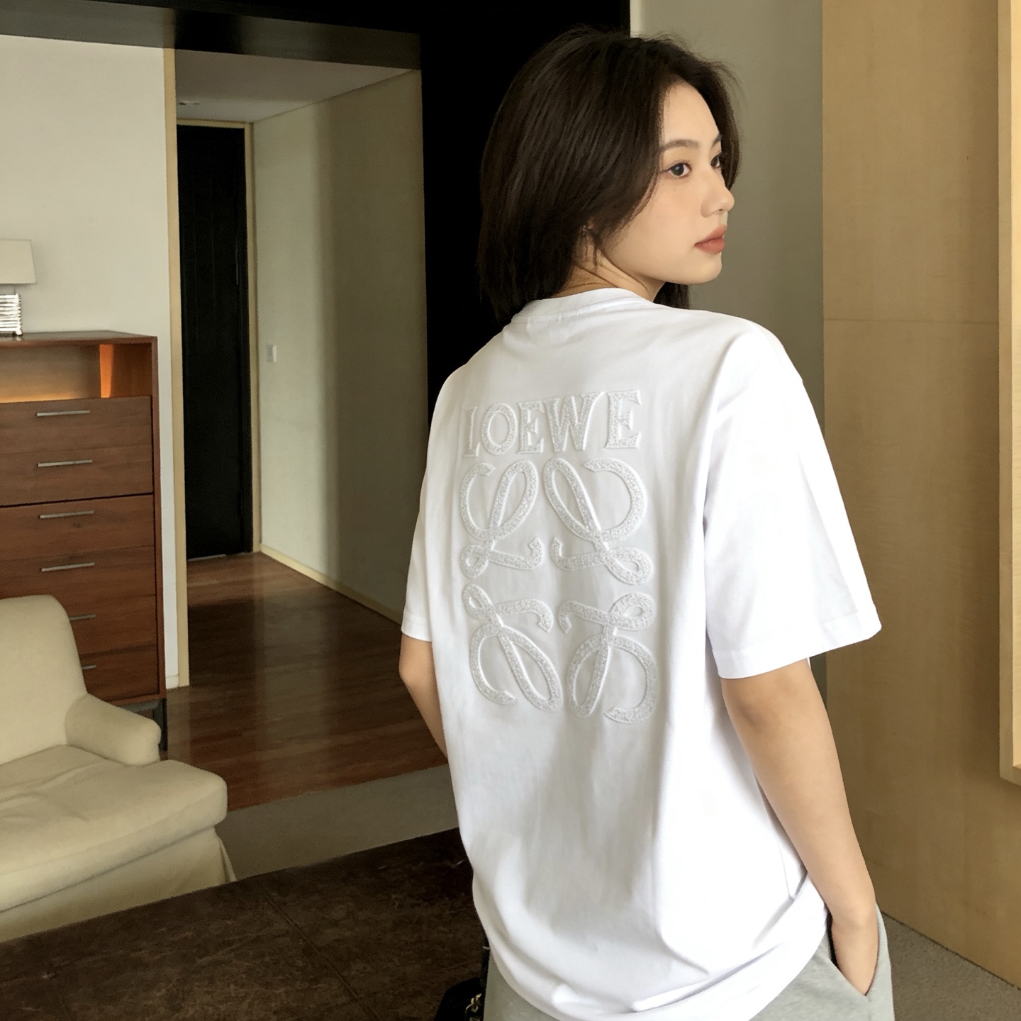 這款衣服是AAAAA 1:1 質量(非常棒). 使用了和原版一模一樣的材料. 商標部分也保持了和Loewe一樣. 圖片拍攝是實物衣服拍攝, 您所收到的實物保證和我們圖片一模一樣.