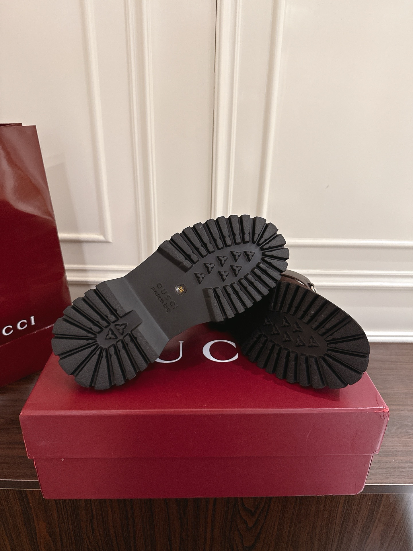 這款鞋子是AAAAA 1:1 質量(非常棒). 使用了和原版一模一樣的材料. 商標部分也保持了和古奇/Gucci一樣. 圖片拍攝是實物鞋子拍攝, 您所收到的實物保證和我們圖片一模一樣.