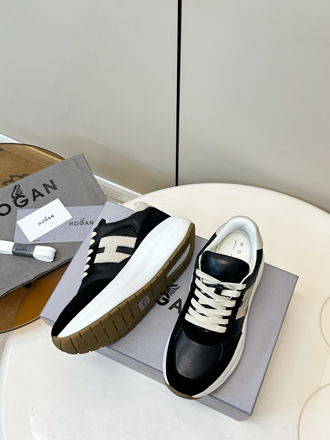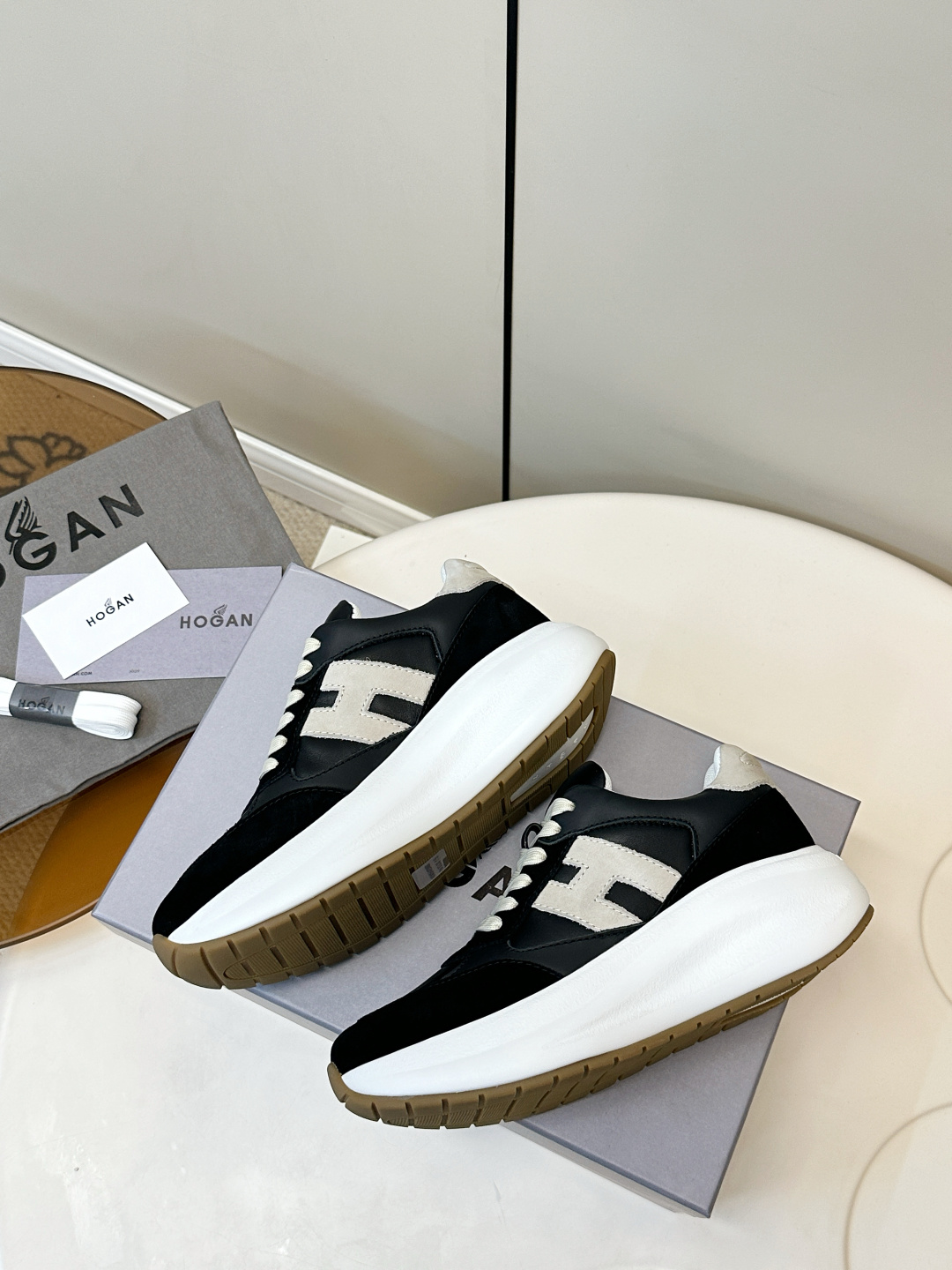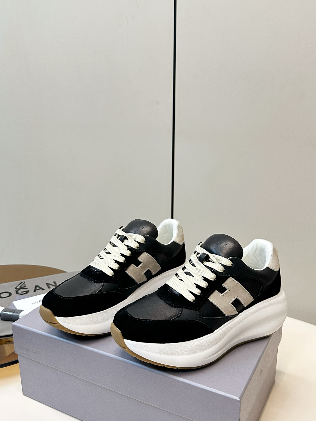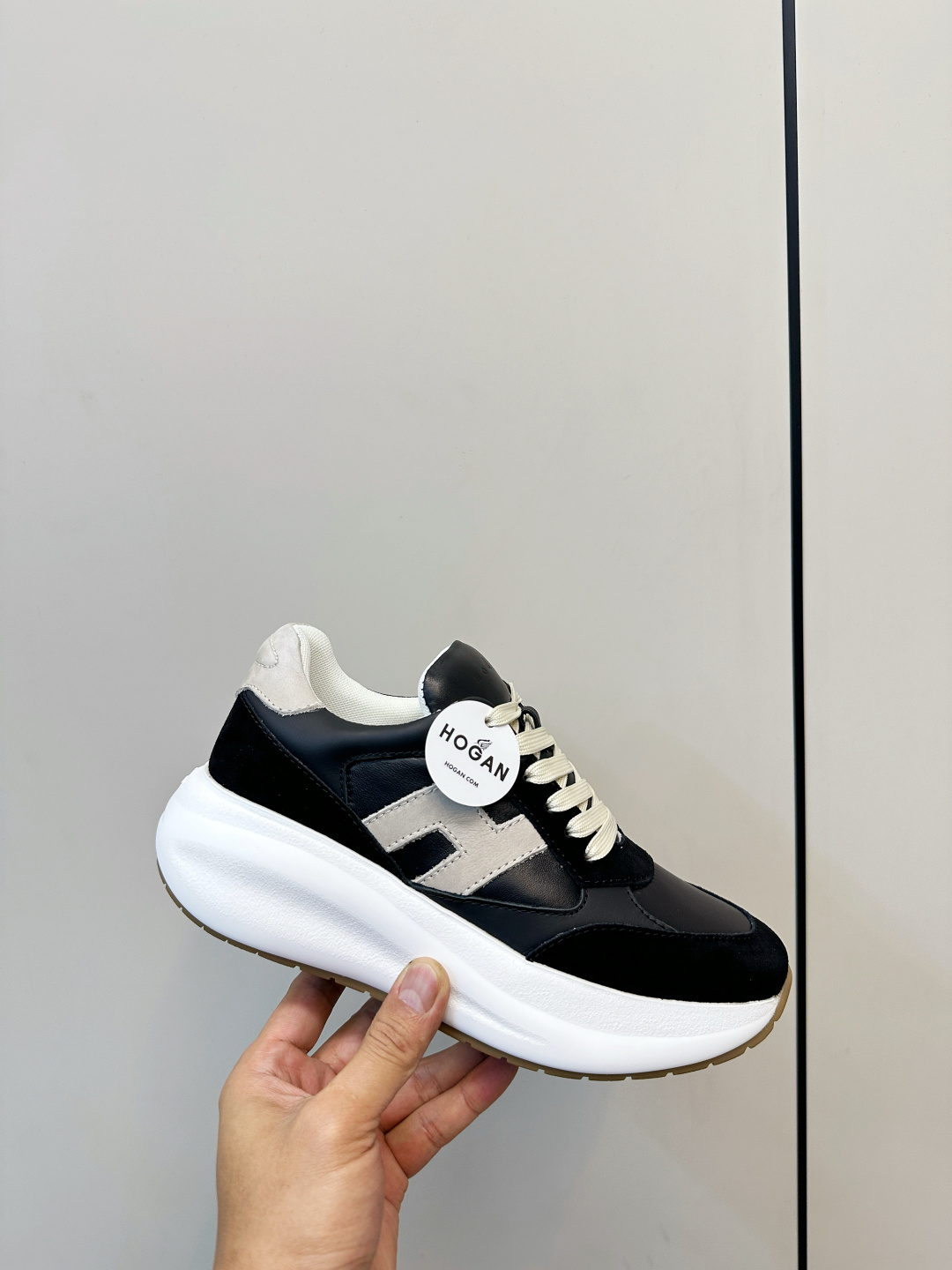 這款鞋子是AAAAA 1:1 質量(非常棒). 使用了和原版一模一樣的材料. 商標部分也保持了和Hogan一樣. 圖片拍攝是實物鞋子拍攝, 您所收到的實物保證和我們圖片一模一樣.