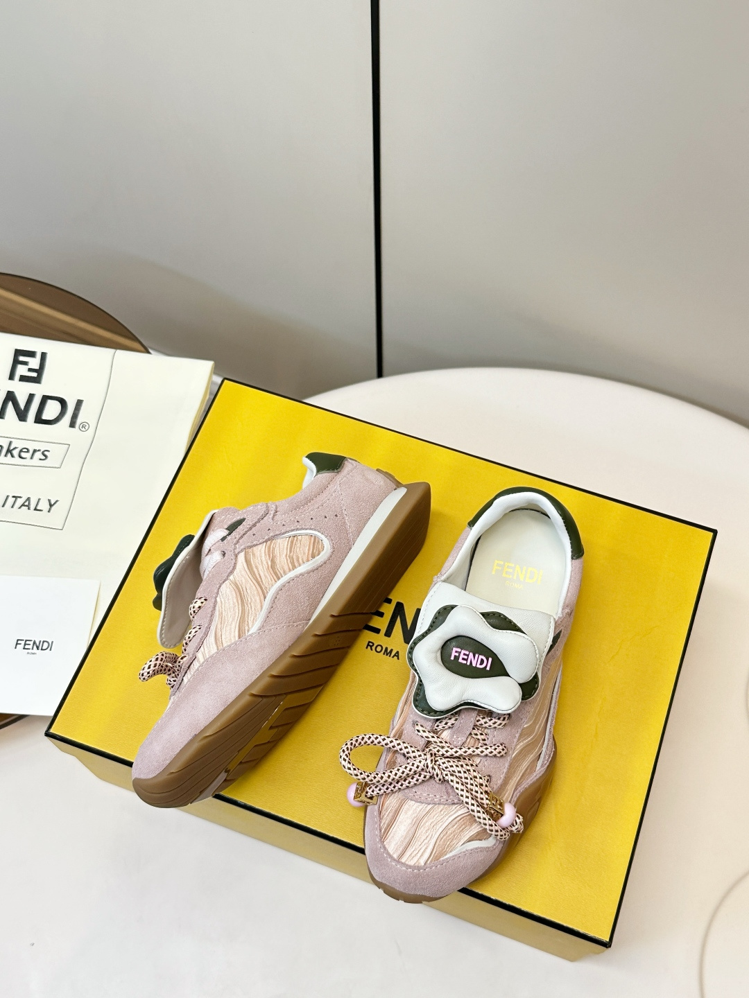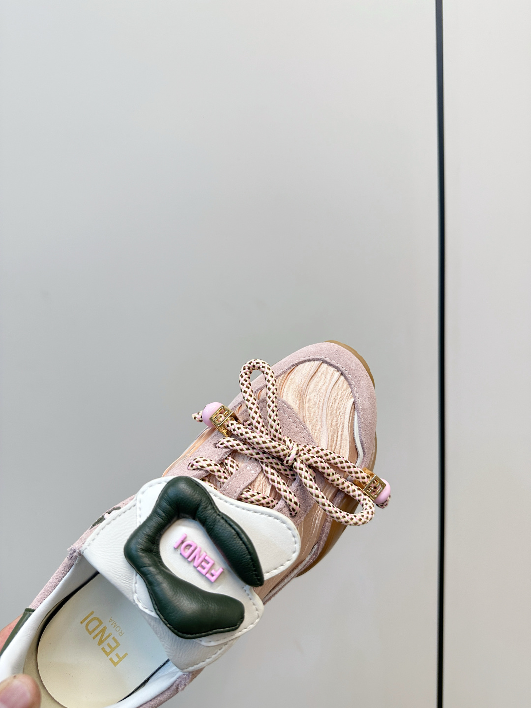 這款鞋子是AAAAA 1:1 質量(非常棒). 使用了和原版一模一樣的材料. 商標部分也保持了和芬迪/Fendi一樣. 圖片拍攝是實物鞋子拍攝, 您所收到的實物保證和我們圖片一模一樣.