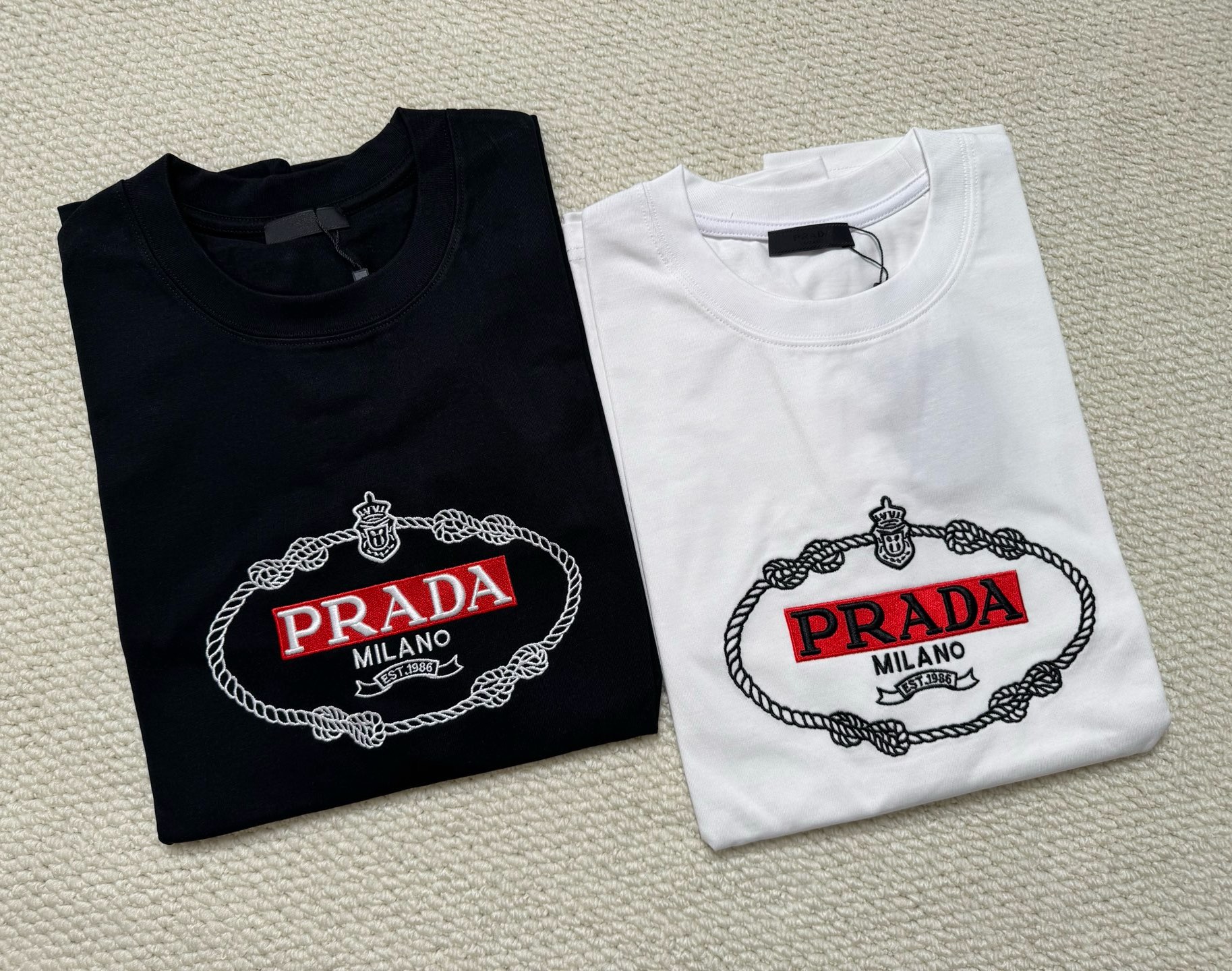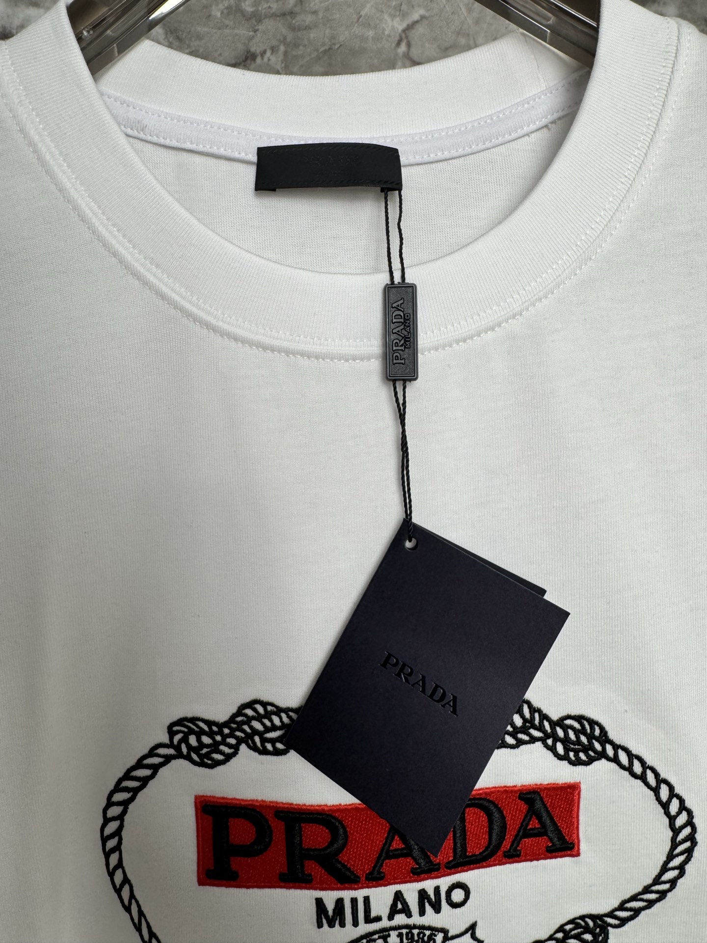 這款衣服是AAAAA 1:1 質量(非常棒). 使用了和原版一模一樣的材料. 商標部分也保持了和普拉達/Prada一樣. 圖片拍攝是實物衣服拍攝, 您所收到的實物保證和我們圖片一模一樣.