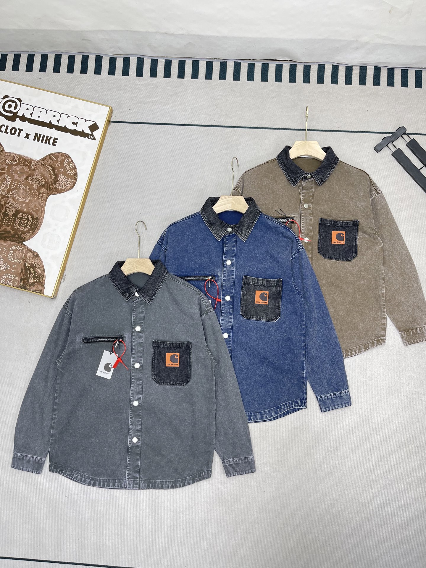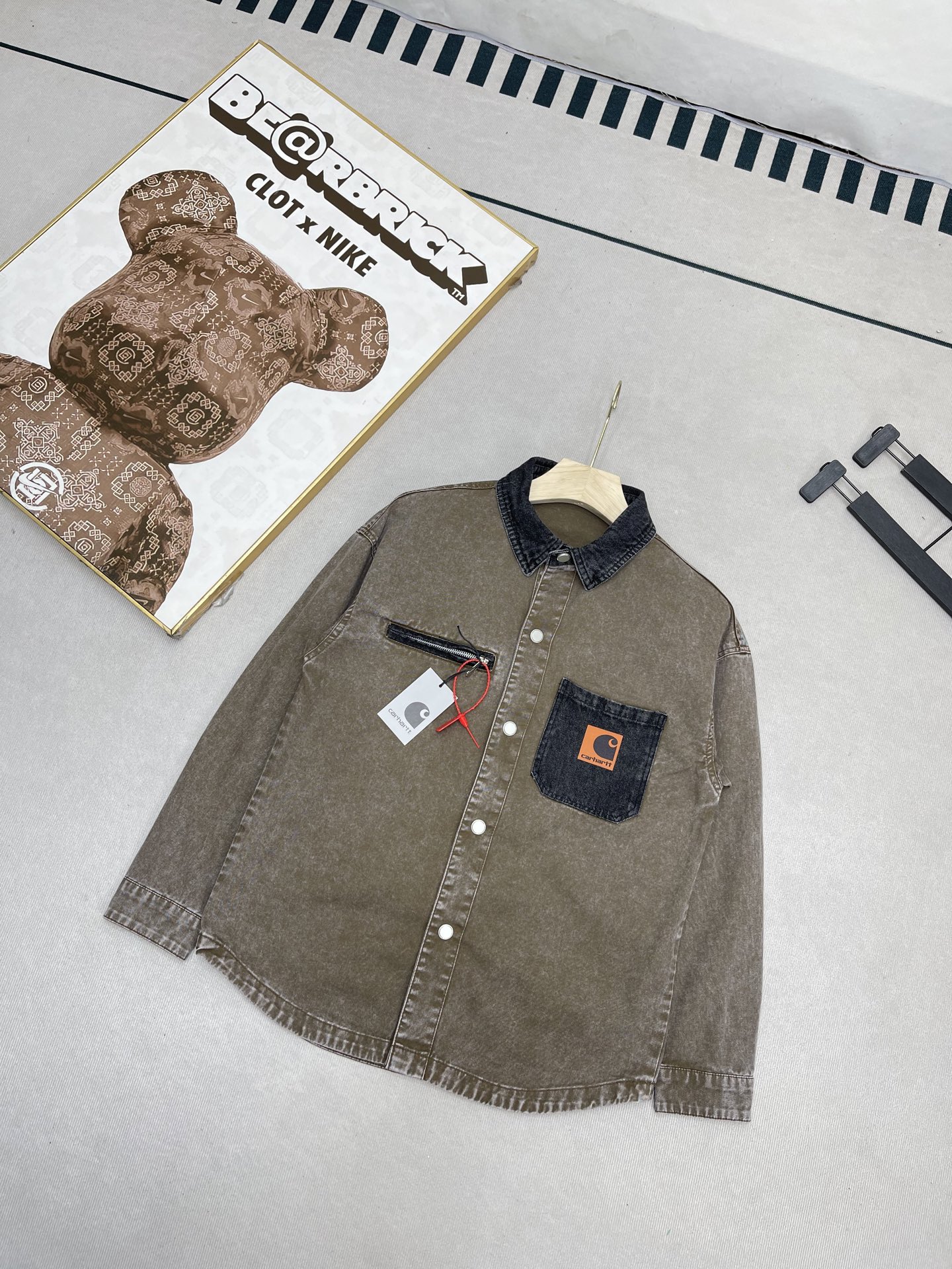 這款衣服是AAAAA 1:1 質量(非常棒). 使用了和原版一模一樣的材料. 商標部分也保持了和Carhartt一樣. 圖片拍攝是實物衣服拍攝, 您所收到的實物保證和我們圖片一模一樣.