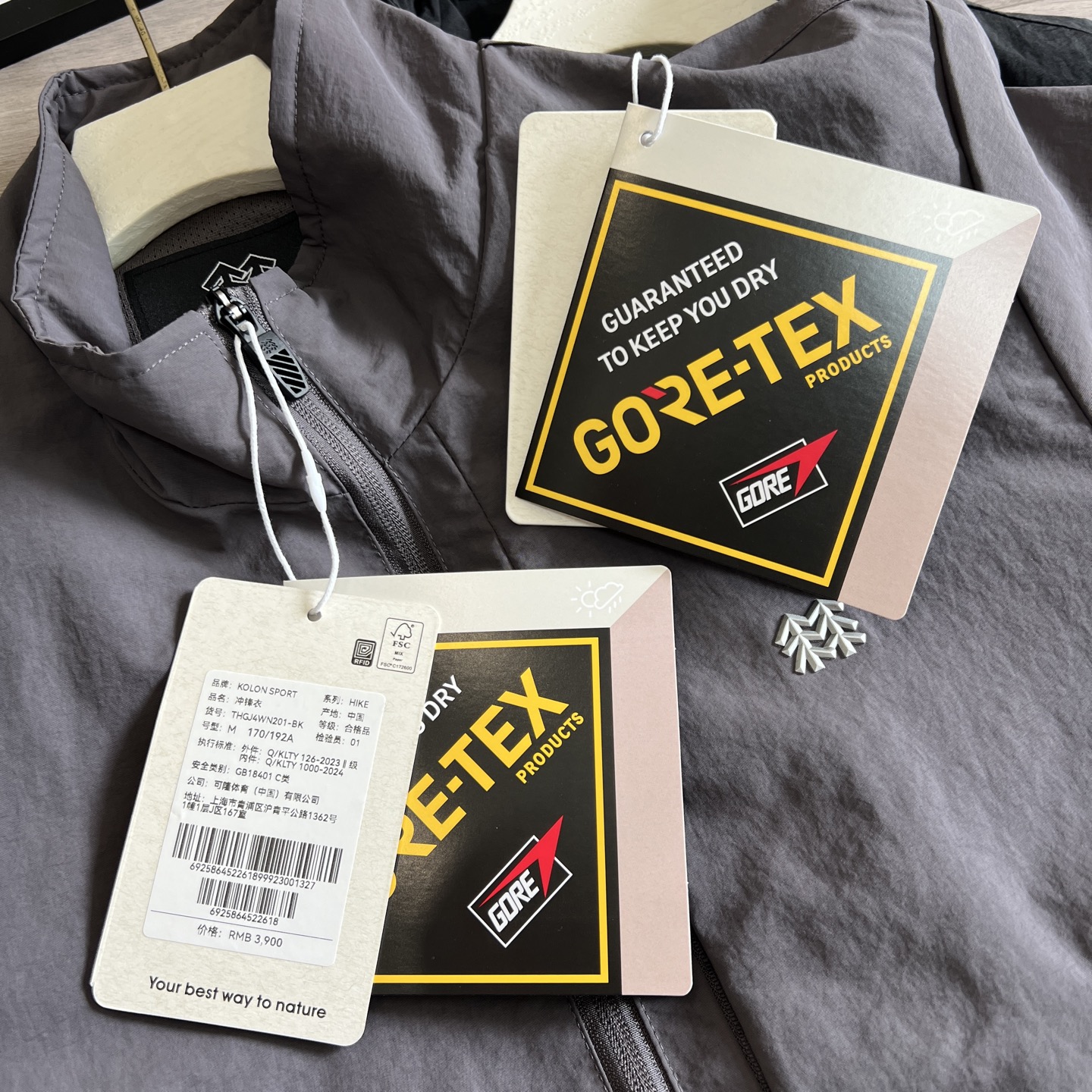 這款衣服是AAAAA 1:1 質量(非常棒). 使用了和原版一模一樣的材料. 商標部分也保持了和KOLON一樣. 圖片拍攝是實物衣服拍攝, 您所收到的實物保證和我們圖片一模一樣.