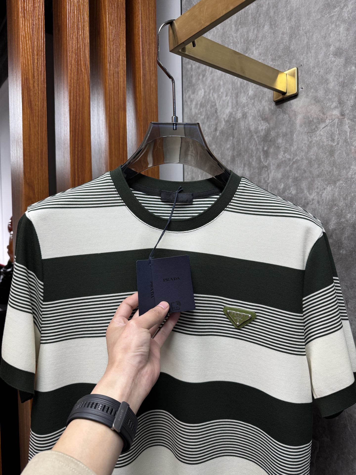 這款衣服是AAAAA 1:1 質量(非常棒). 使用了和原版一模一樣的材料. 商標部分也保持了和普拉達/Prada一樣. 圖片拍攝是實物衣服拍攝, 您所收到的實物保證和我們圖片一模一樣.