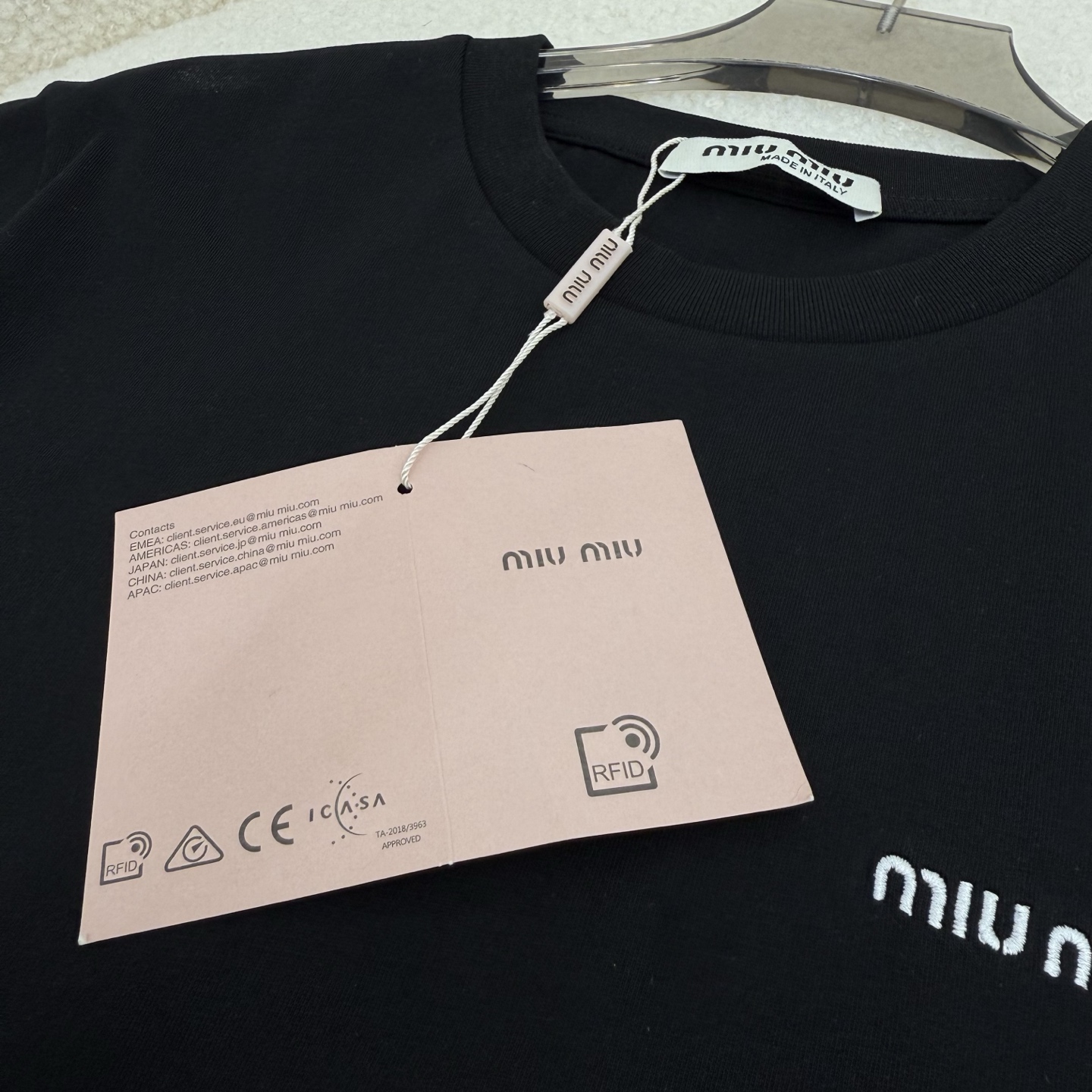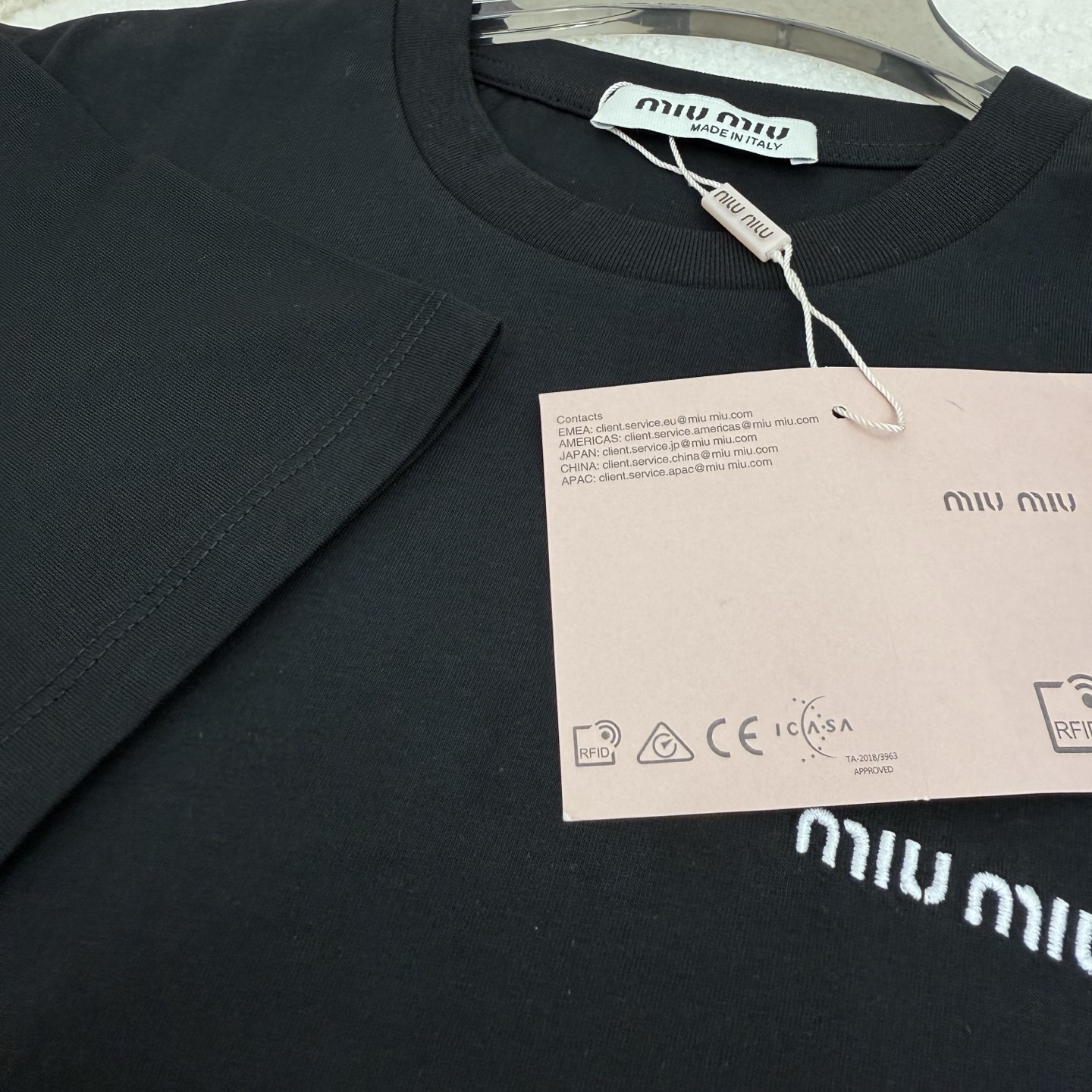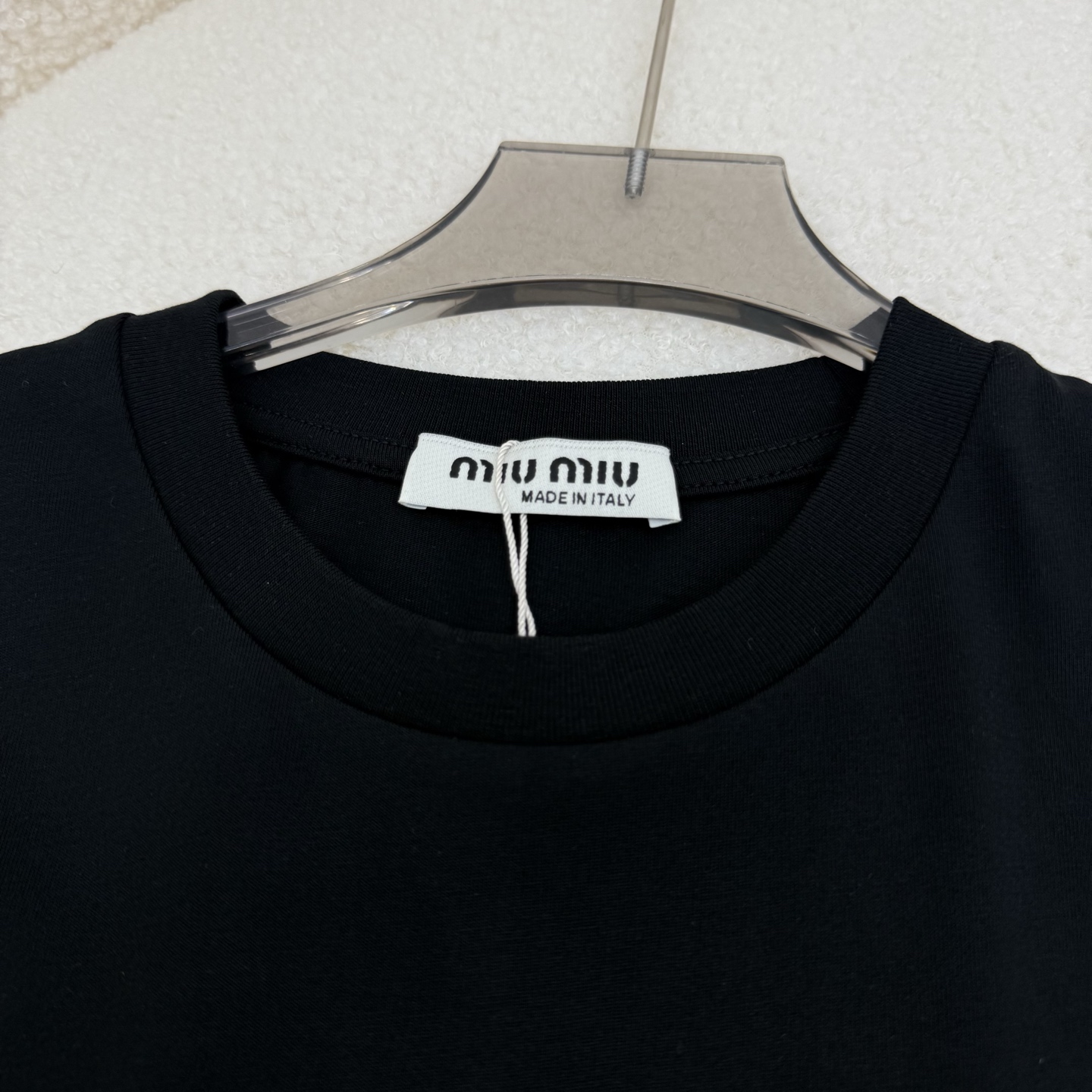 這款衣服是AAAAA 1:1 質量(非常棒). 使用了和原版一模一樣的材料. 商標部分也保持了和繆繆/Miu Miu一樣. 圖片拍攝是實物衣服拍攝, 您所收到的實物保證和我們圖片一模一樣.