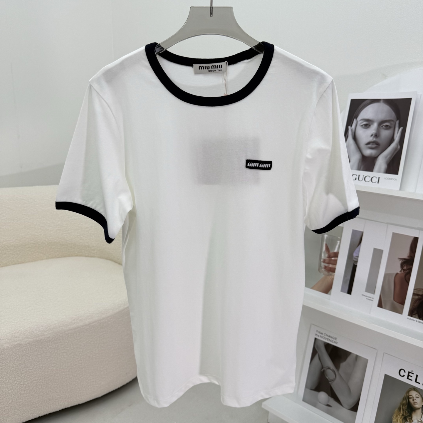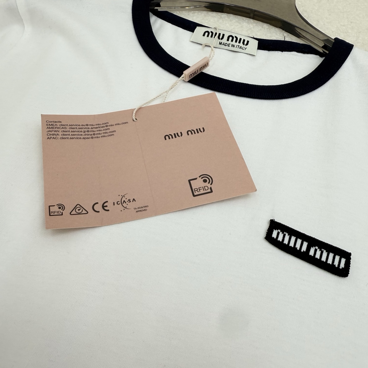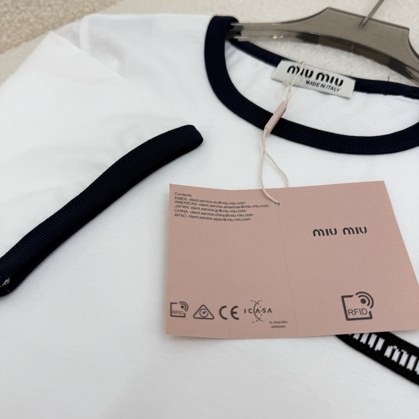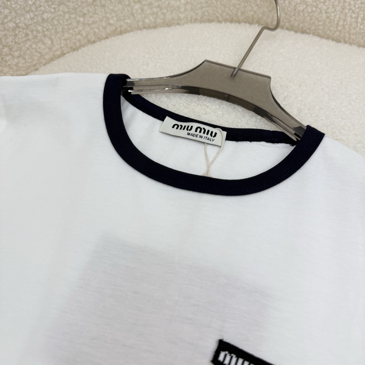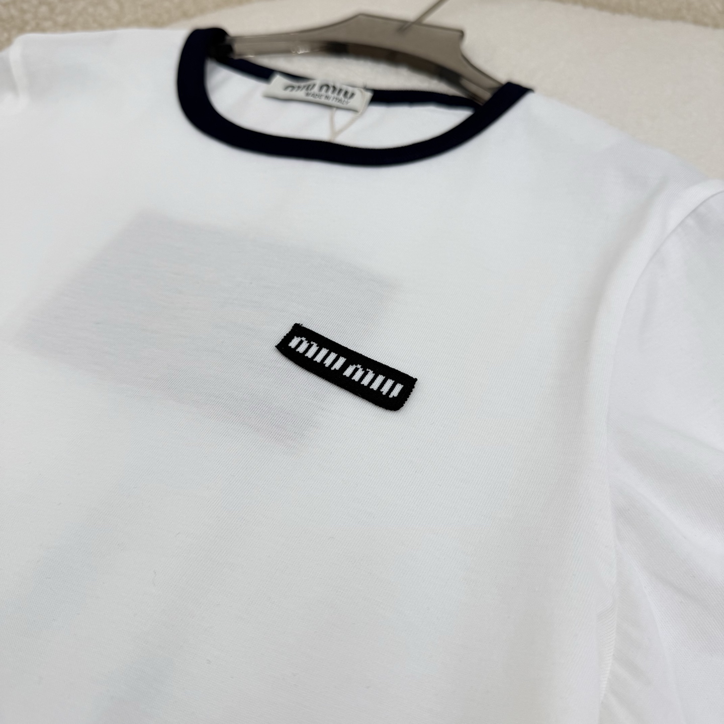這款衣服是AAAAA 1:1 質量(非常棒). 使用了和原版一模一樣的材料. 商標部分也保持了和繆繆/Miu Miu一樣. 圖片拍攝是實物衣服拍攝, 您所收到的實物保證和我們圖片一模一樣.